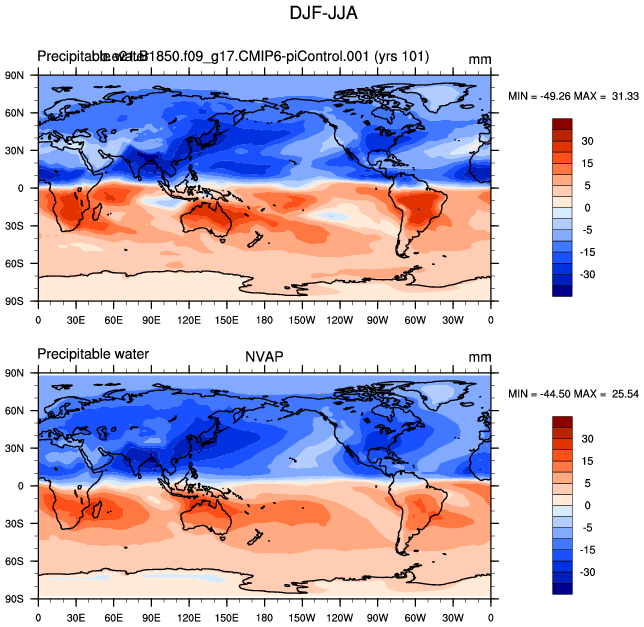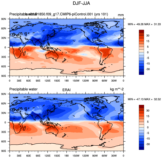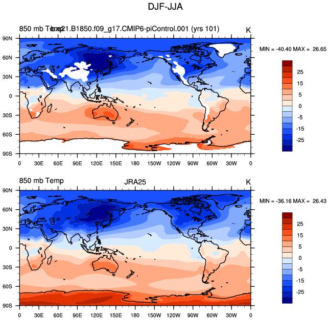 b.e21.B1850.f09_g17.CMIP6-piControl.001 DIAG Set 9 - Horizontal contour plots of DJF-JJA differences