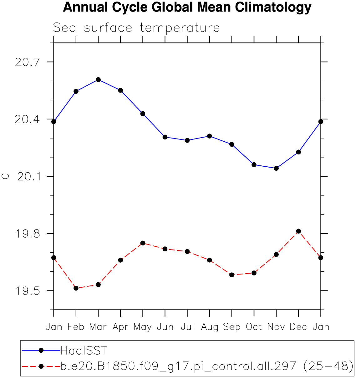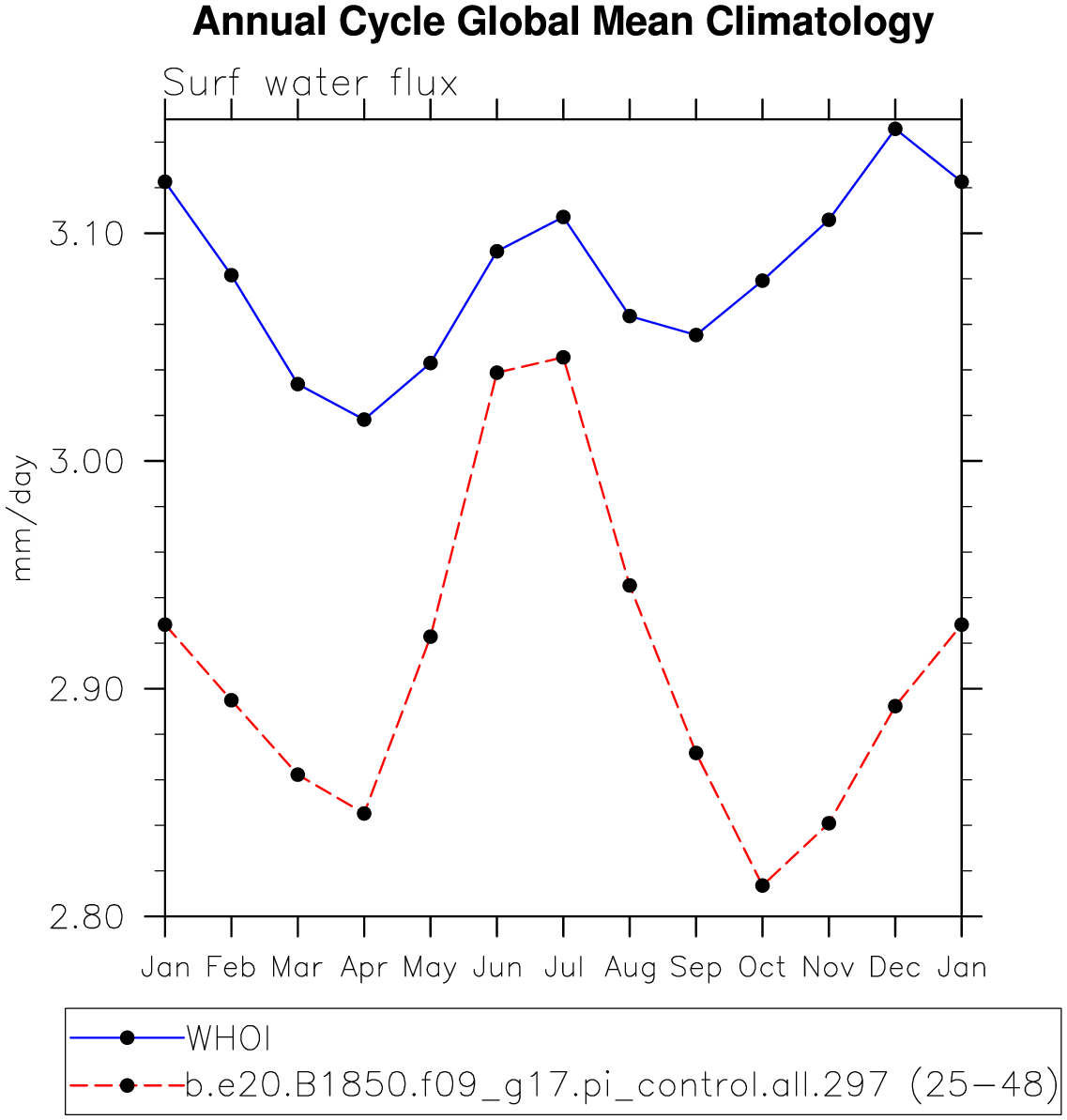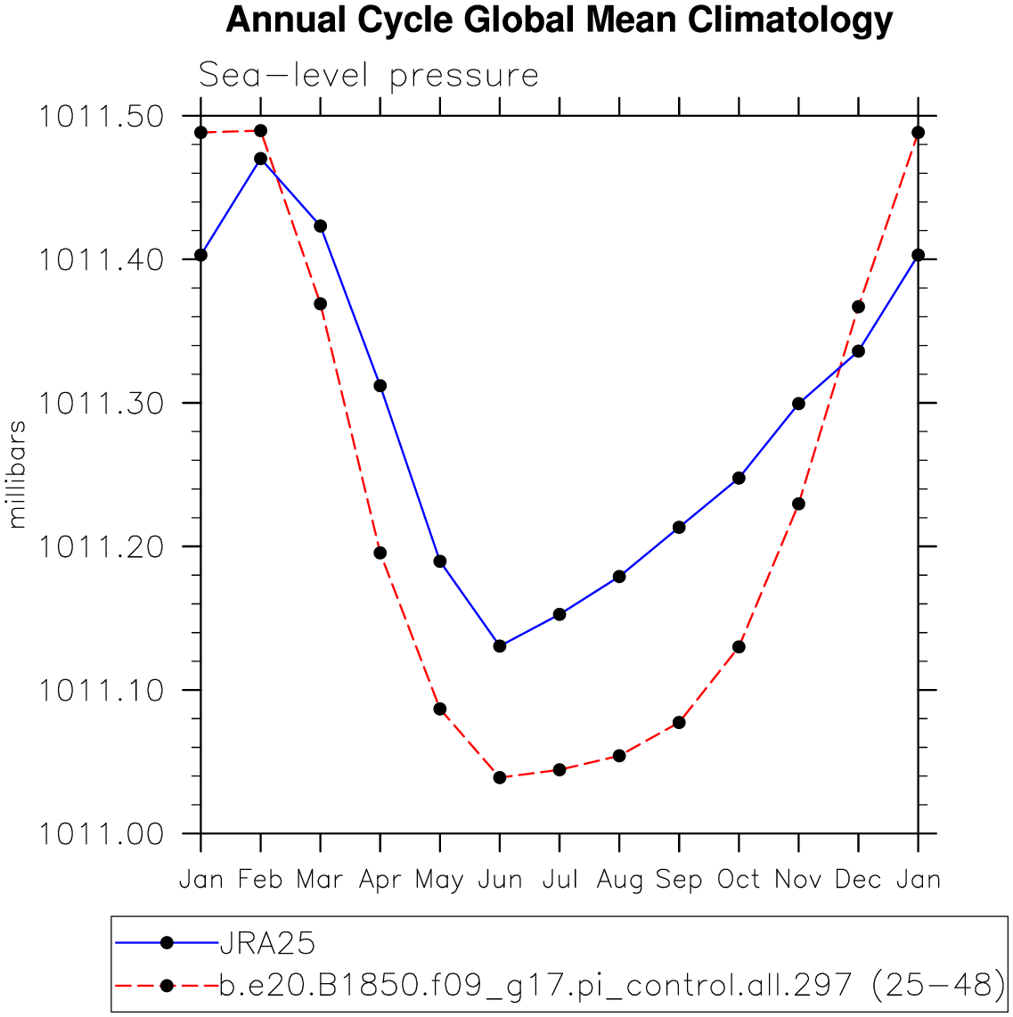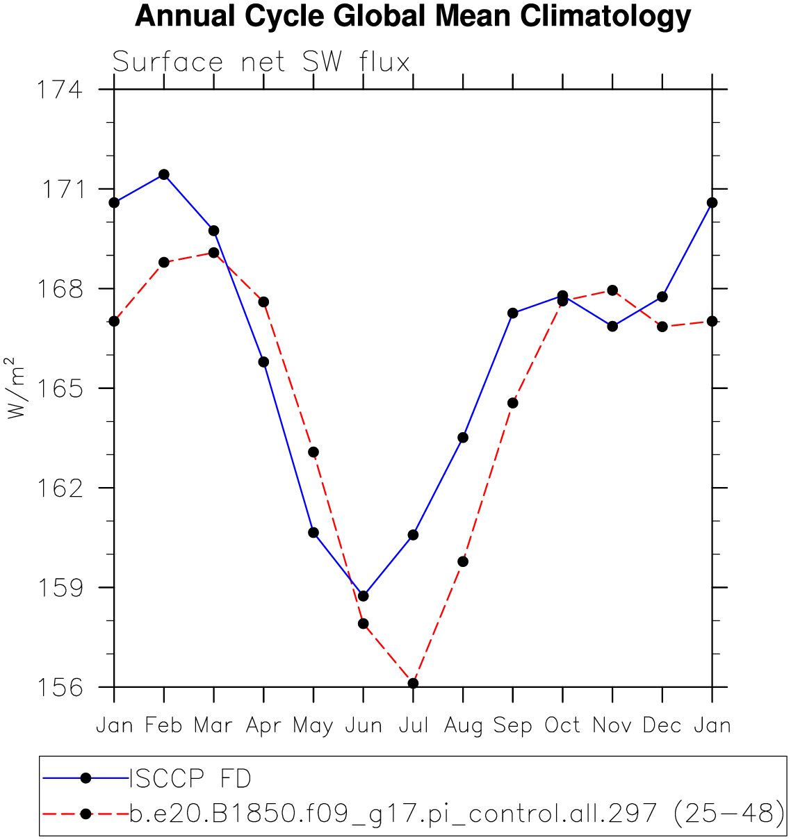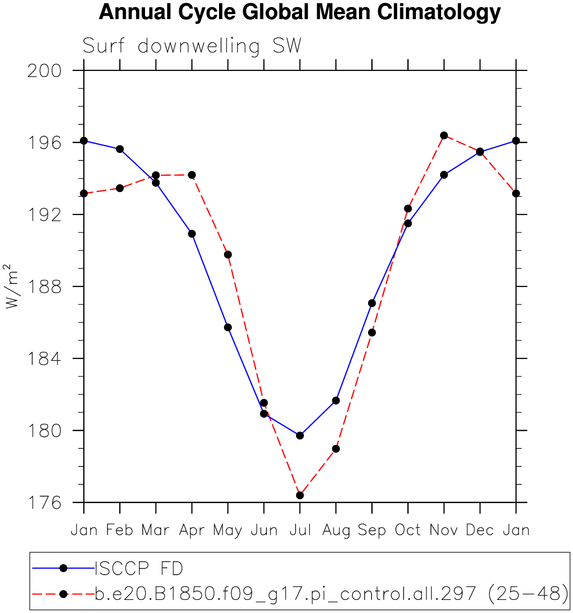 DIAG Set 10 - Annual cycle line plots of global means