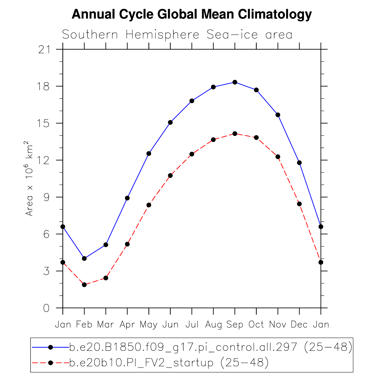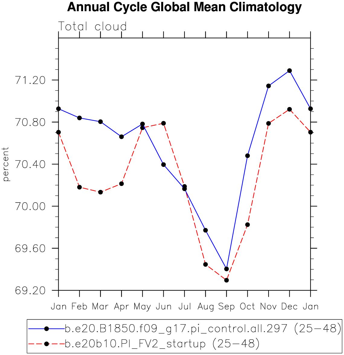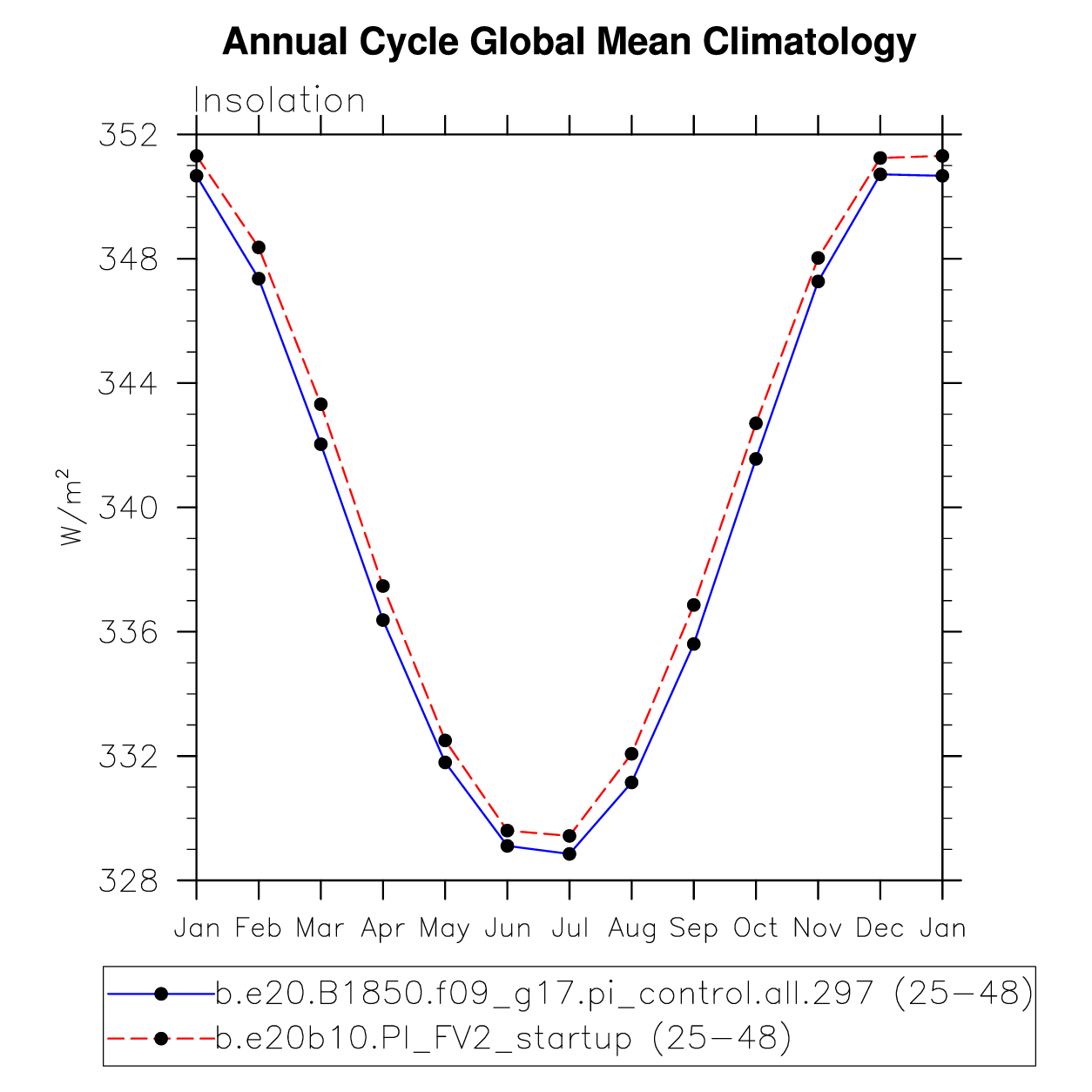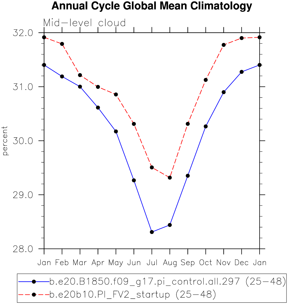 DIAG Set 10 - Annual cycle line plots of global means