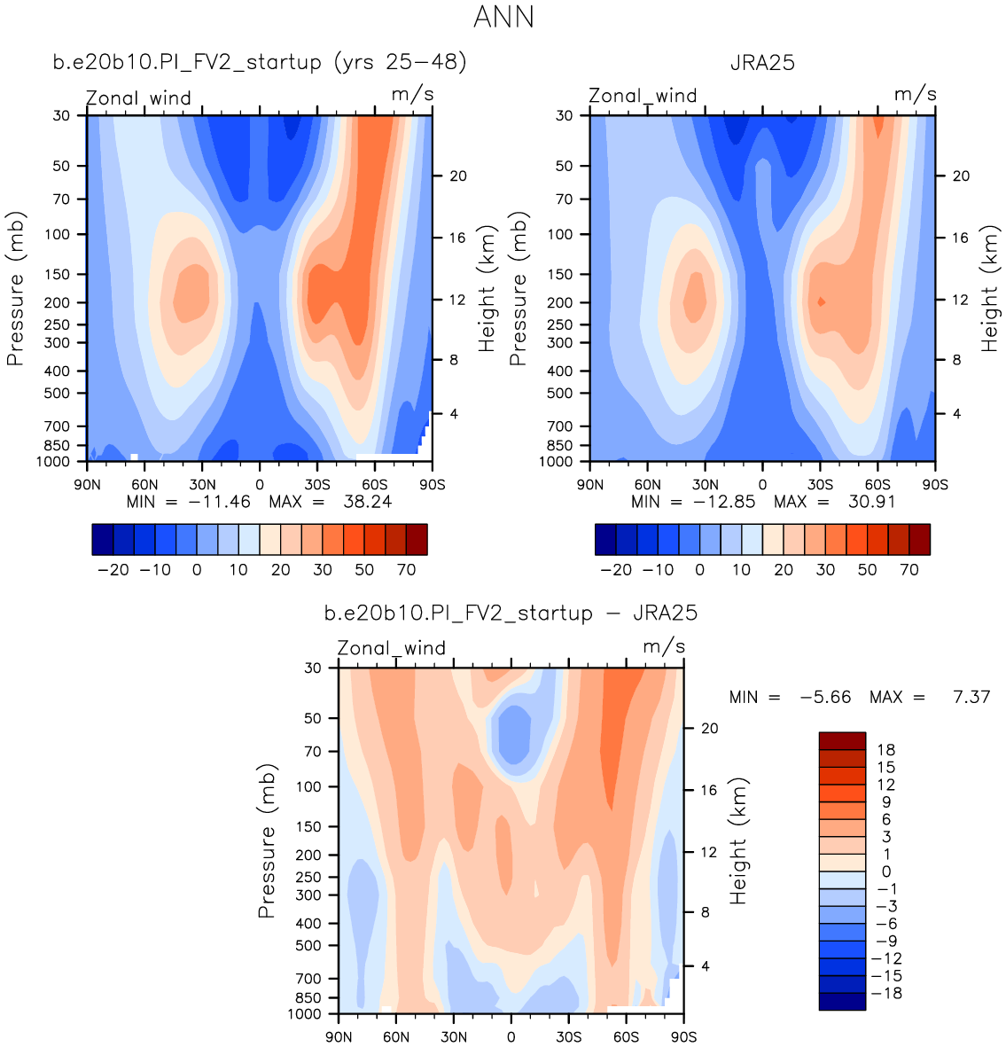 DIAG Set 4 - Vertical contour plots of DJF, JJA and ANN zonal means