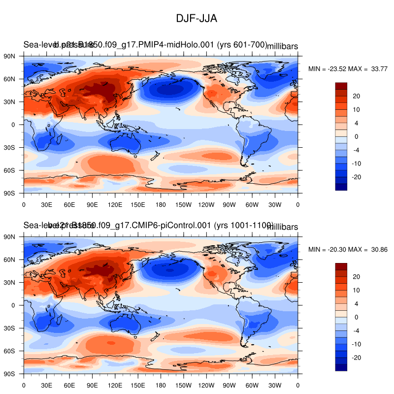 DIAG Set 9 - Horizontal contour plots of DJF-JJA differences