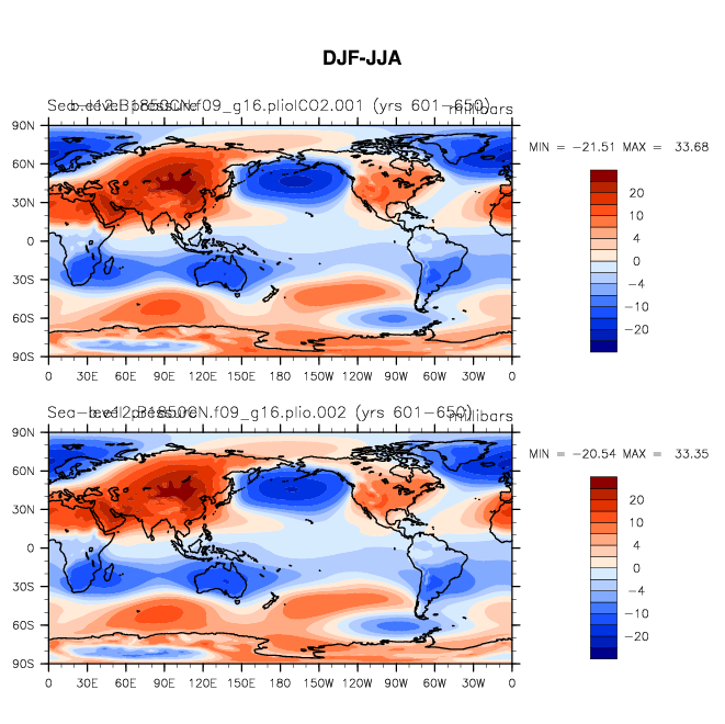 DIAG Set 9 - Horizontal contour plots of DJF-JJA differences