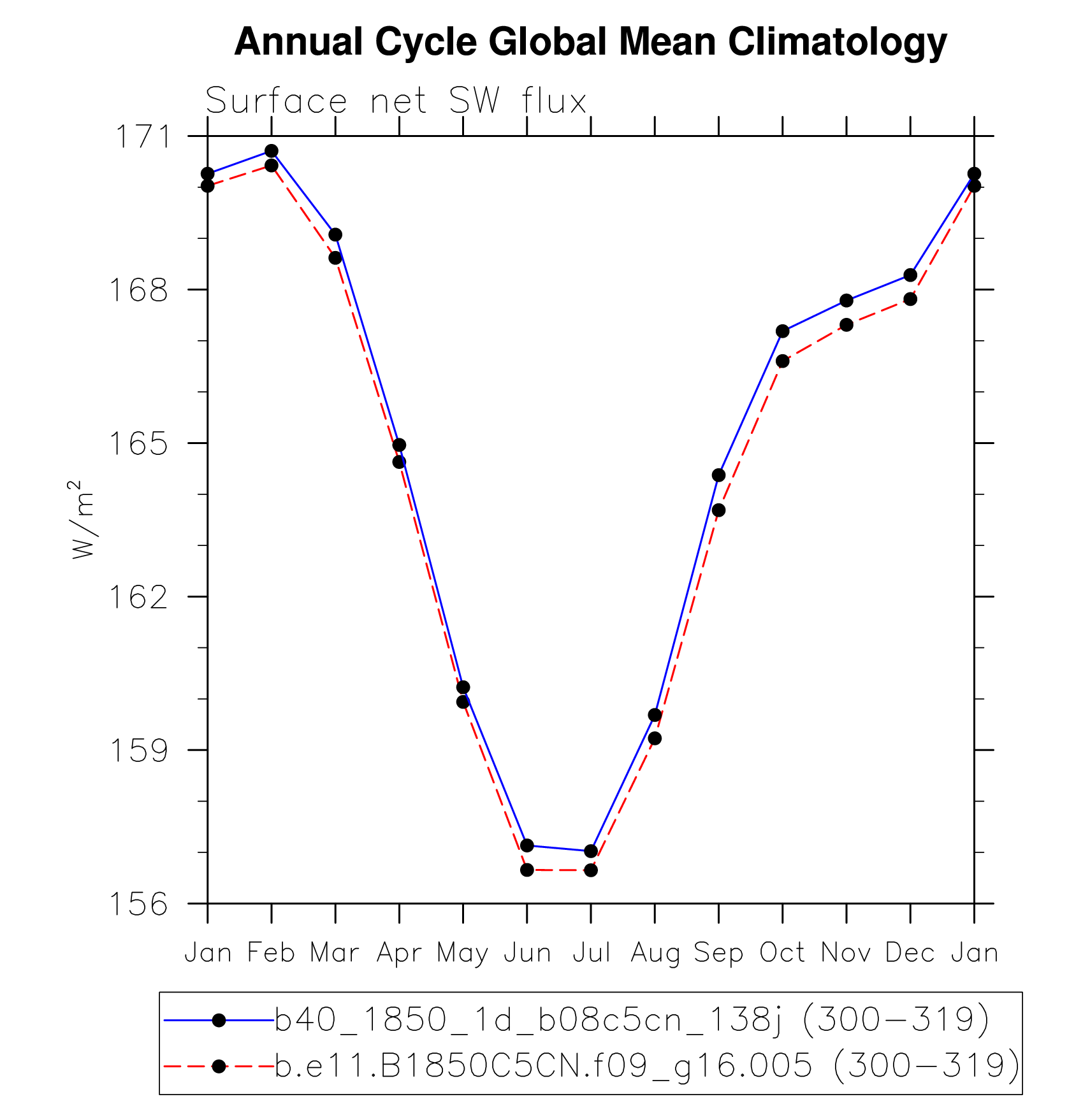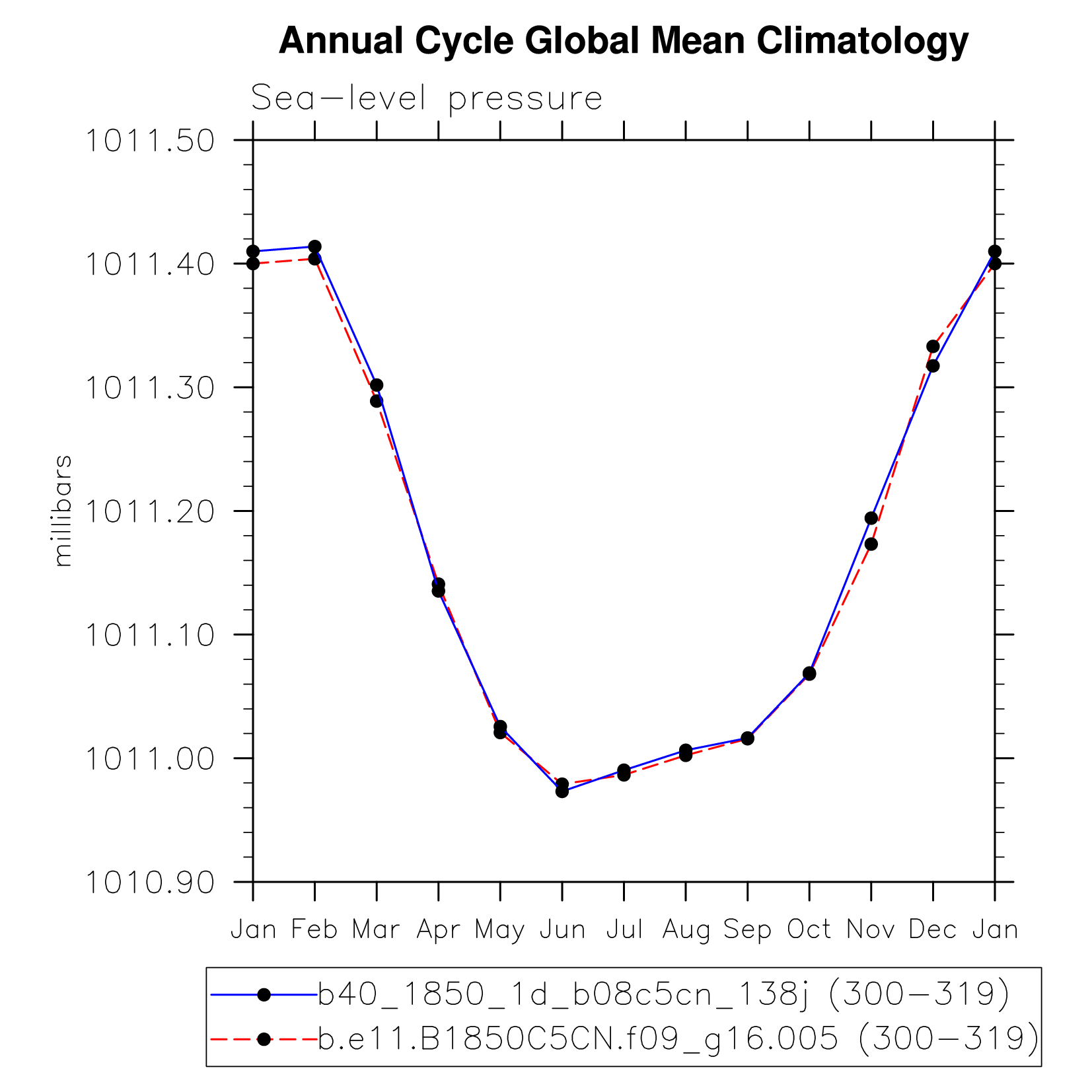 DIAG Set 10 - Annual cycle line plots of global means