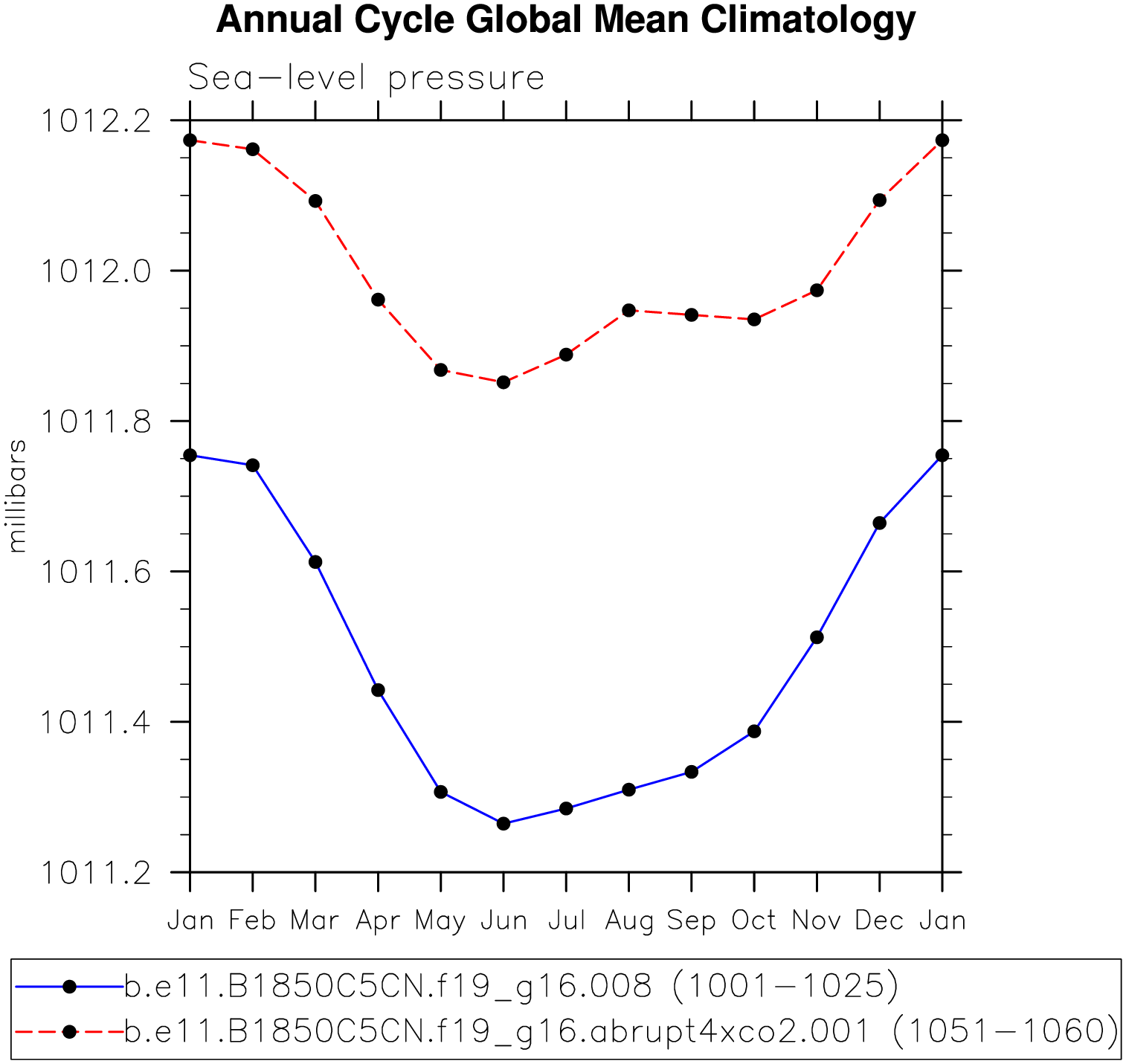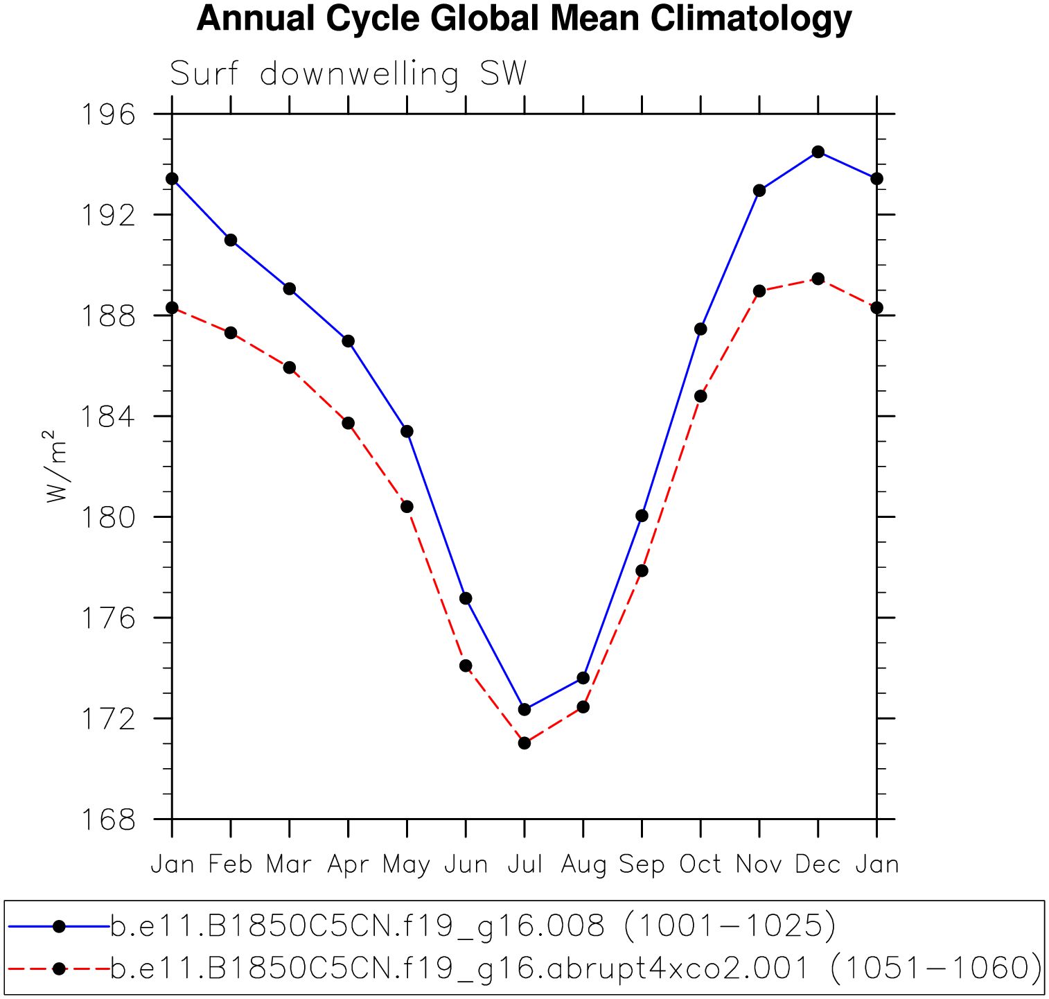 DIAG Set 10 - Annual cycle line plots of global means