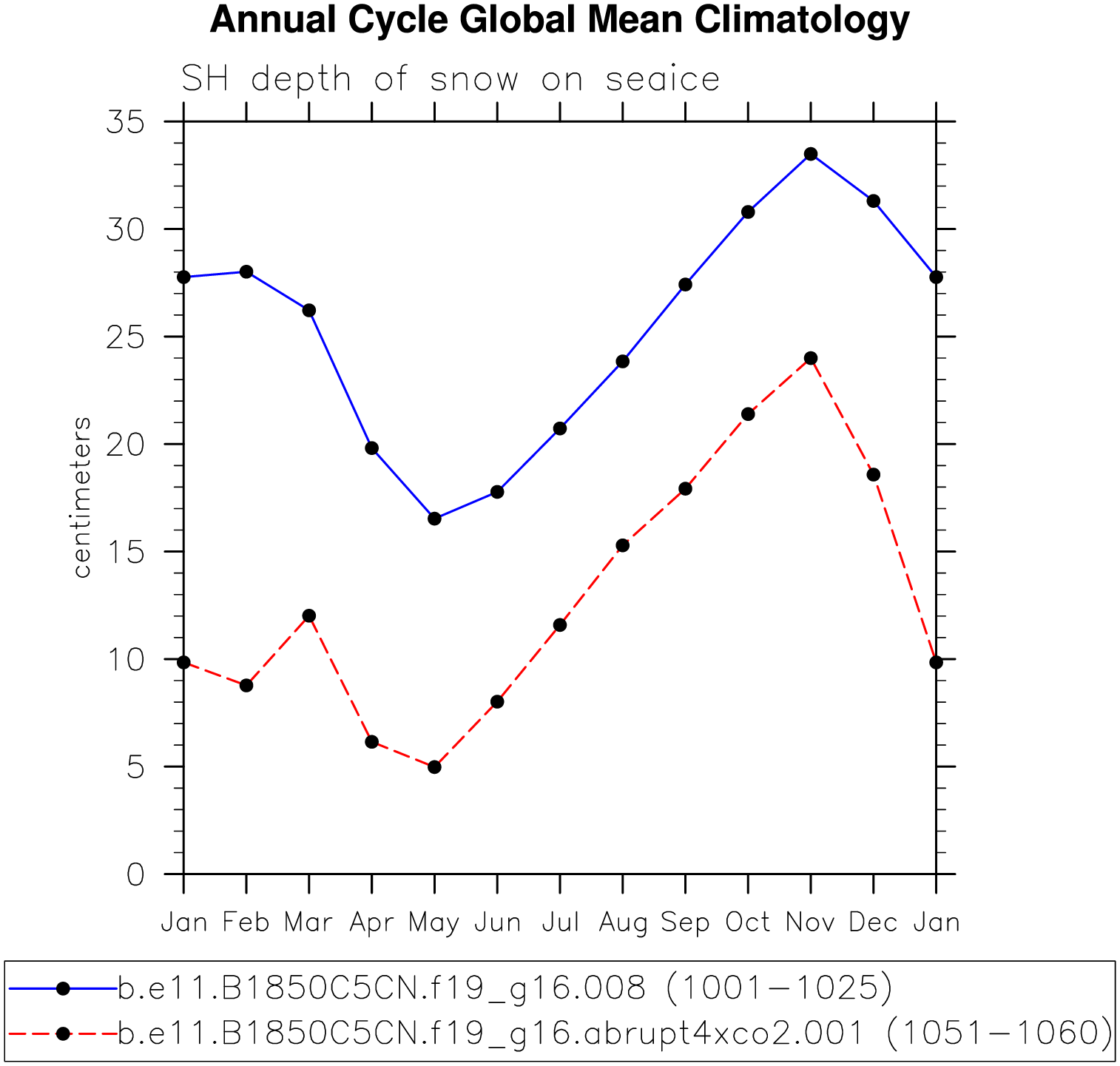 SNOWHLND Snow depth on land (Southern) plot