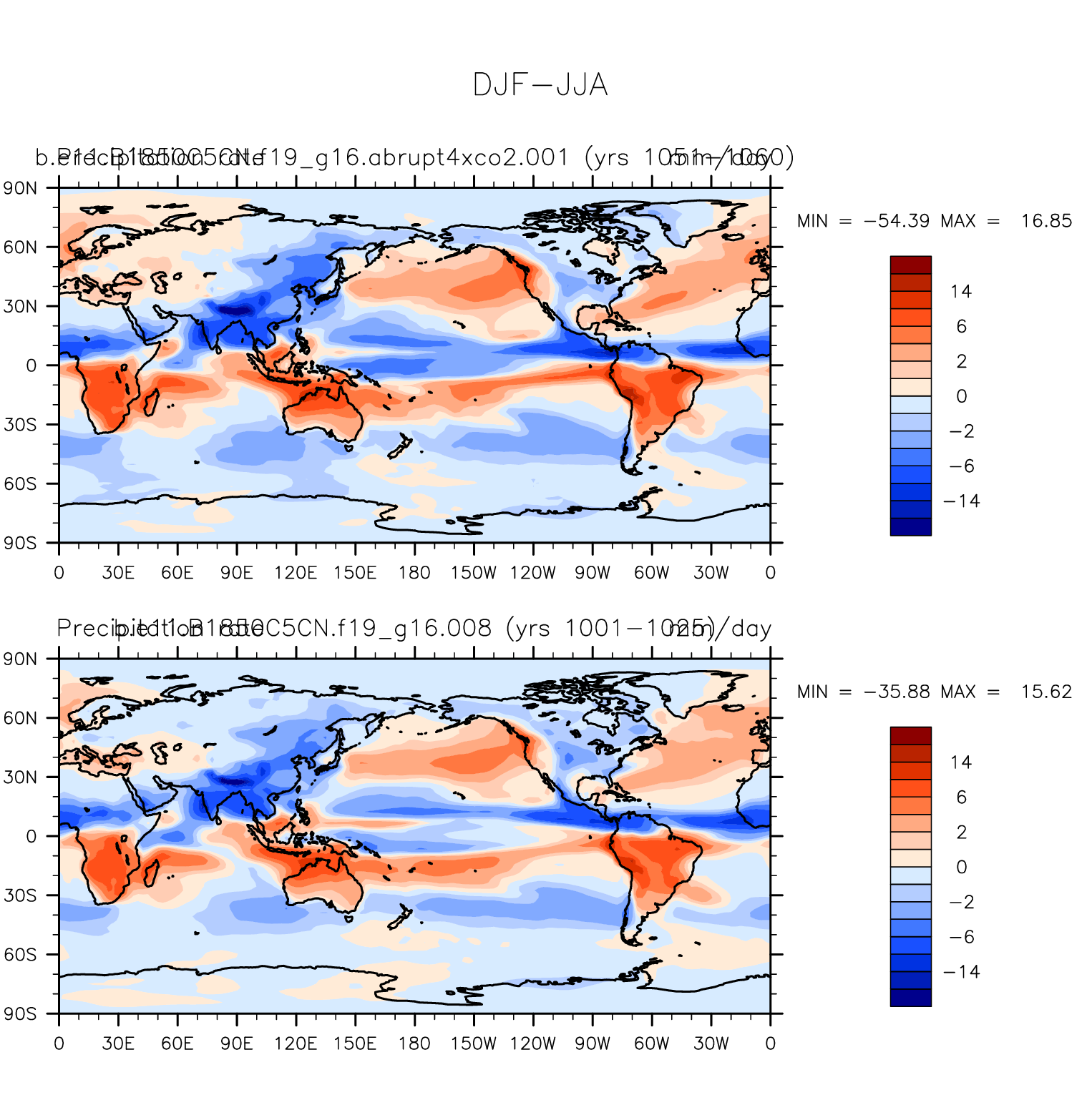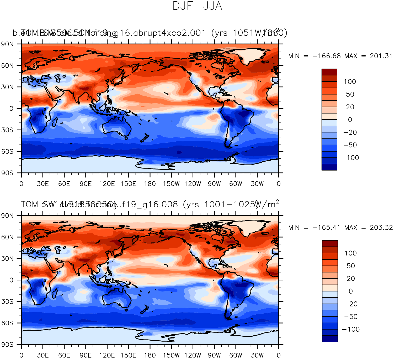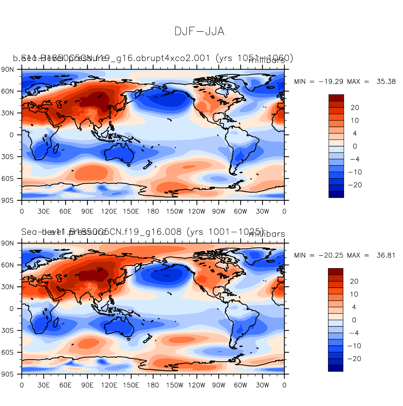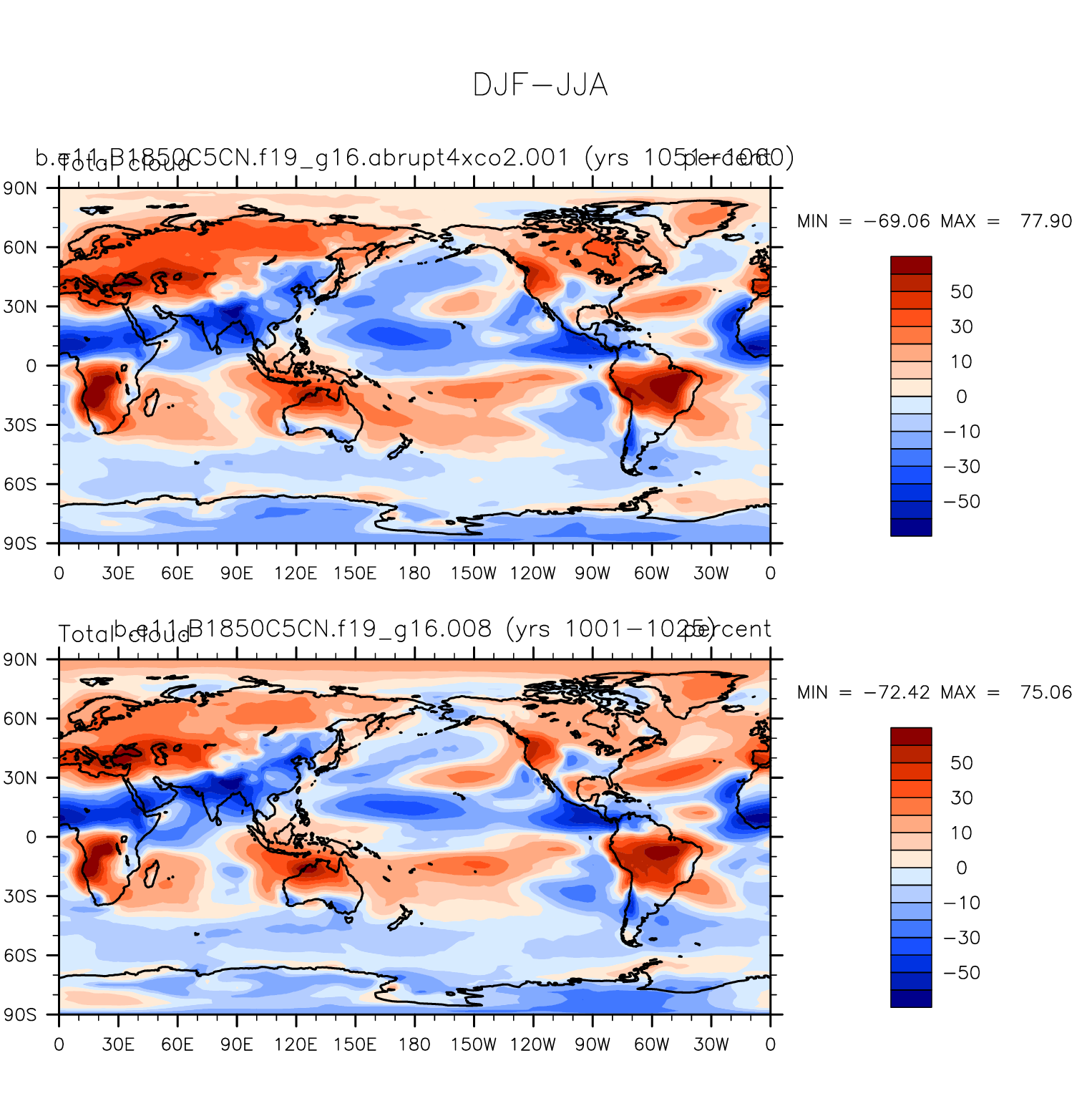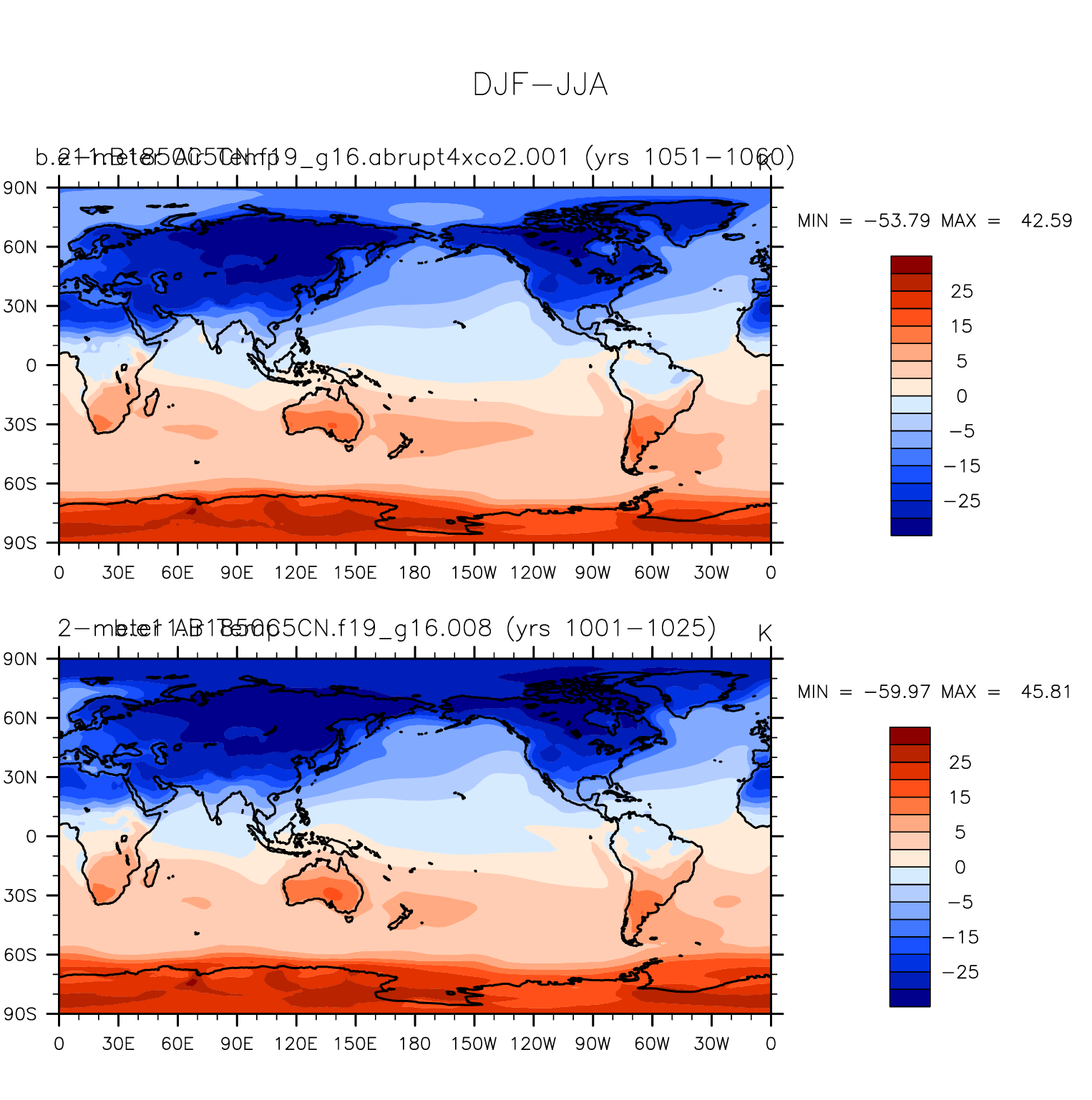 DIAG Set 9 - Horizontal contour plots of DJF-JJA differences