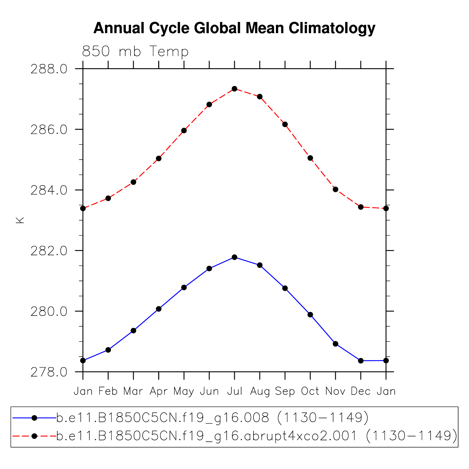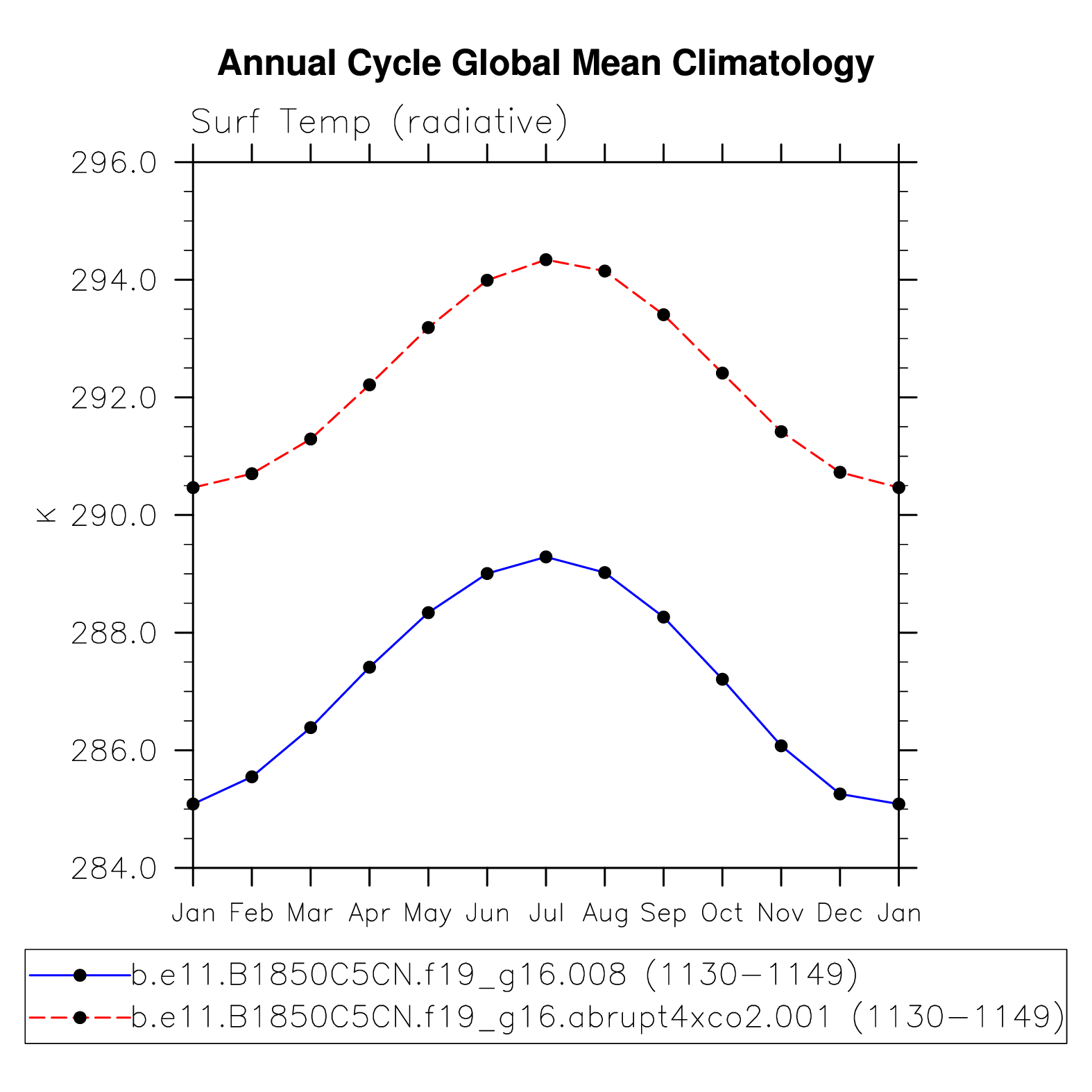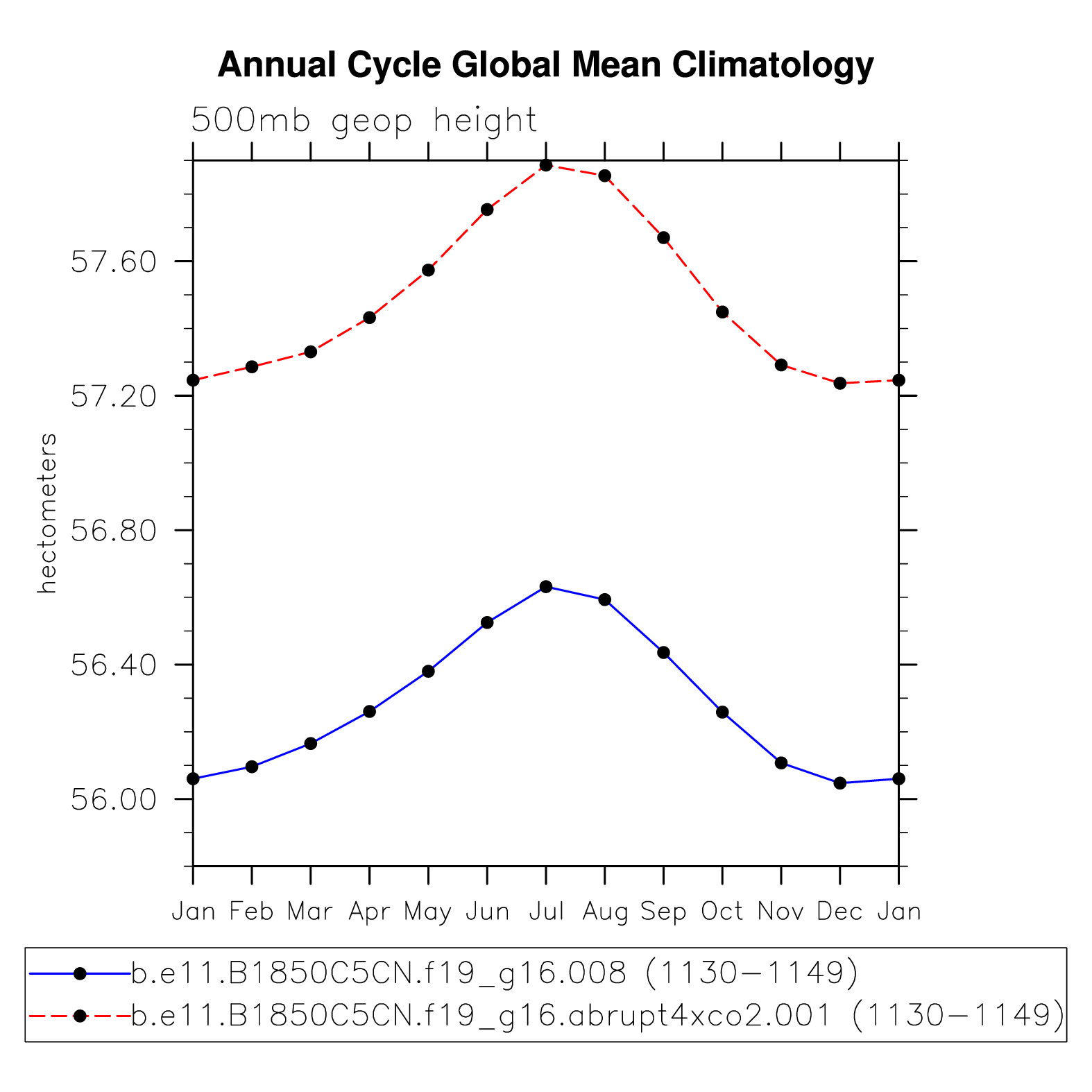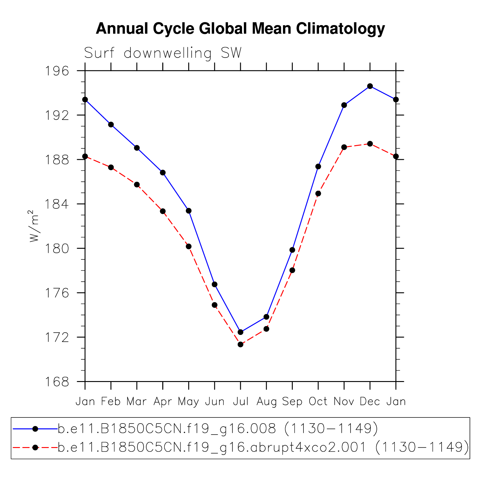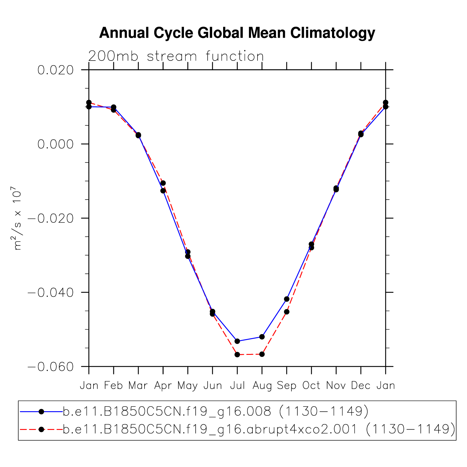 DIAG Set 10 - Annual cycle line plots of global means