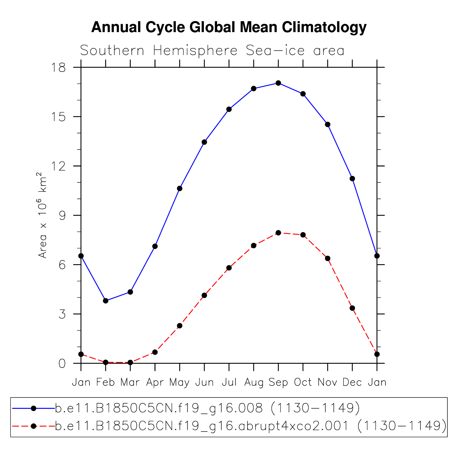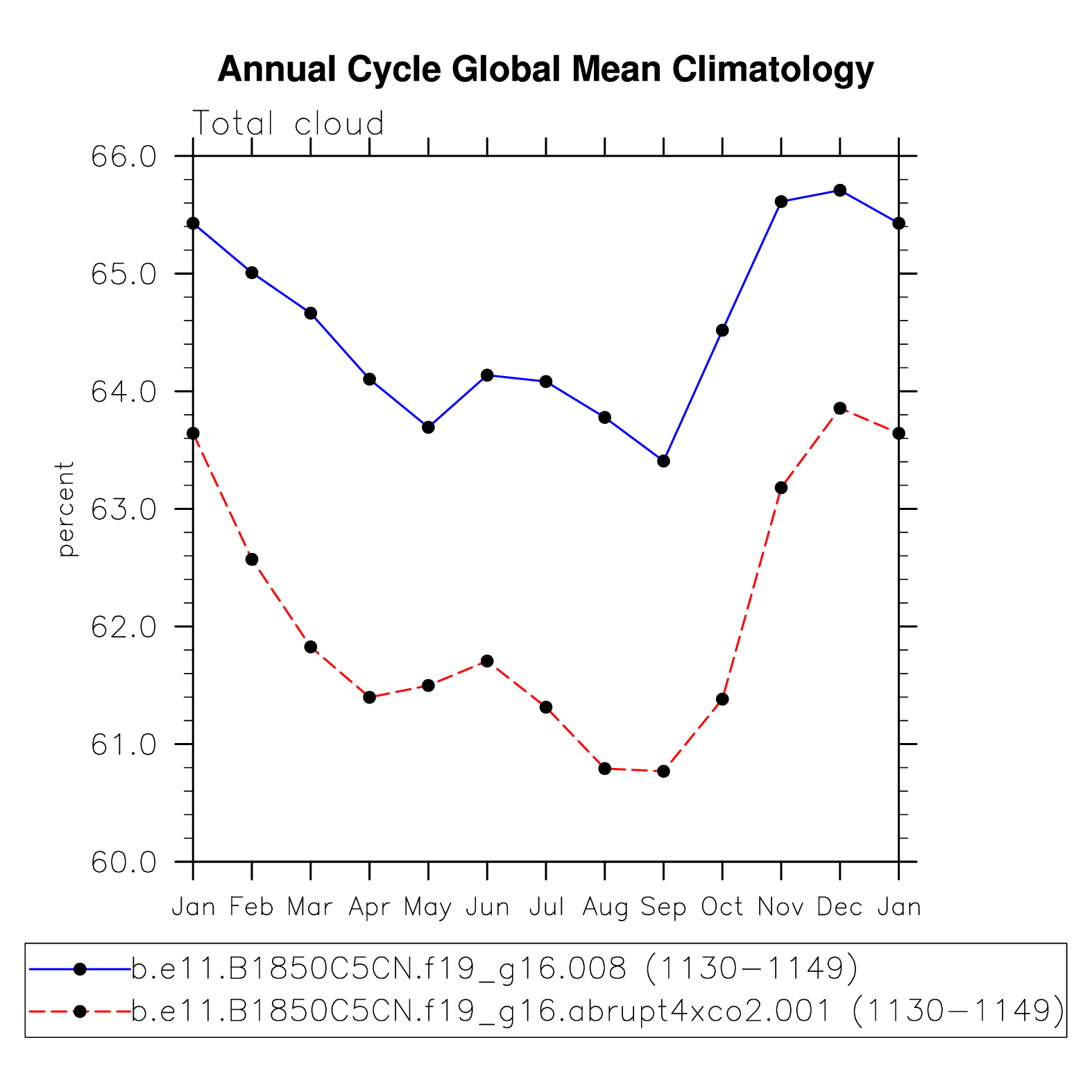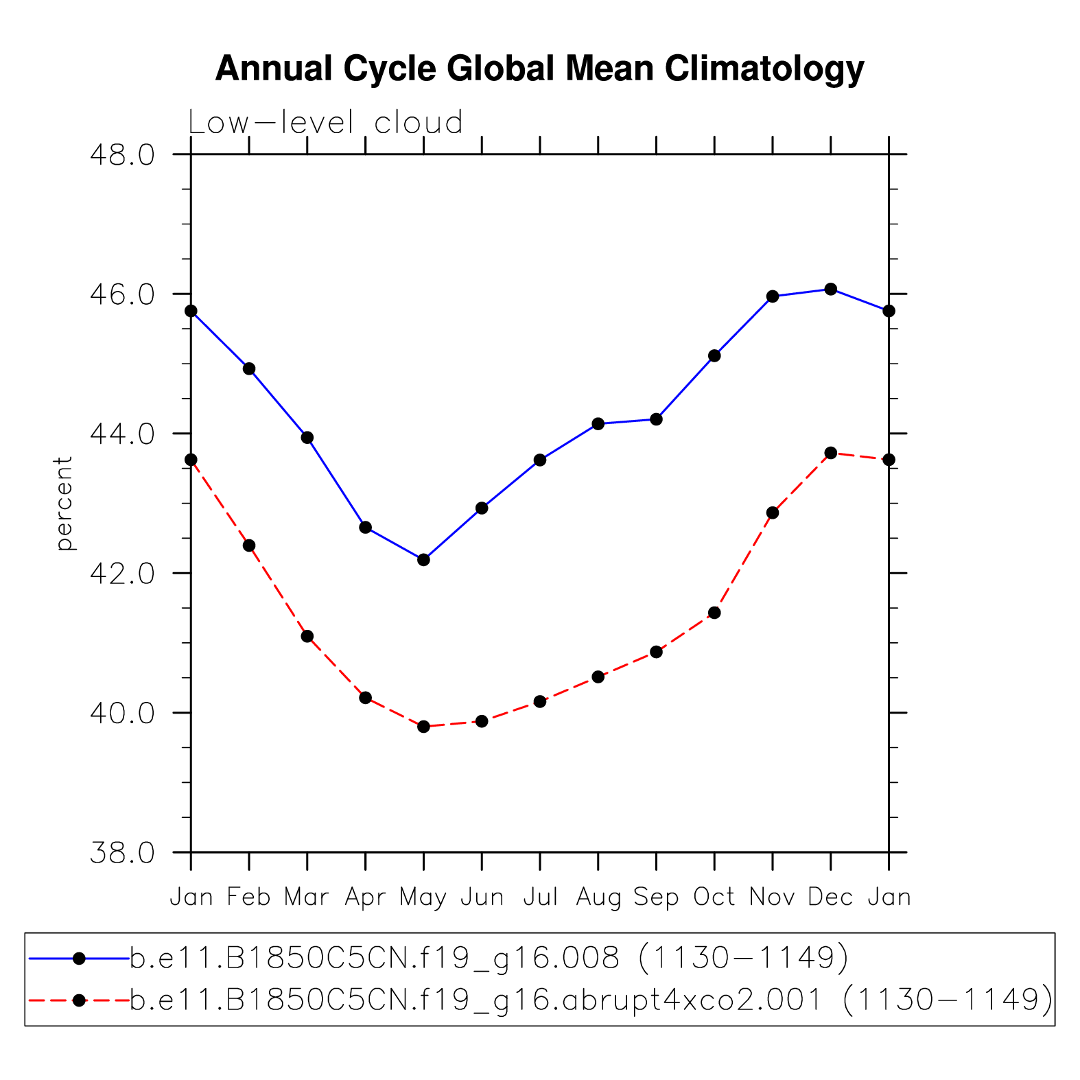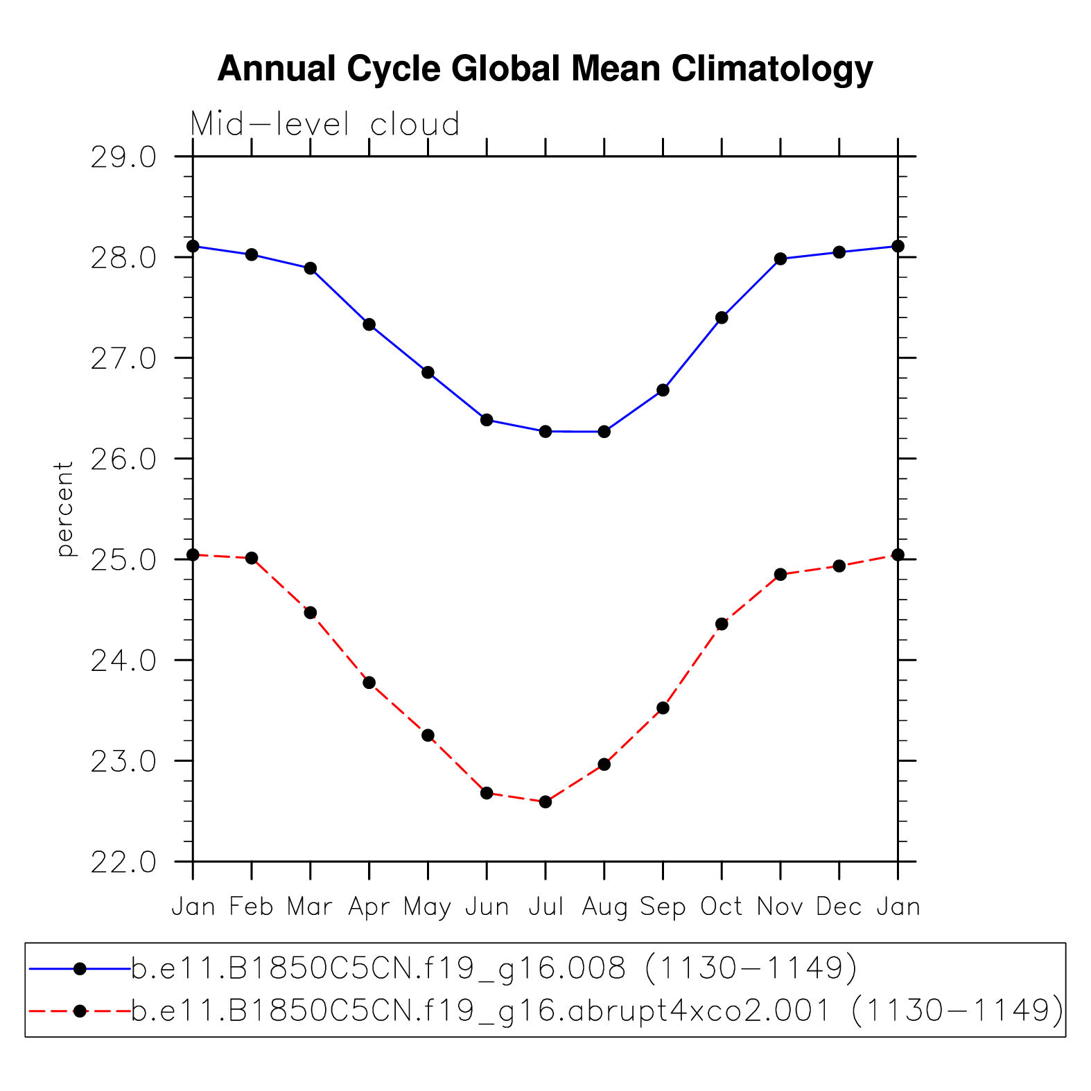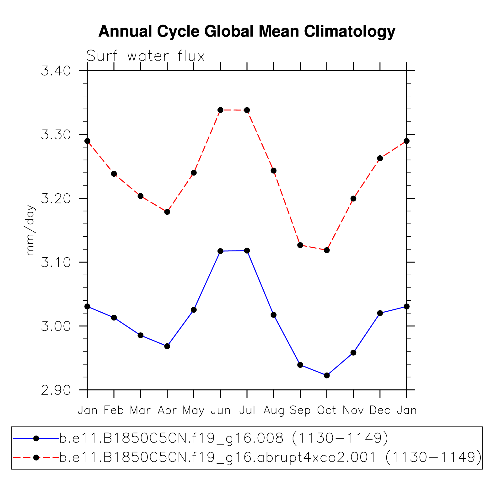 DIAG Set 10 - Annual cycle line plots of global means