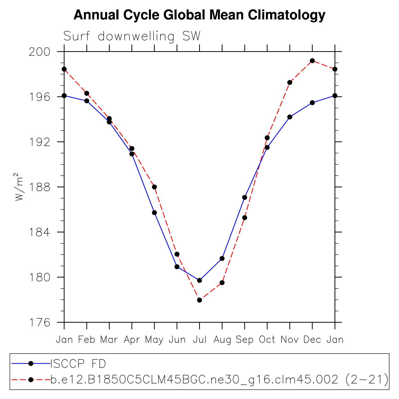 DIAG Set 10 - Annual cycle line plots of global means