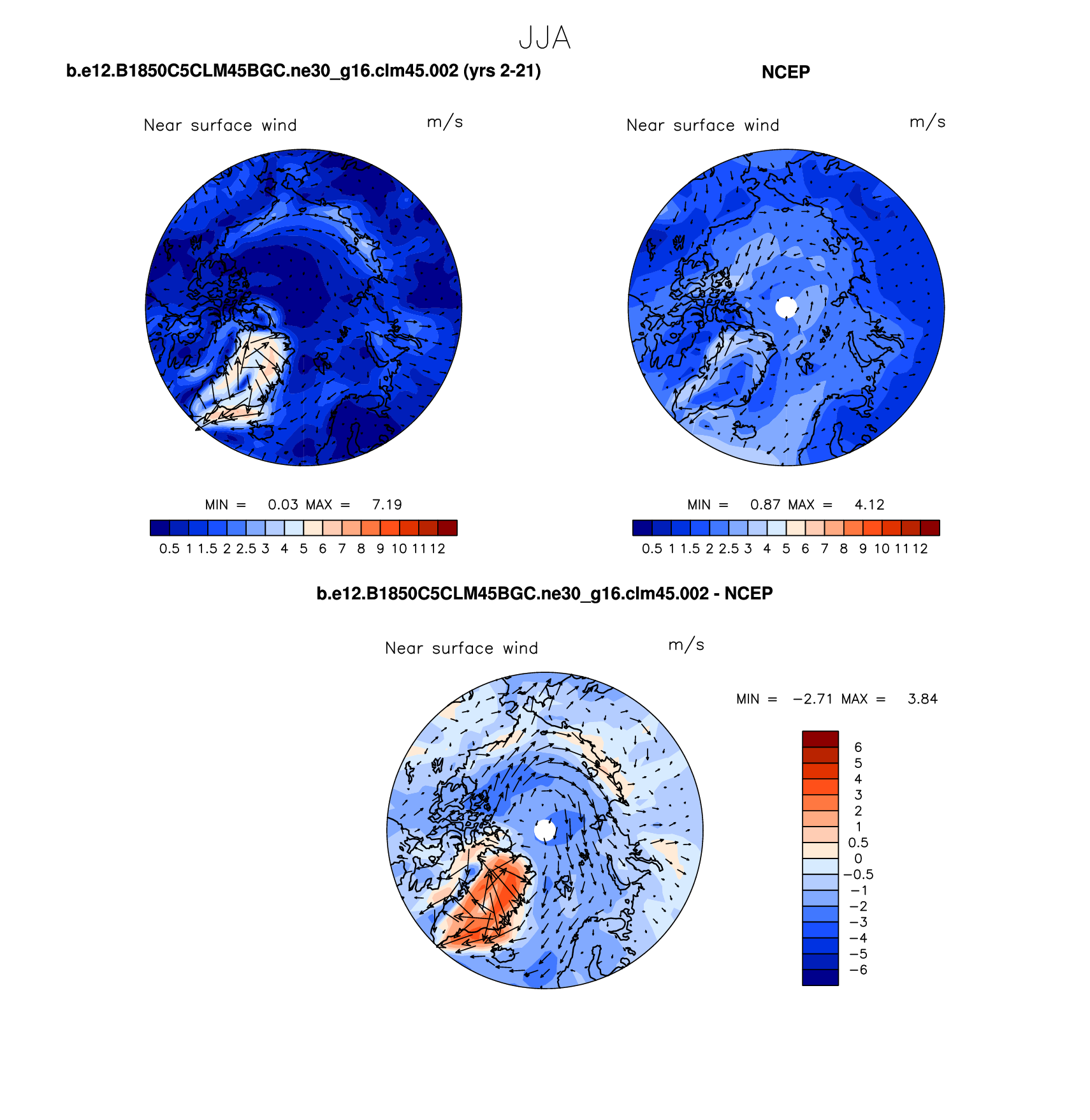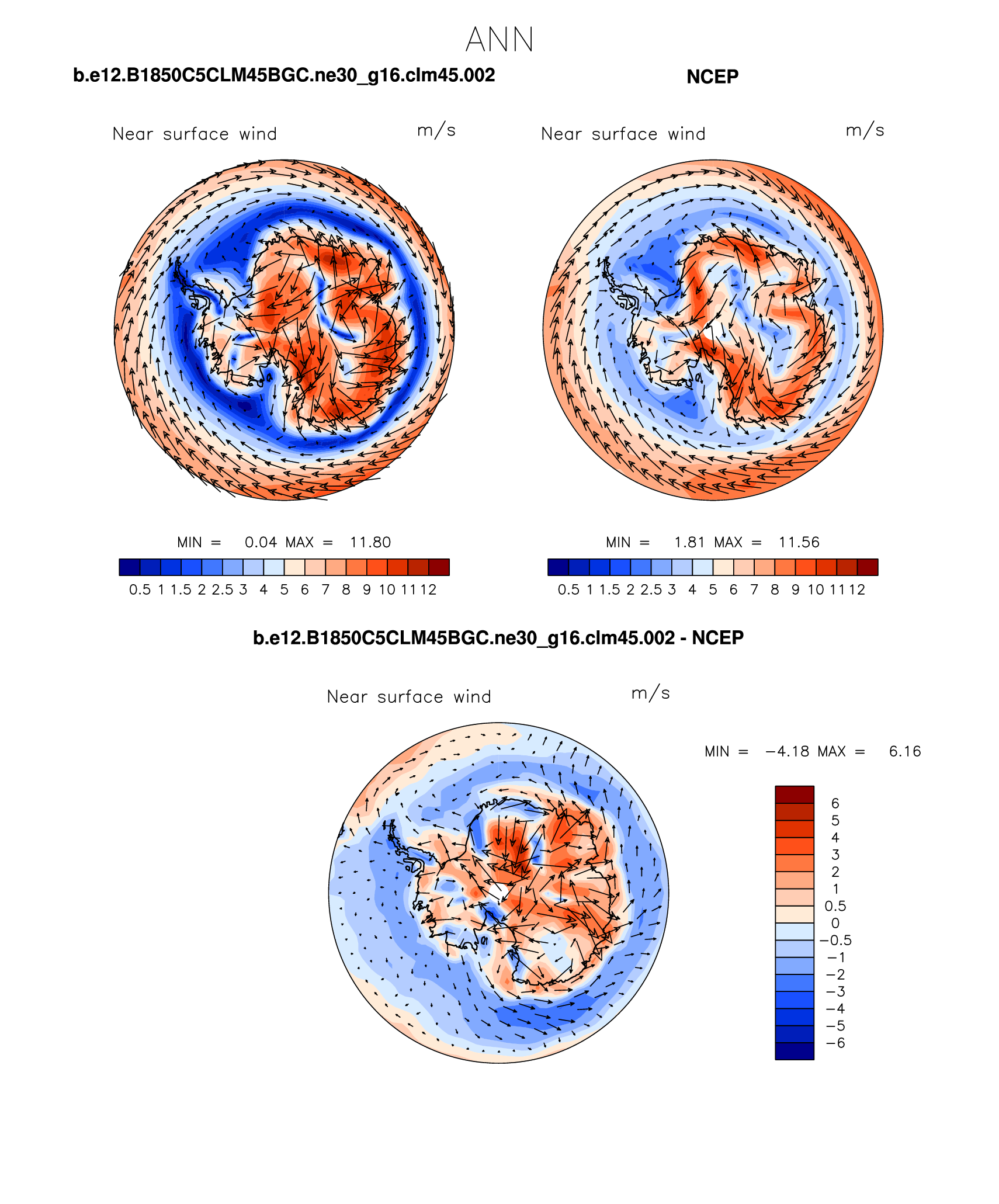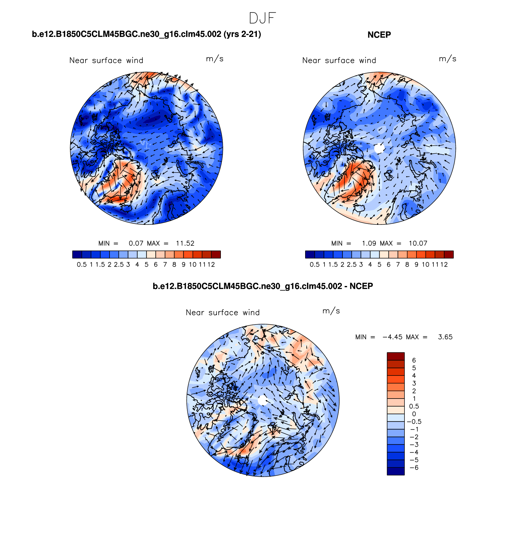 b.e12.B1850C5CLM45BGC.ne30_g16.clm45.002 DIAG Set 7 - Polar contour/vector plots of DJF, JJA and ANN means