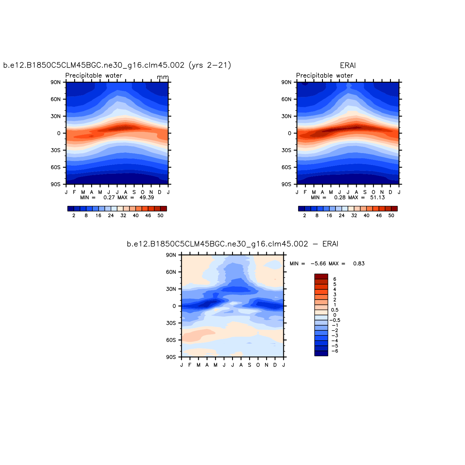 b.e12.B1850C5CLM45BGC.ne30_g16.clm45.002 DIAG Set 8 - Annual cycle contour plots of zonal means