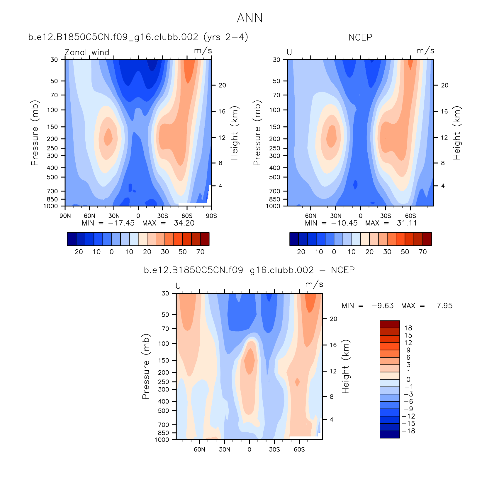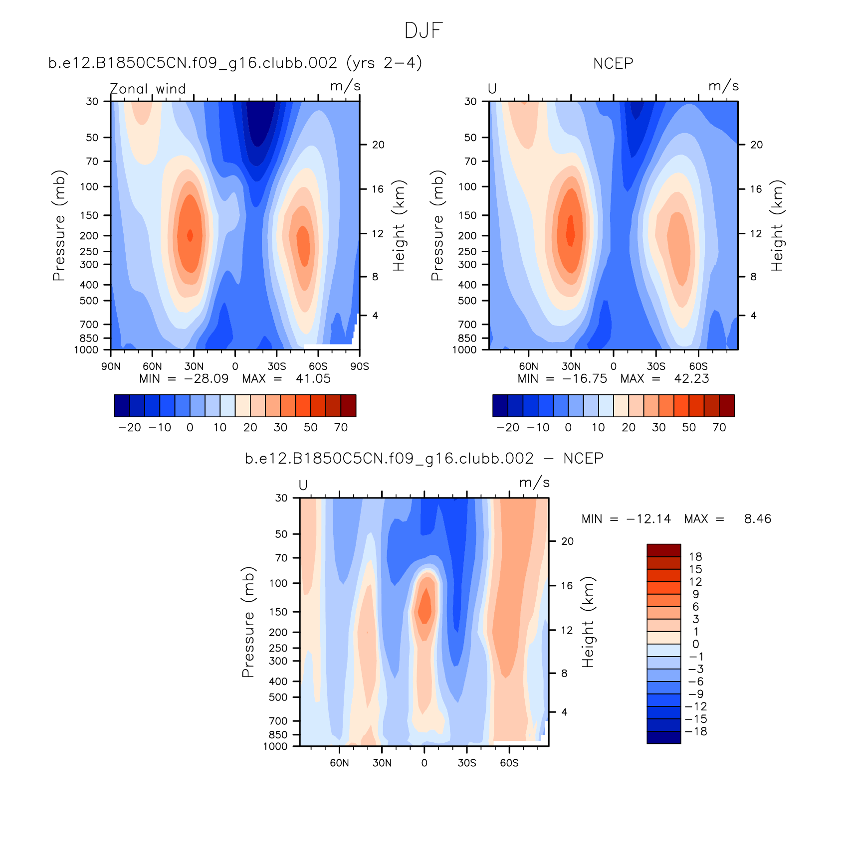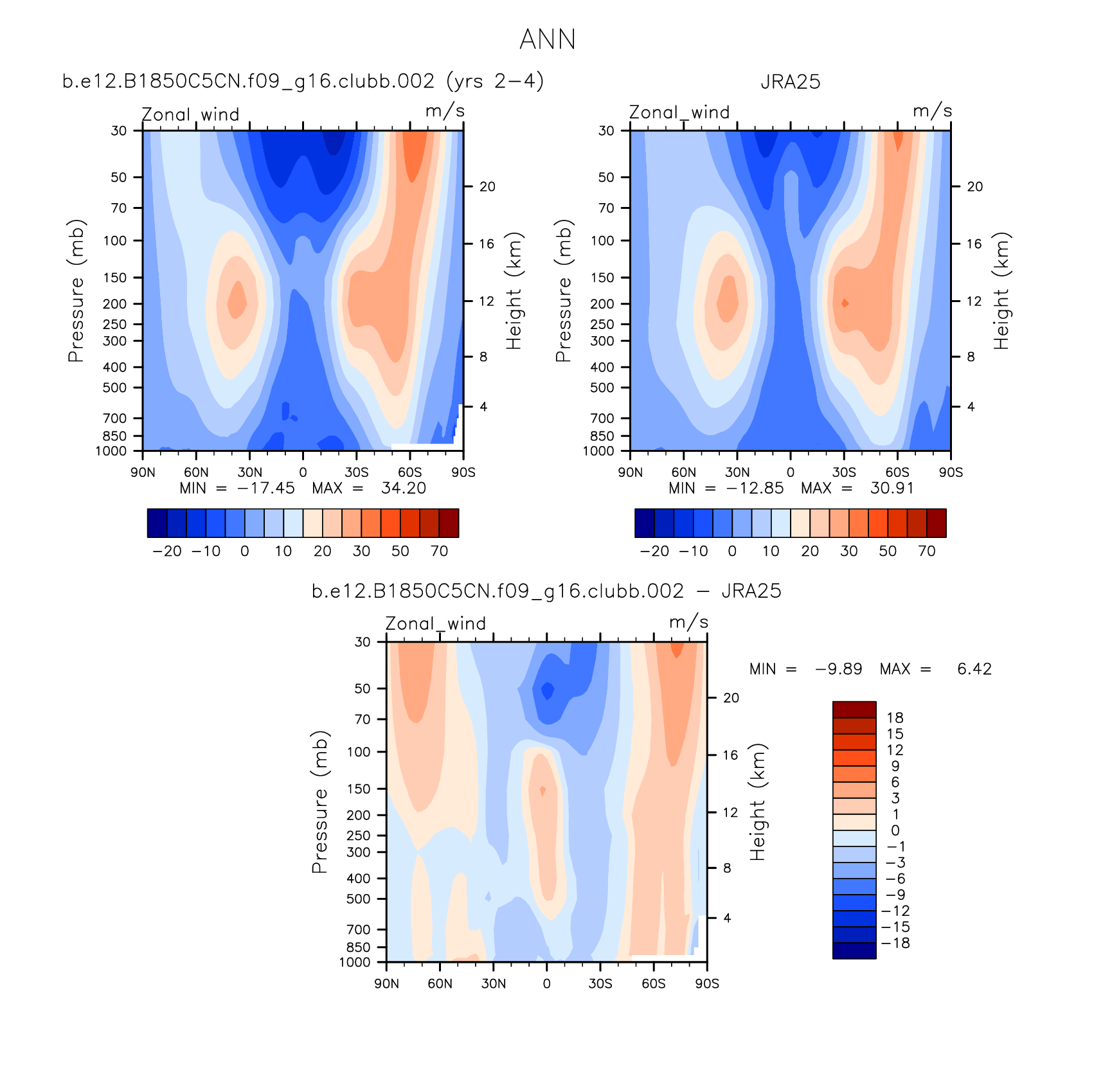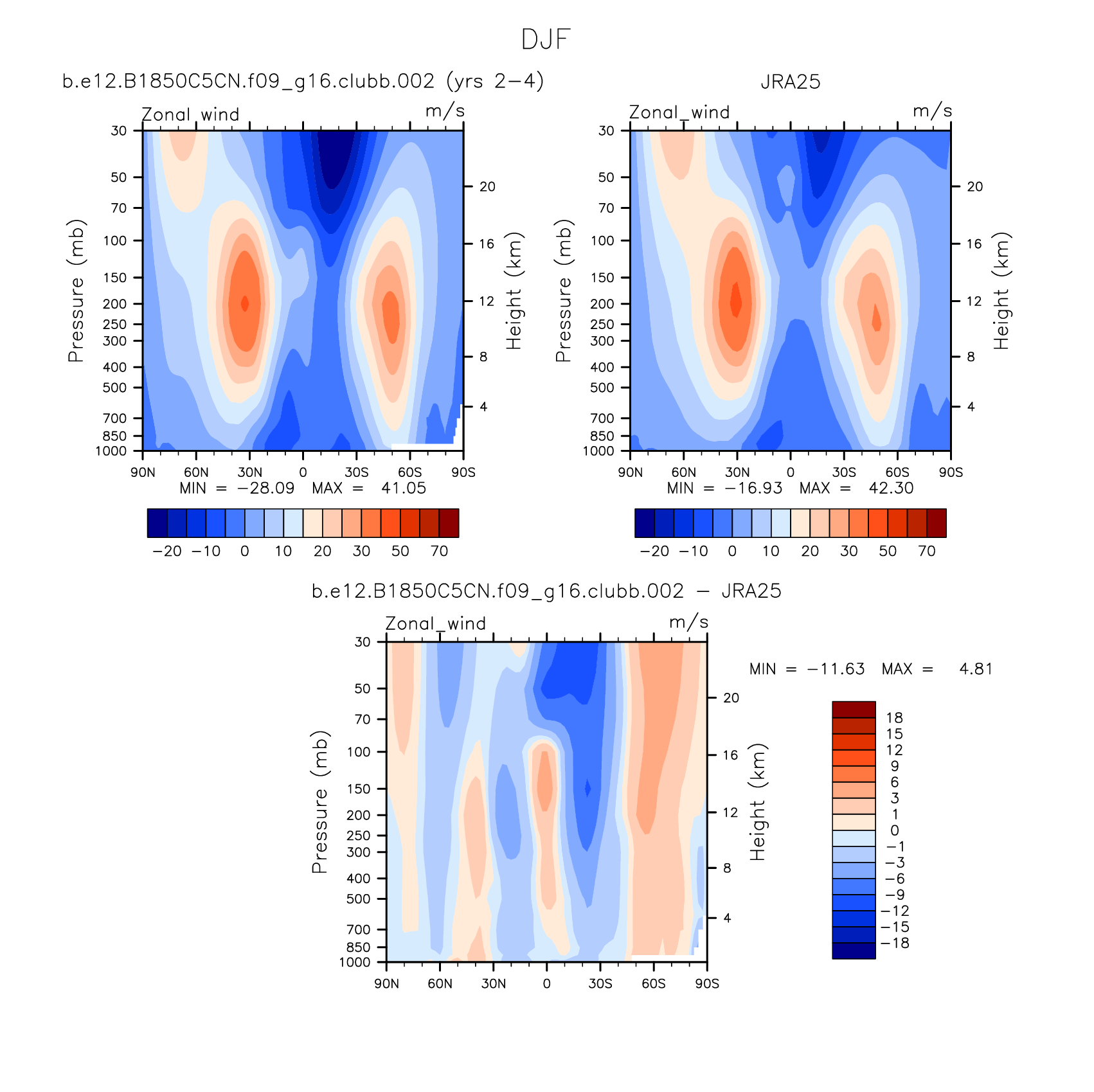 DIAG Set 4 - Vertical contour plots of DJF, JJA and ANN zonal means