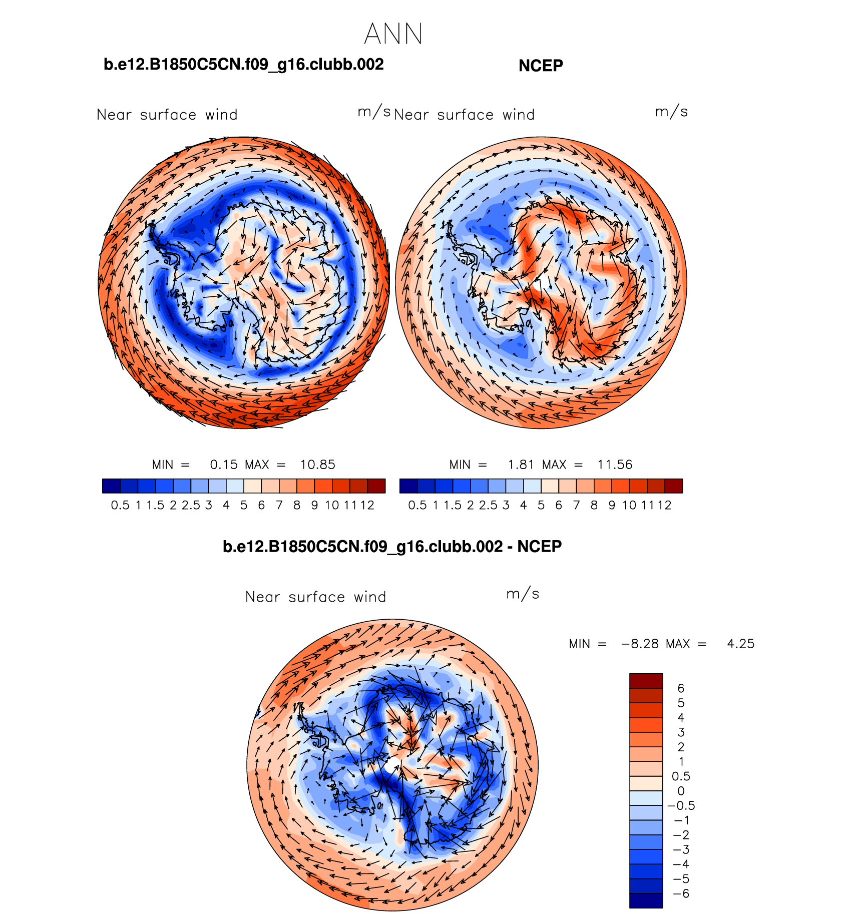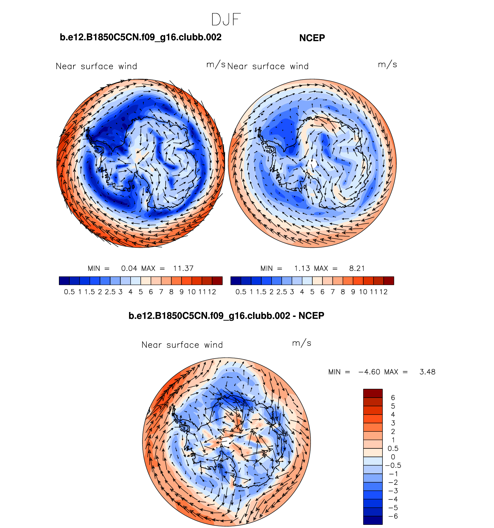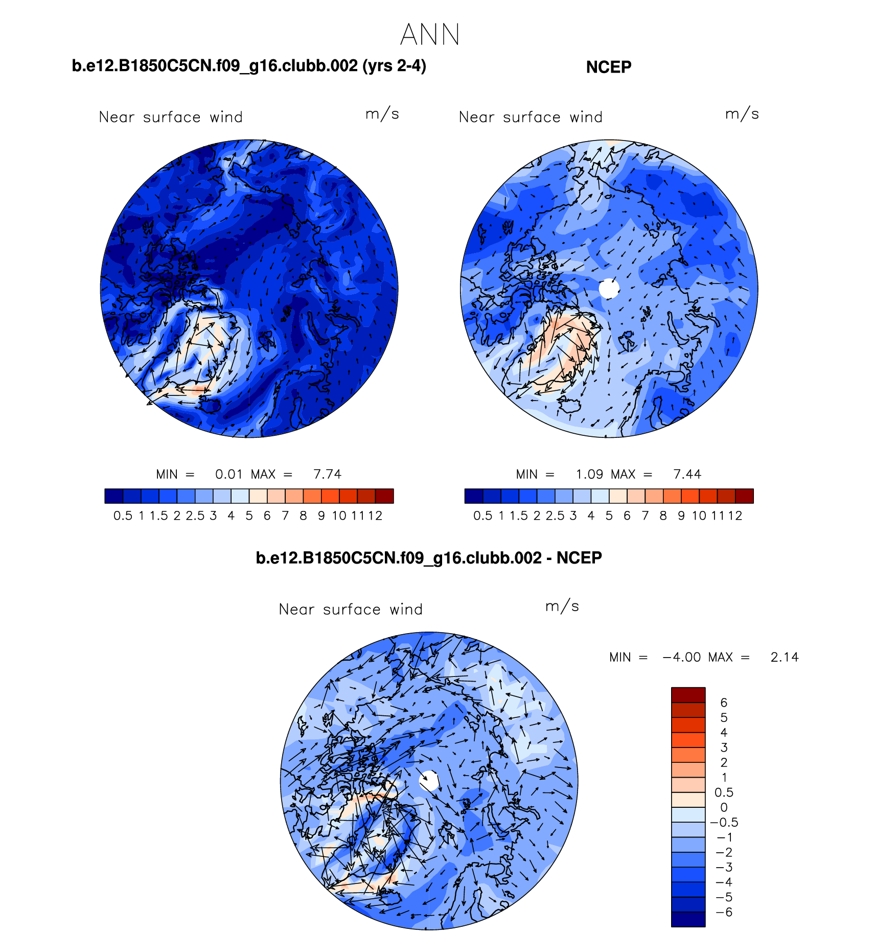 b.e12.B1850C5CN.f09_g16.clubb.002 DIAG Set 7 - Polar contour/vector plots of DJF, JJA and ANN means