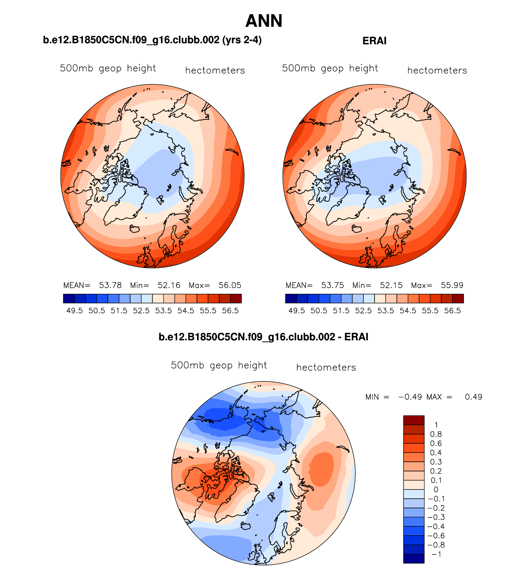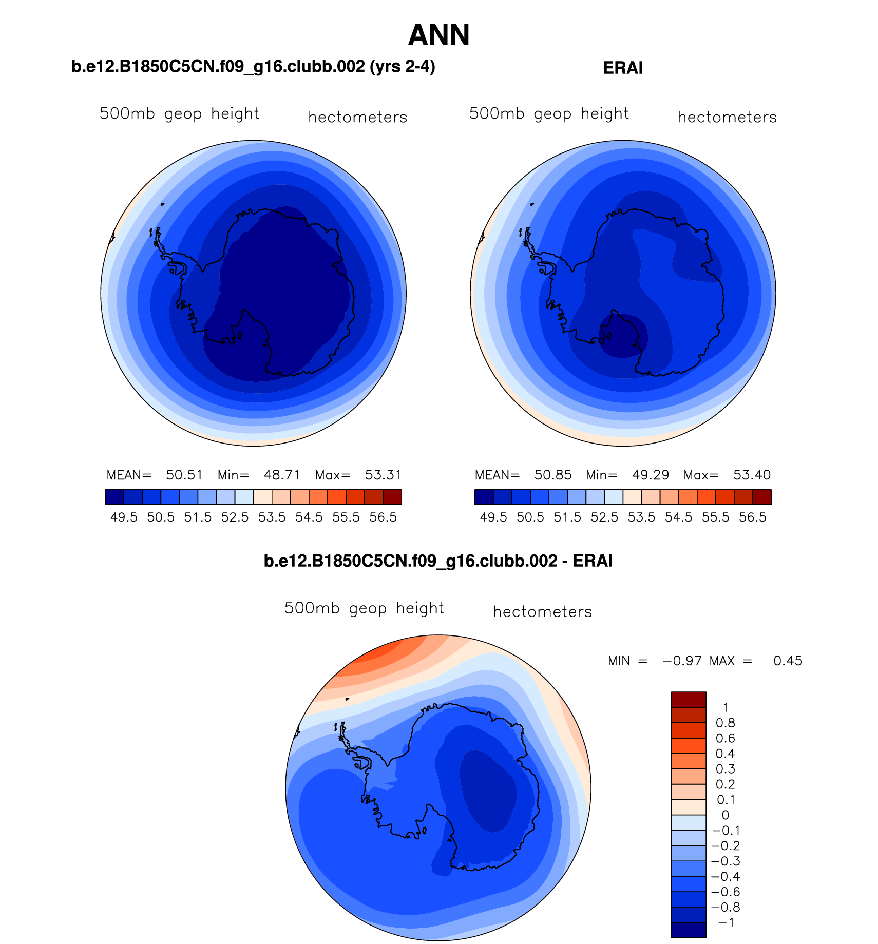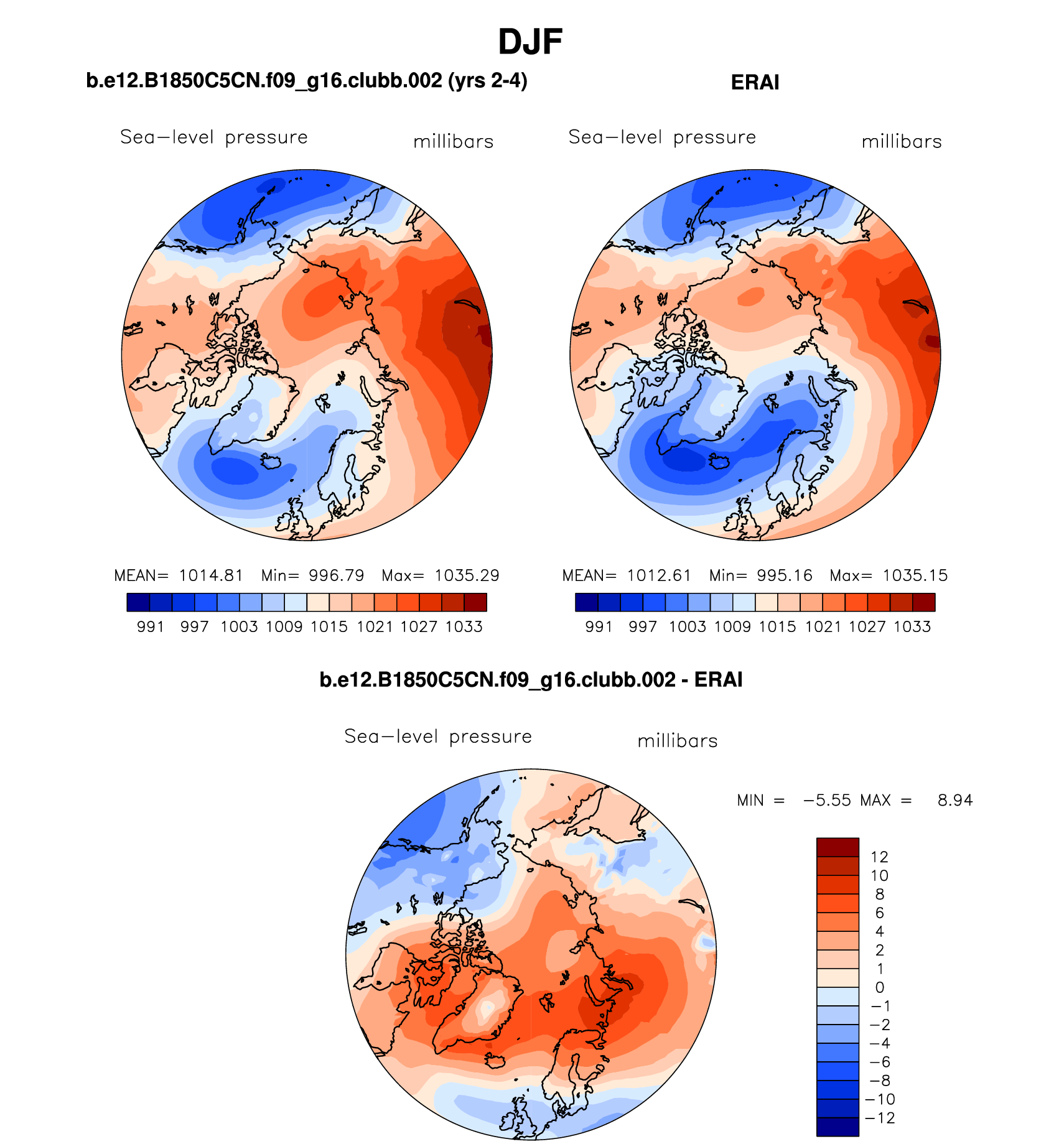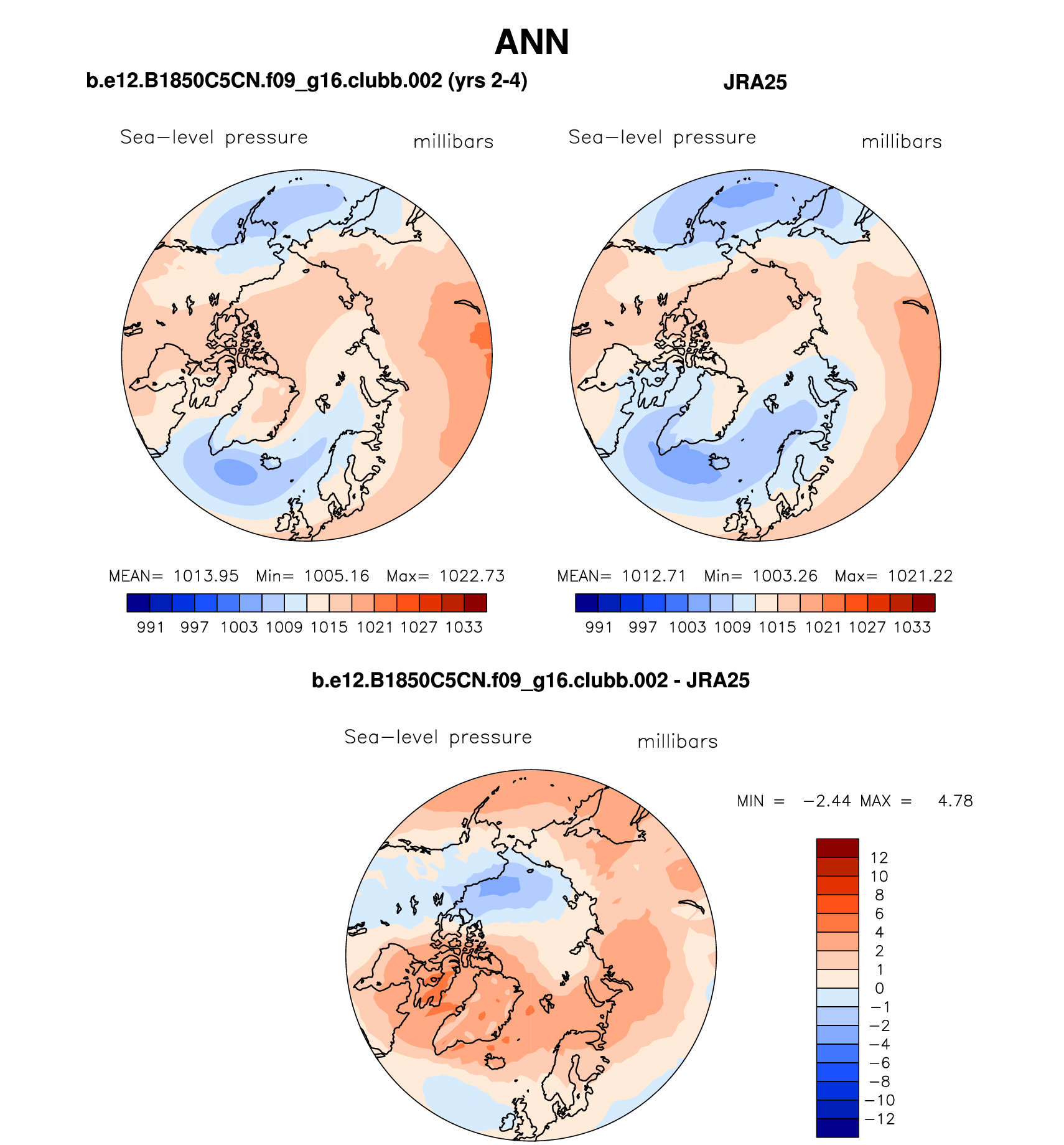 b.e12.B1850C5CN.f09_g16.clubb.002 DIAG Set 7 - Polar contour/vector plots of DJF, JJA and ANN means