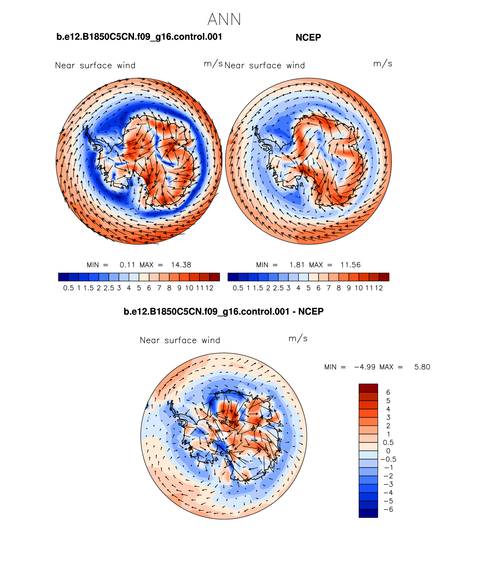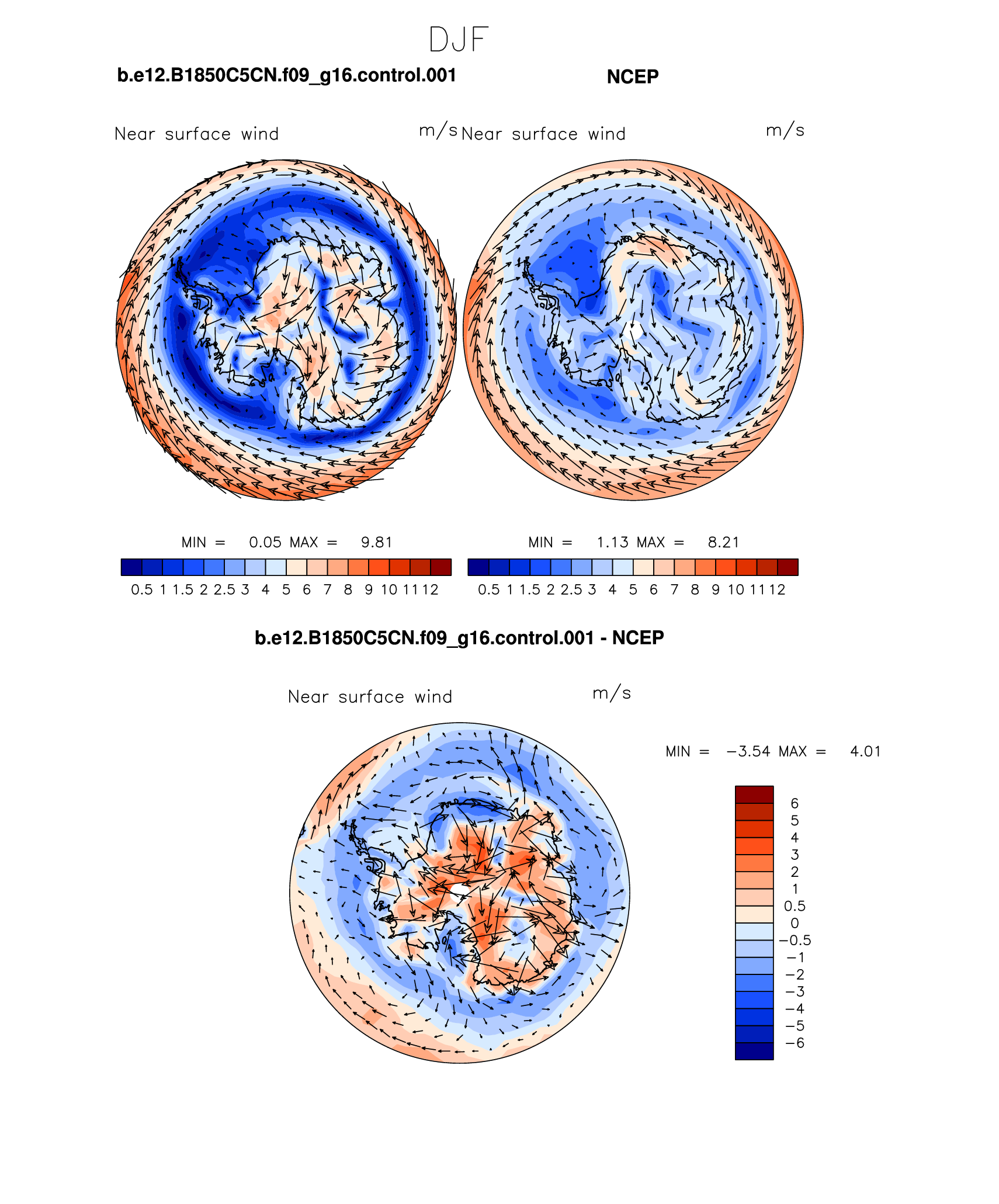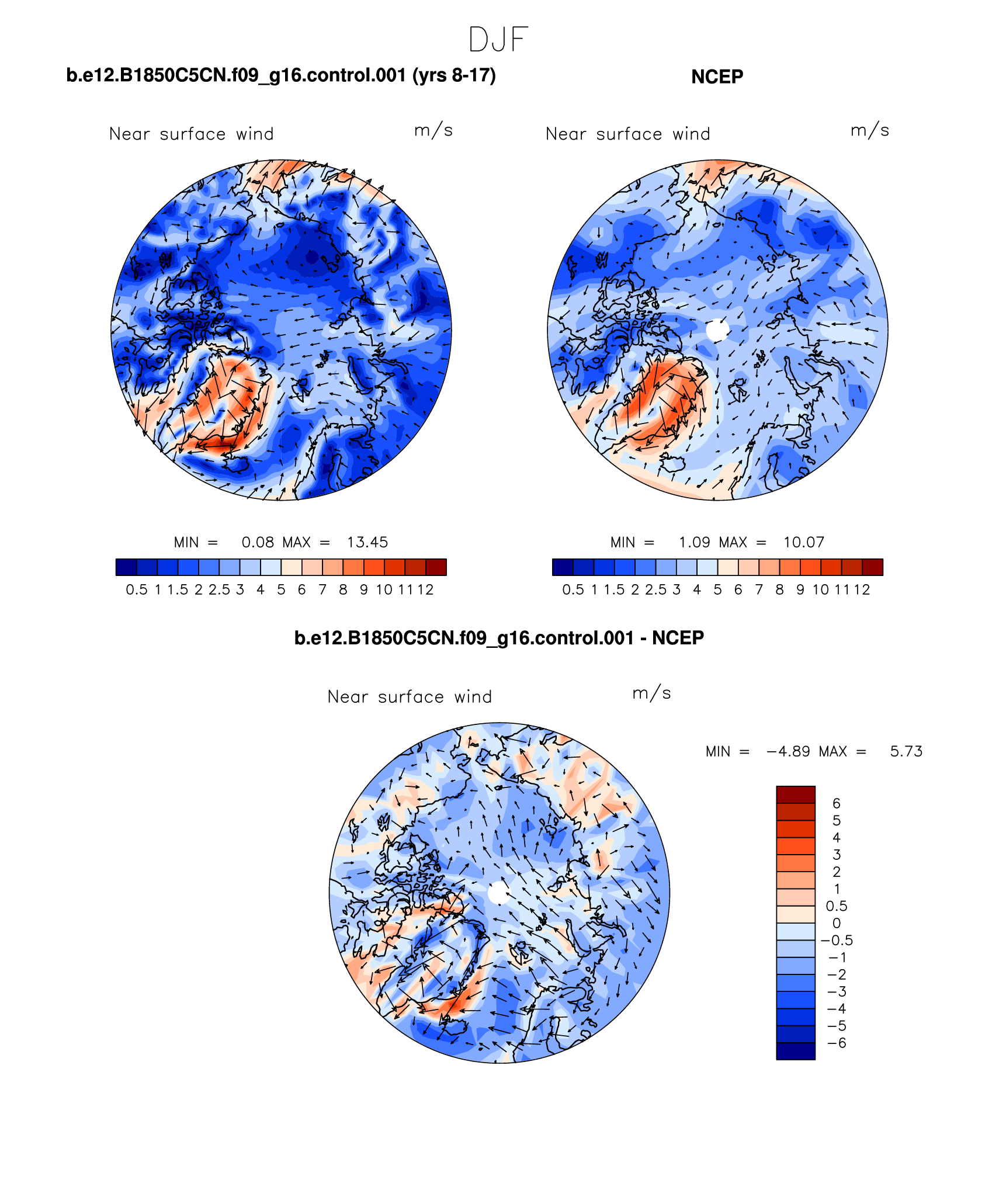 b.e12.B1850C5CN.f09_g16.control.001 DIAG Set 7 - Polar contour/vector plots of DJF, JJA and ANN means