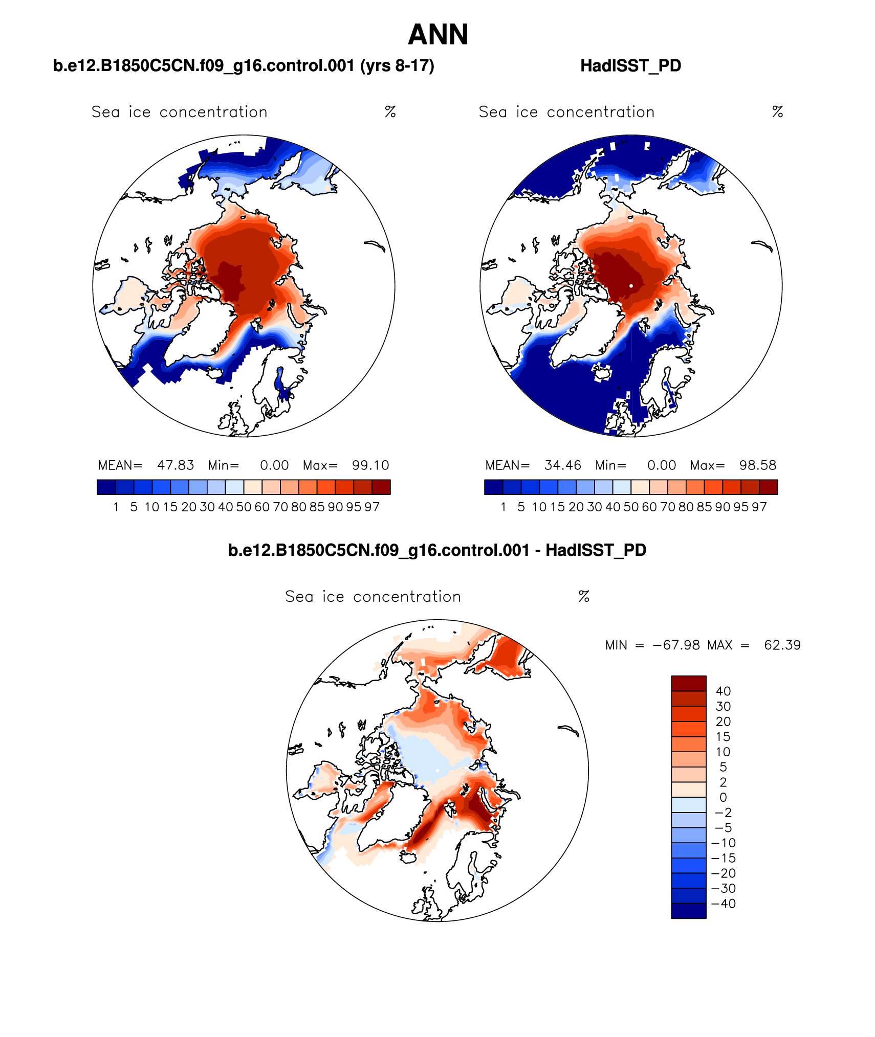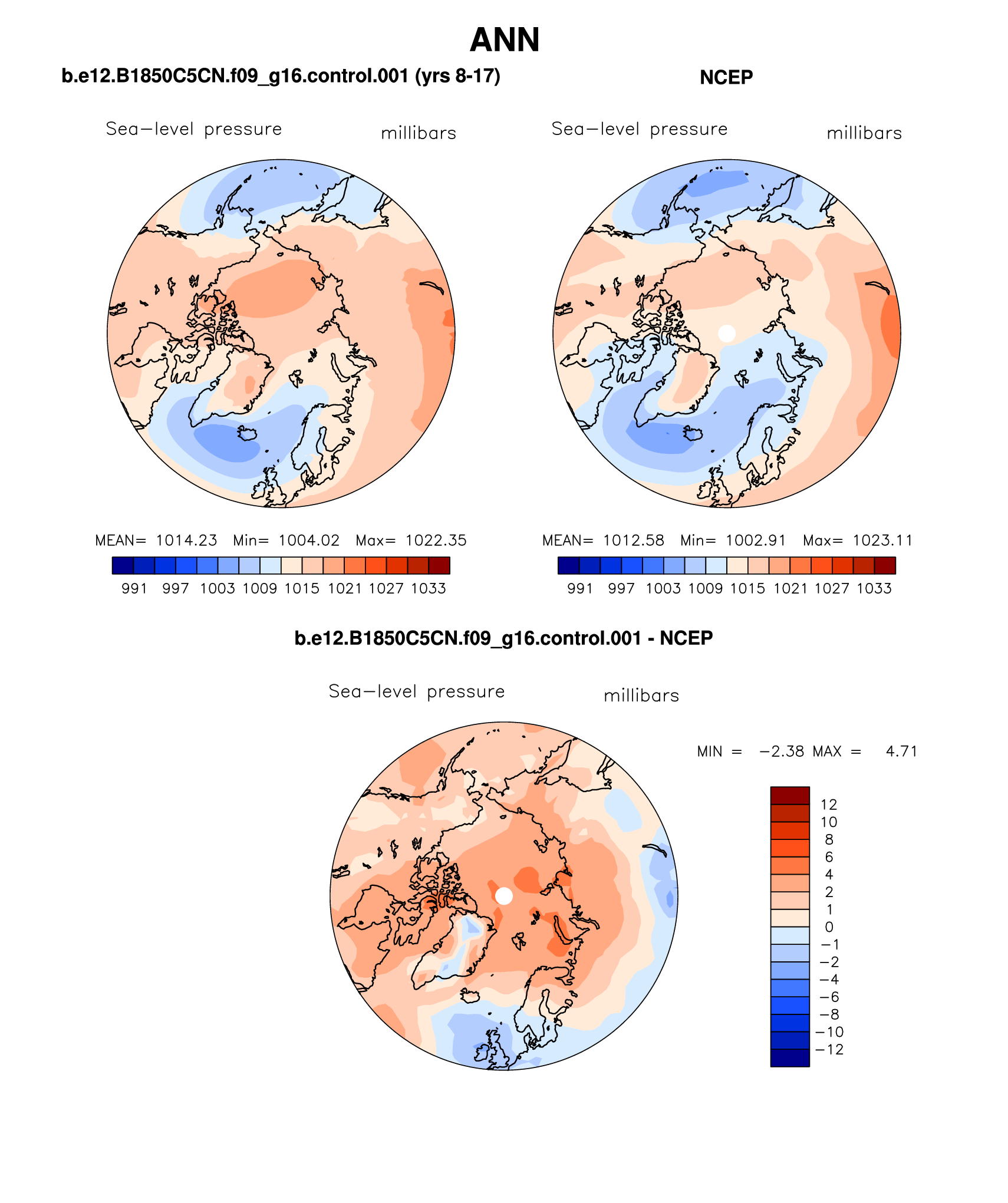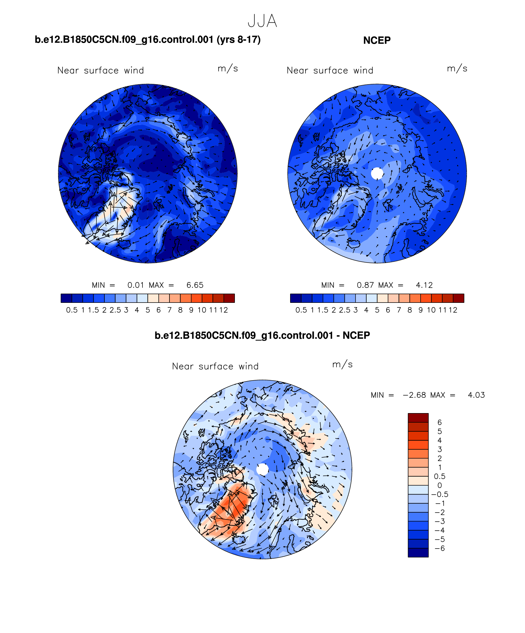 b.e12.B1850C5CN.f09_g16.control.001 DIAG Set 7 - Polar contour/vector plots of DJF, JJA and ANN means