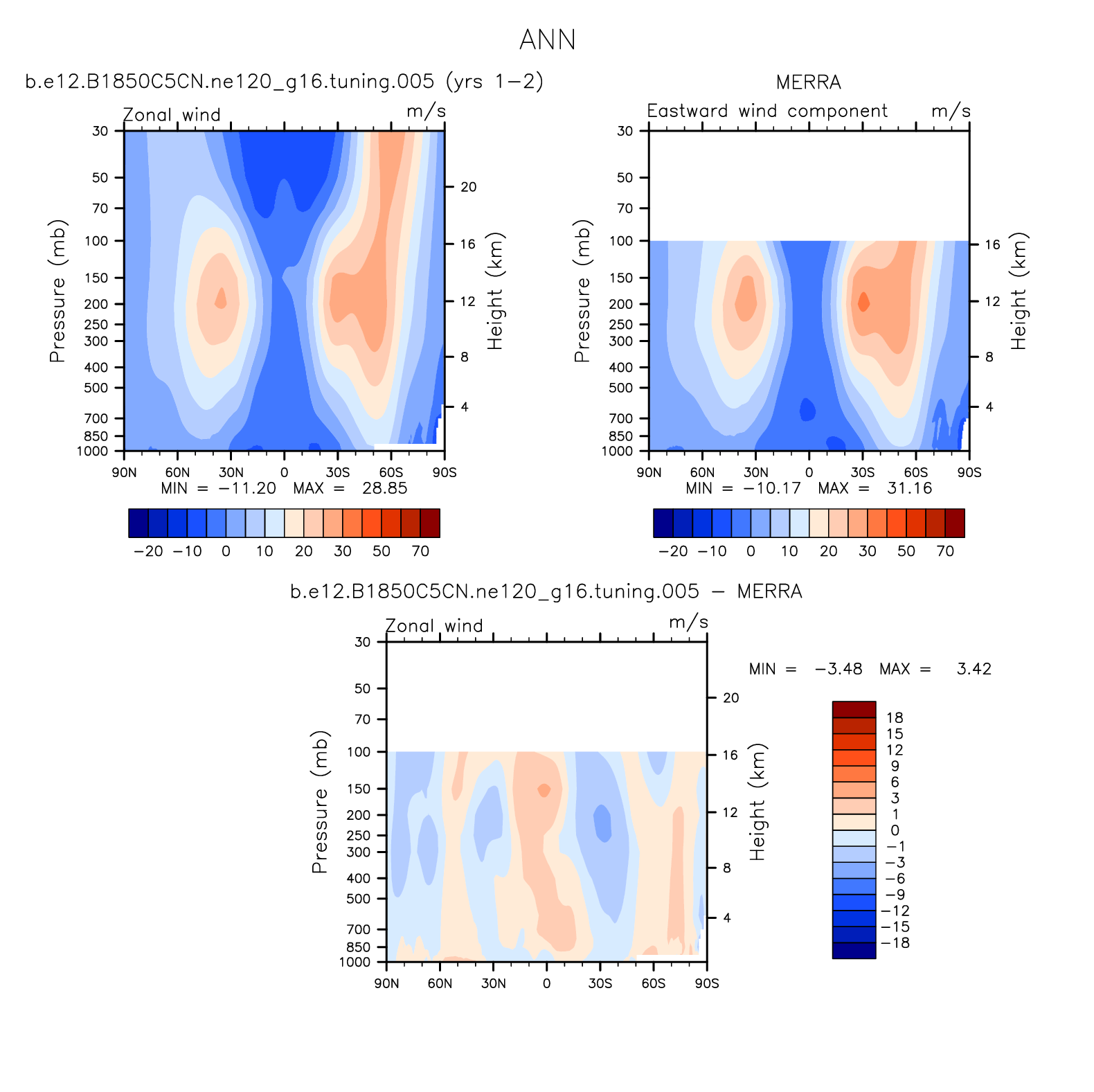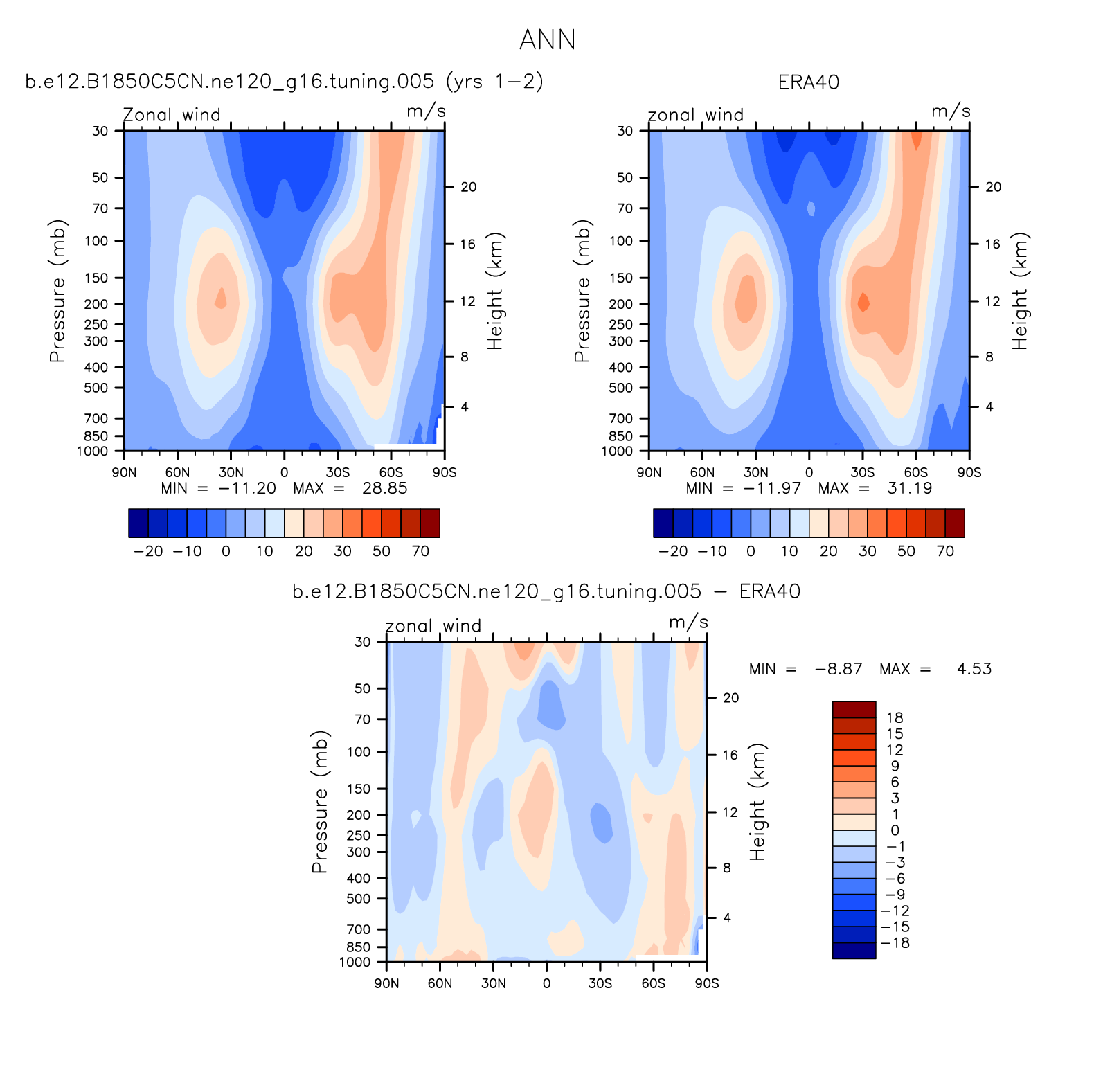 DIAG Set 4 - Vertical contour plots of DJF, JJA and ANN zonal means