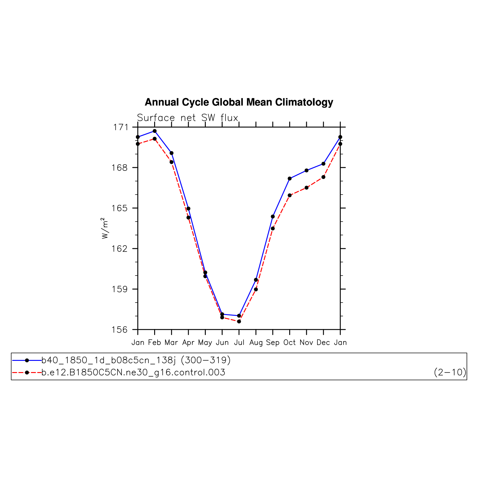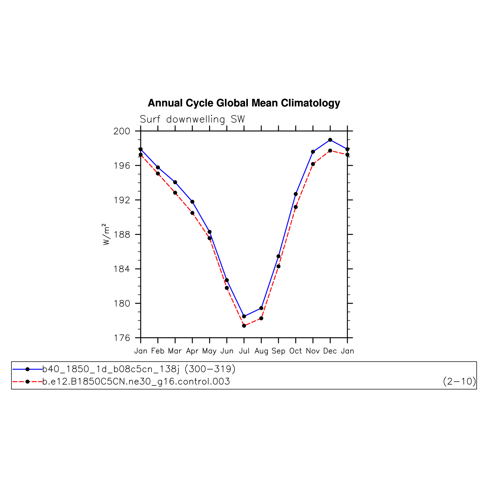 DIAG Set 10 - Annual cycle line plots of global means