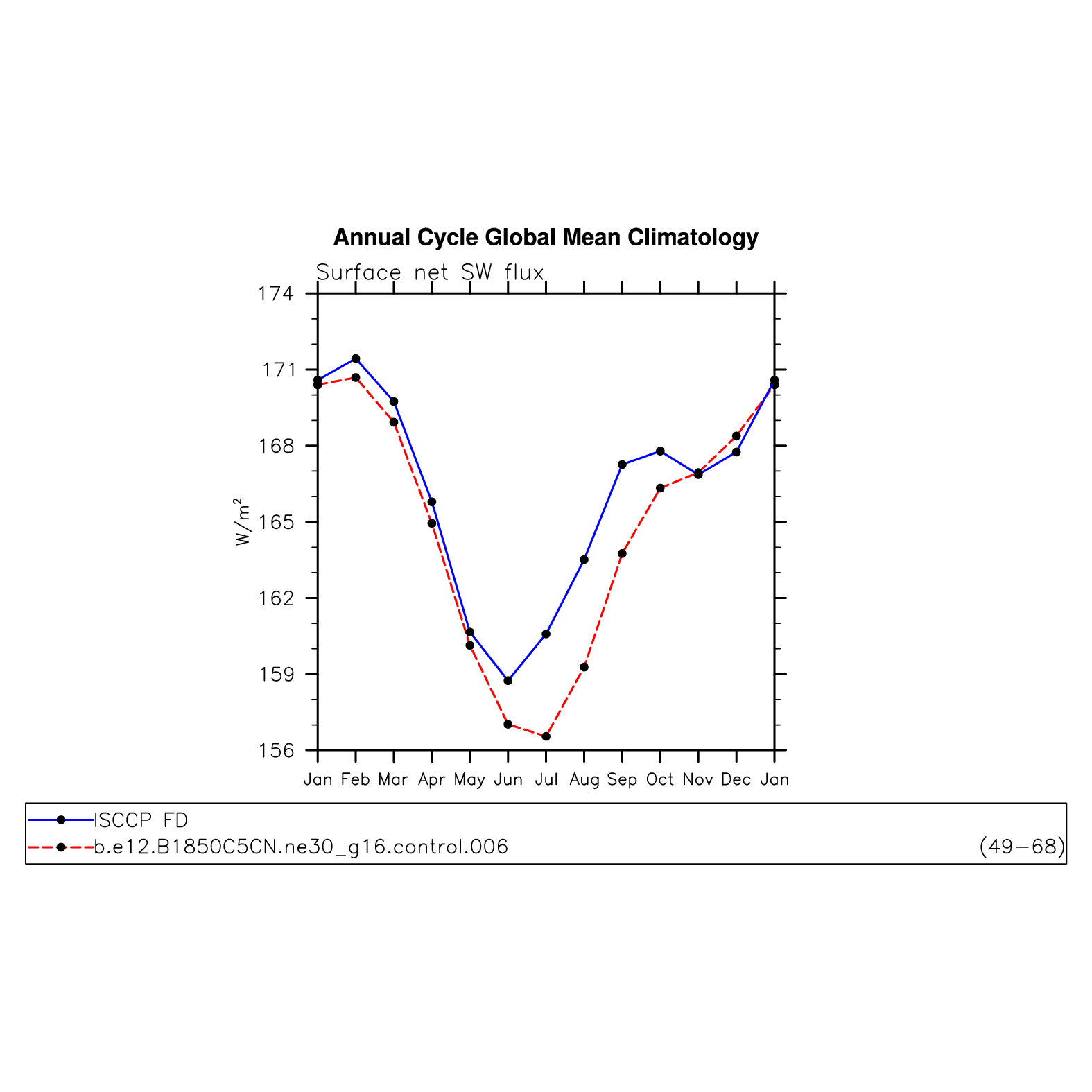 DIAG Set 10 - Annual cycle line plots of global means
