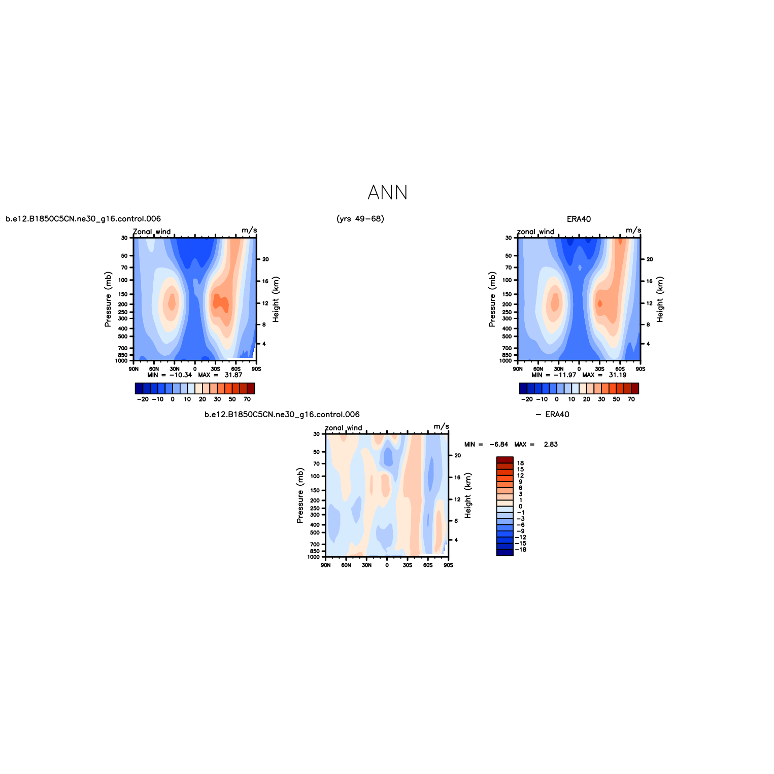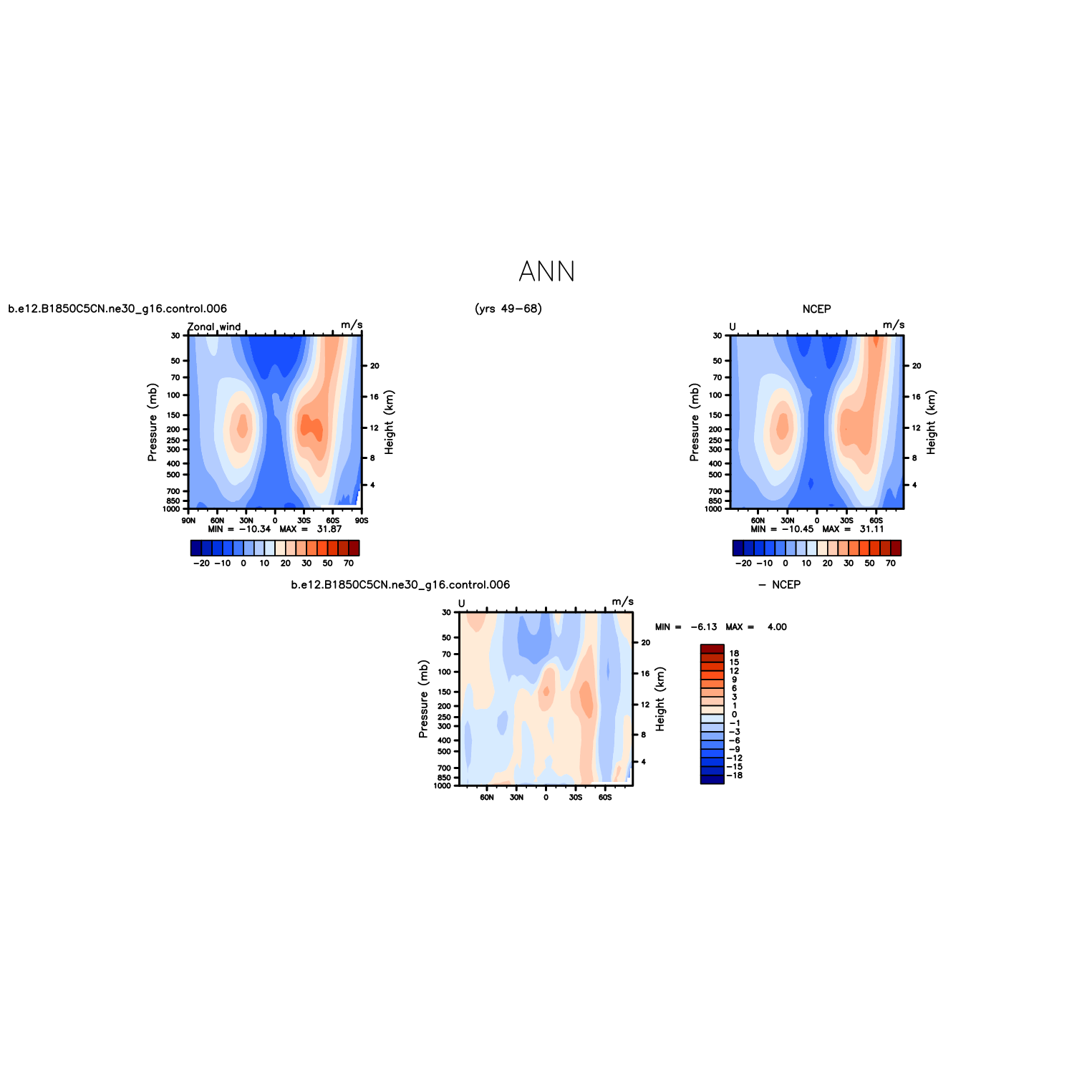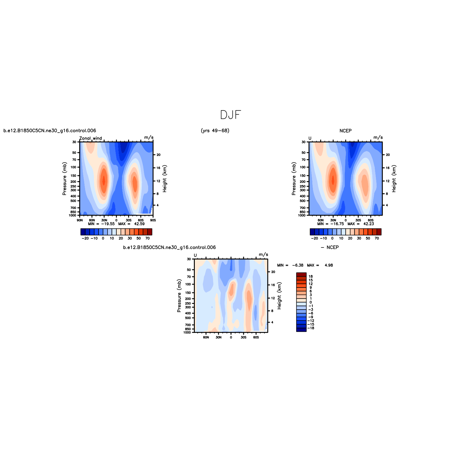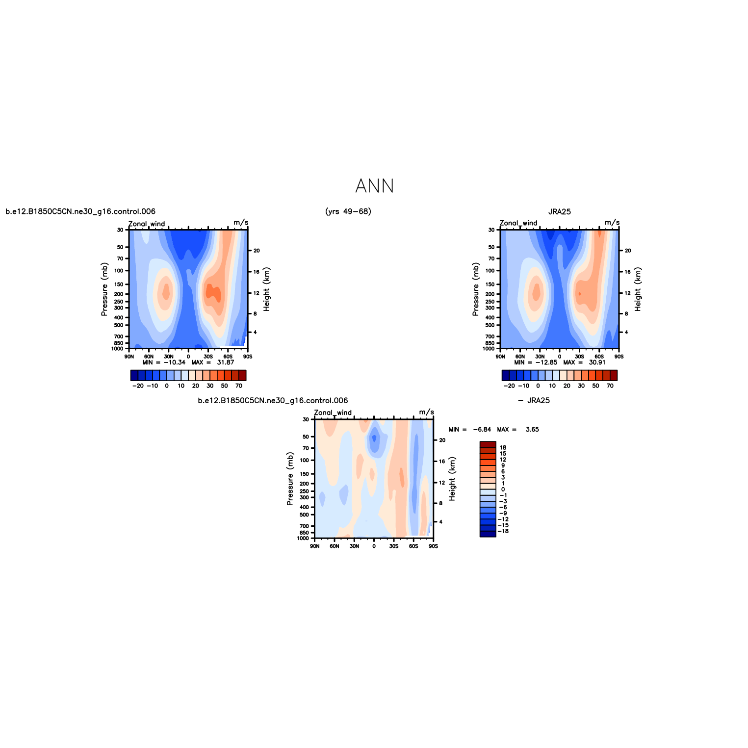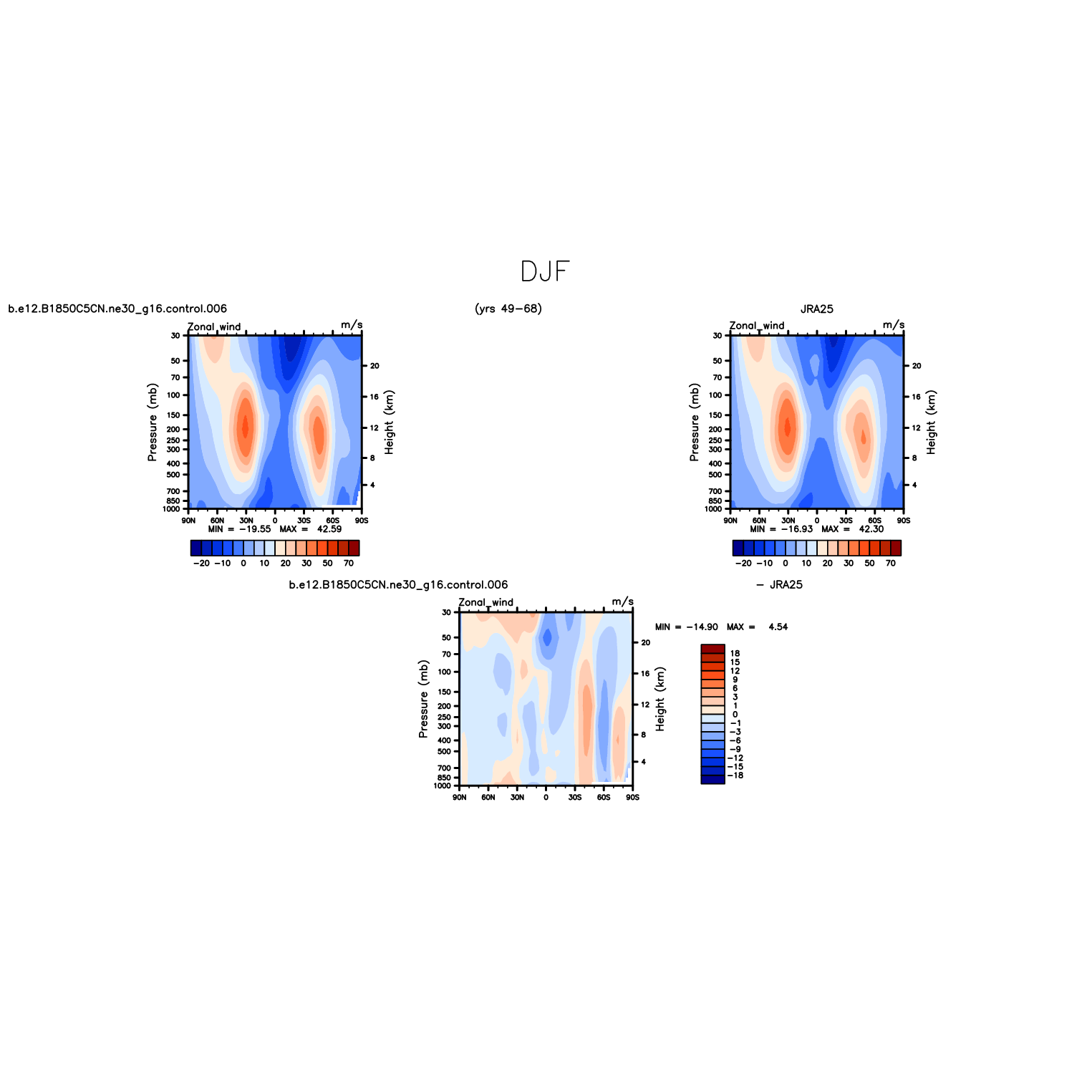 DIAG Set 4 - Vertical contour plots of DJF, JJA and ANN zonal means