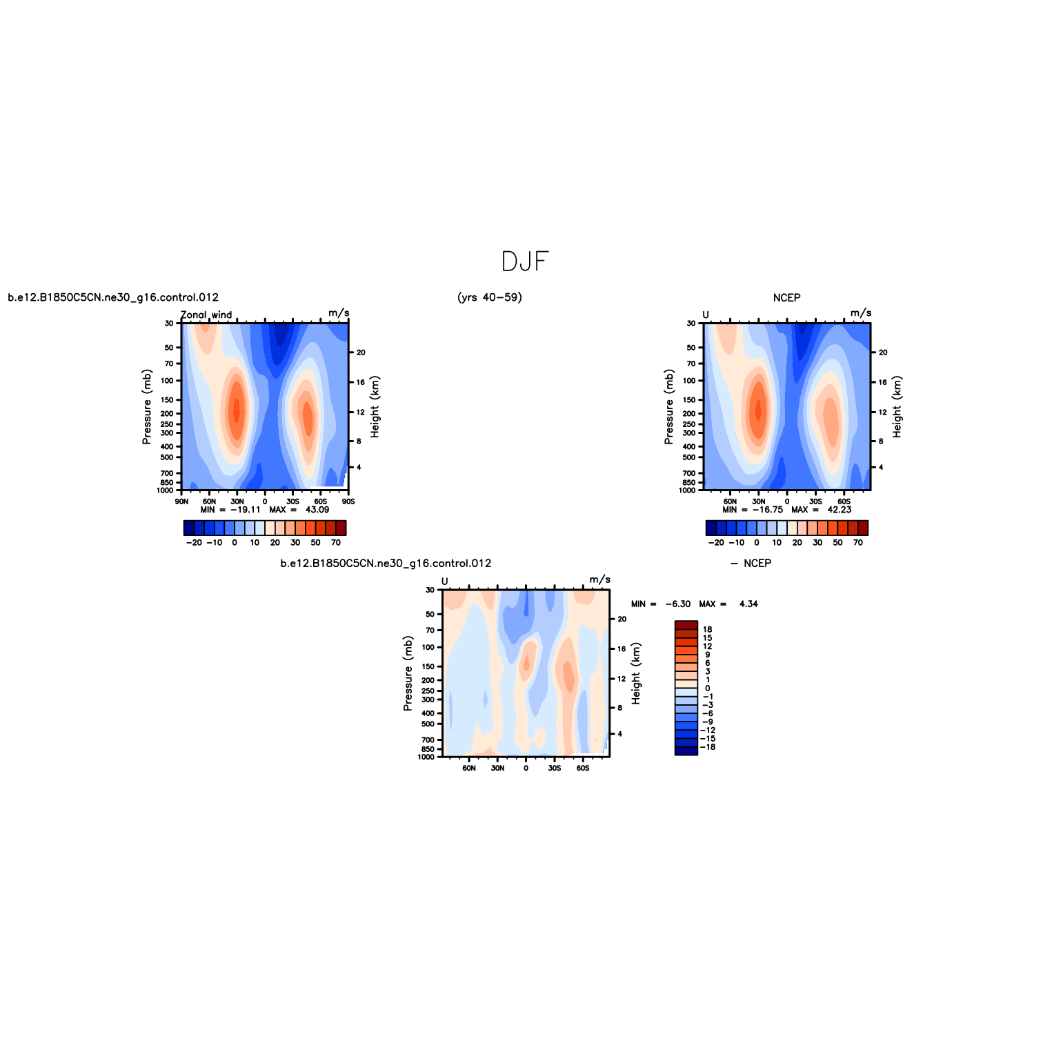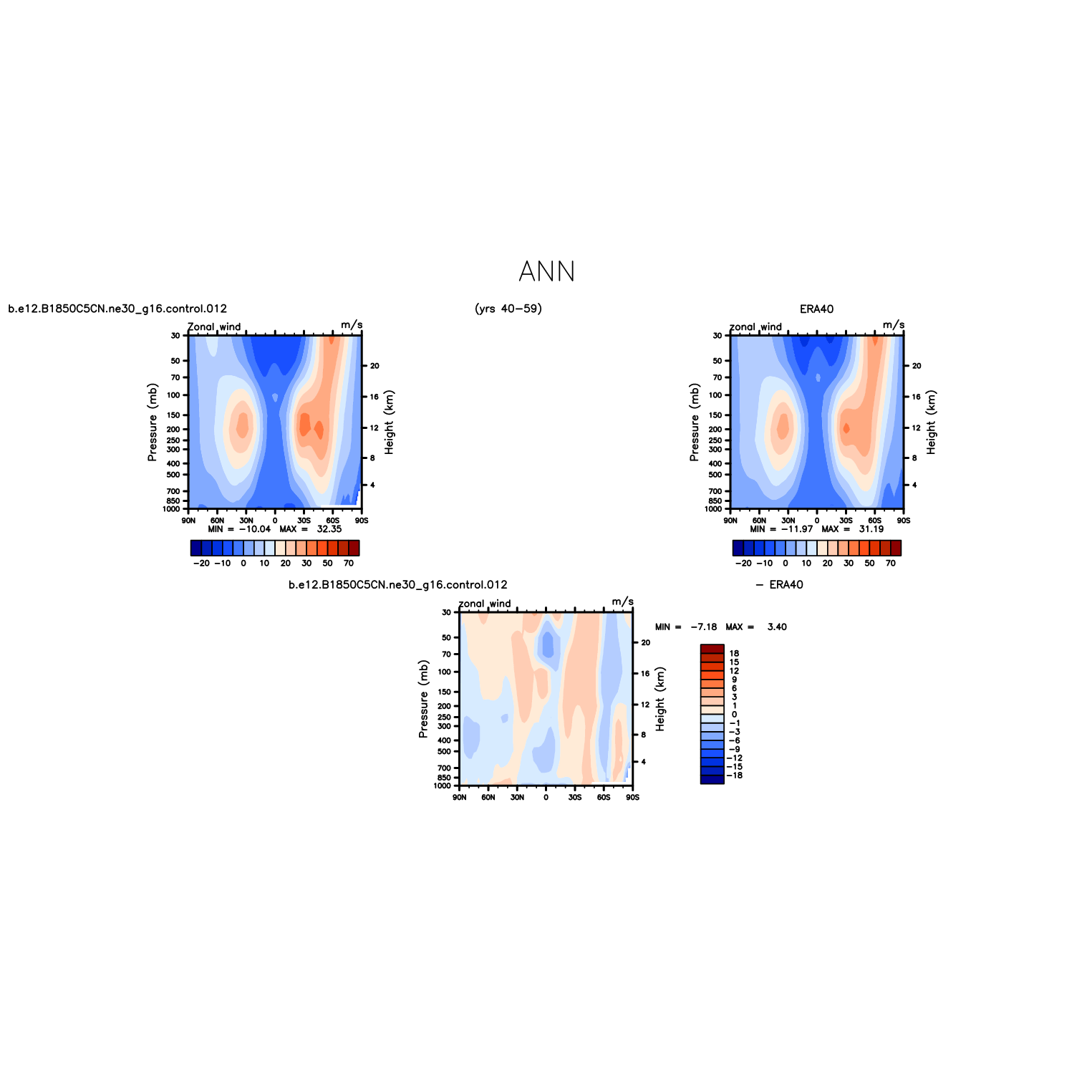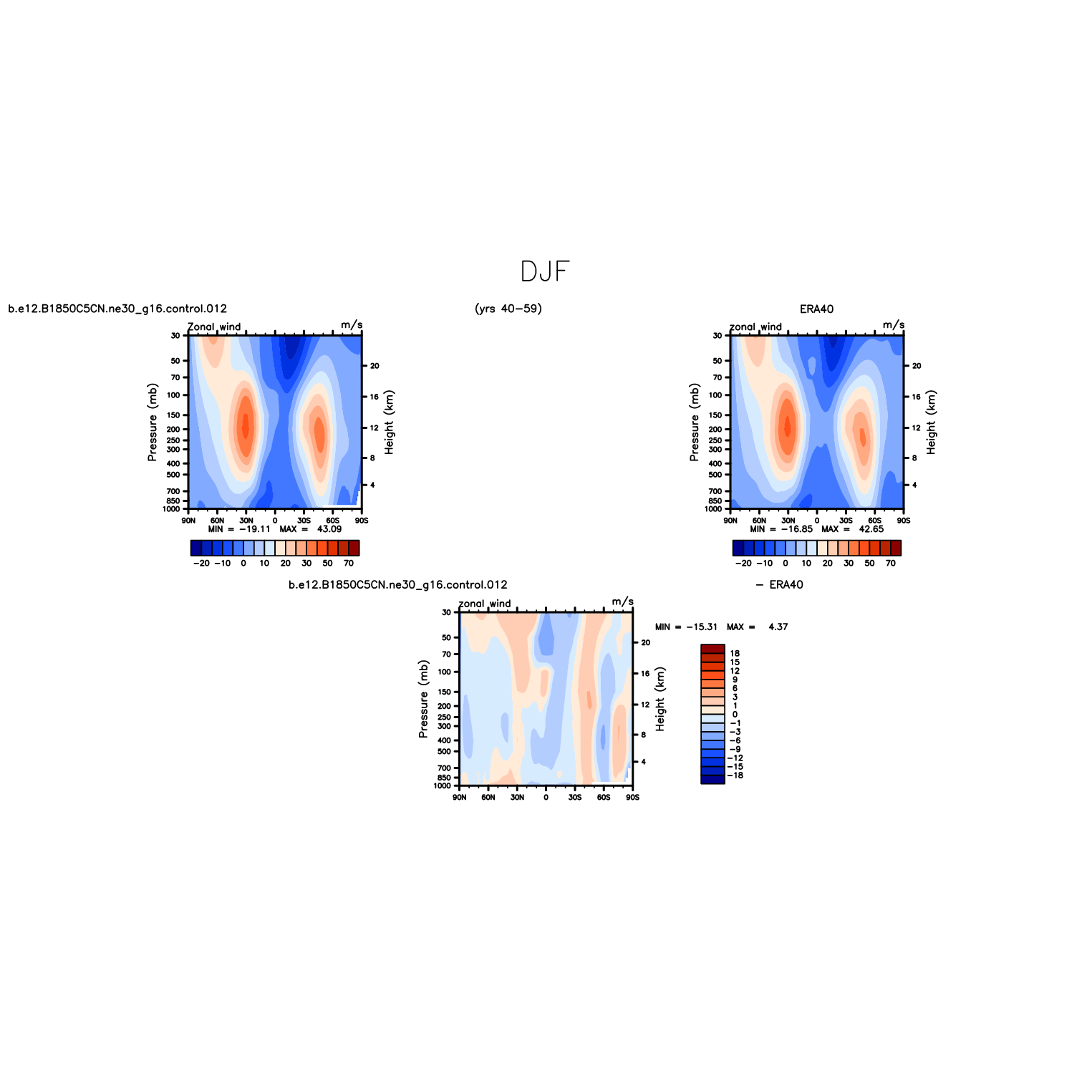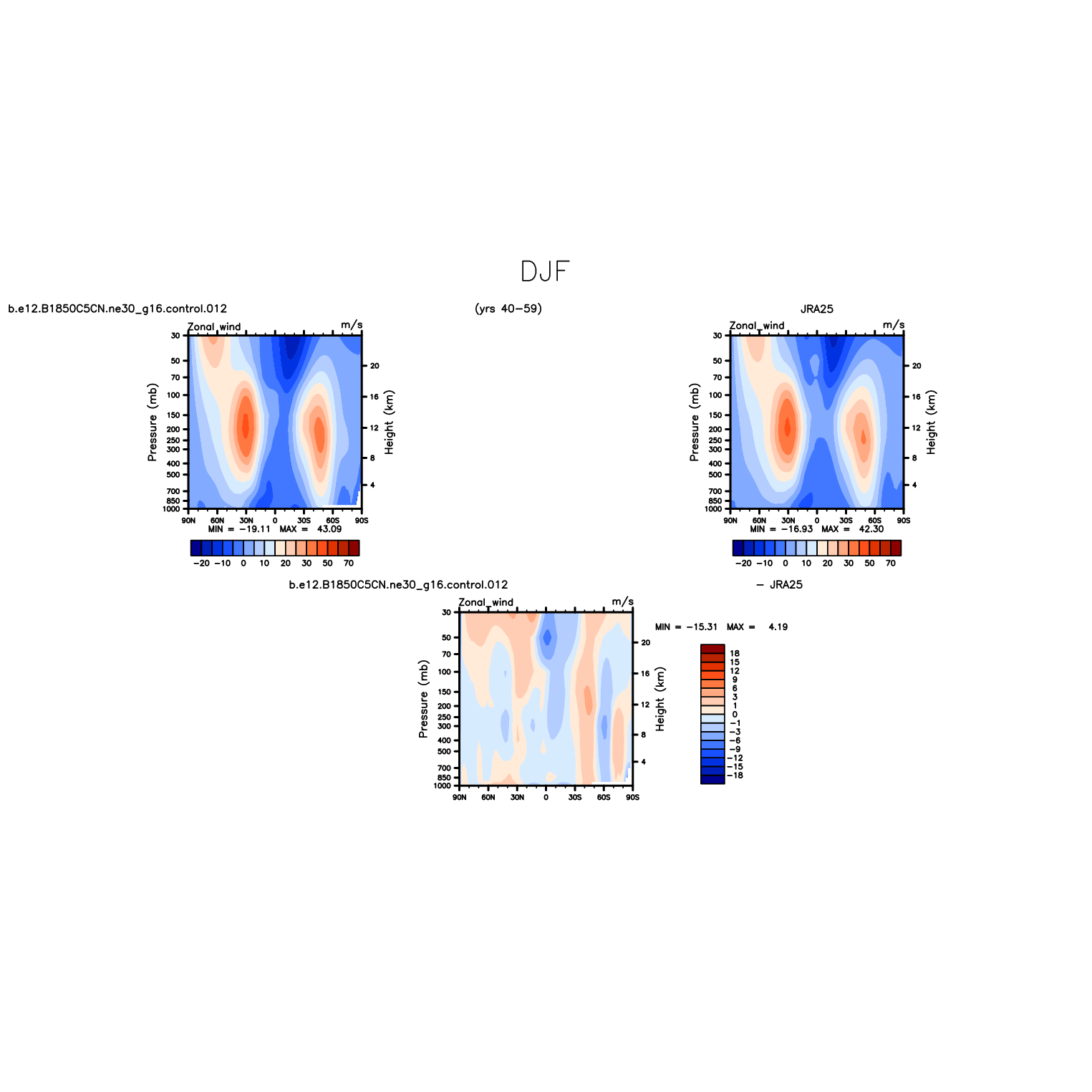 DIAG Set 4 - Vertical contour plots of DJF, JJA and ANN zonal means