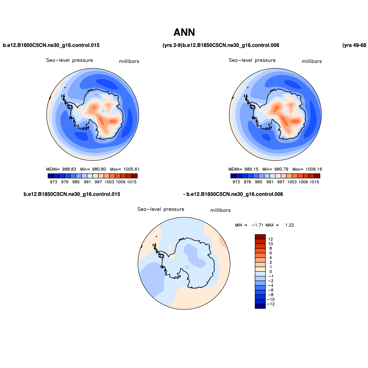 DIAG Set 7 - Polar contour plots of DJF, MAM, JJA, SON and ANN means