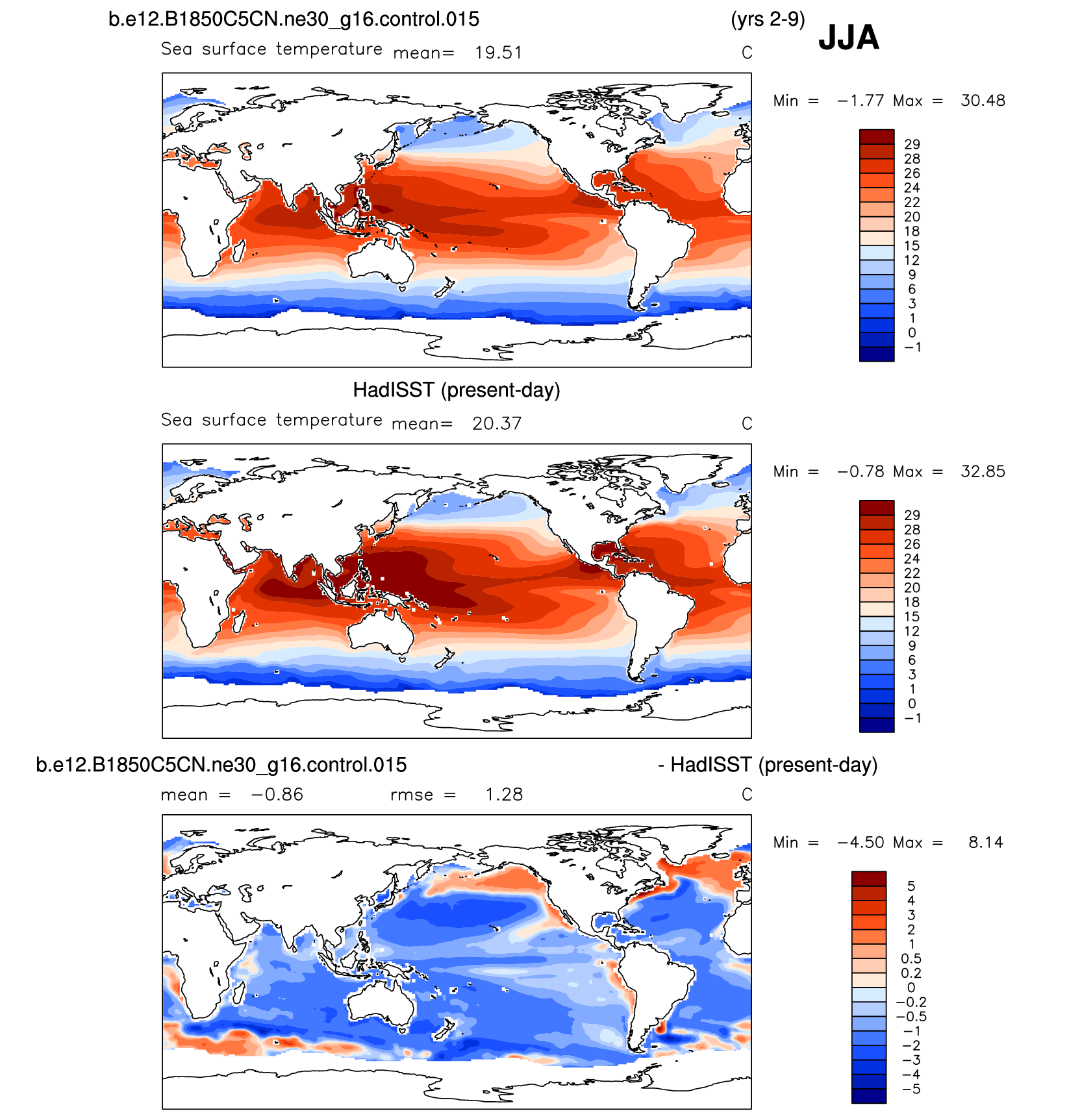 | HadISST/OI.v2 (Present Day) 1999-2008 | DJF | JJA | ANN | |