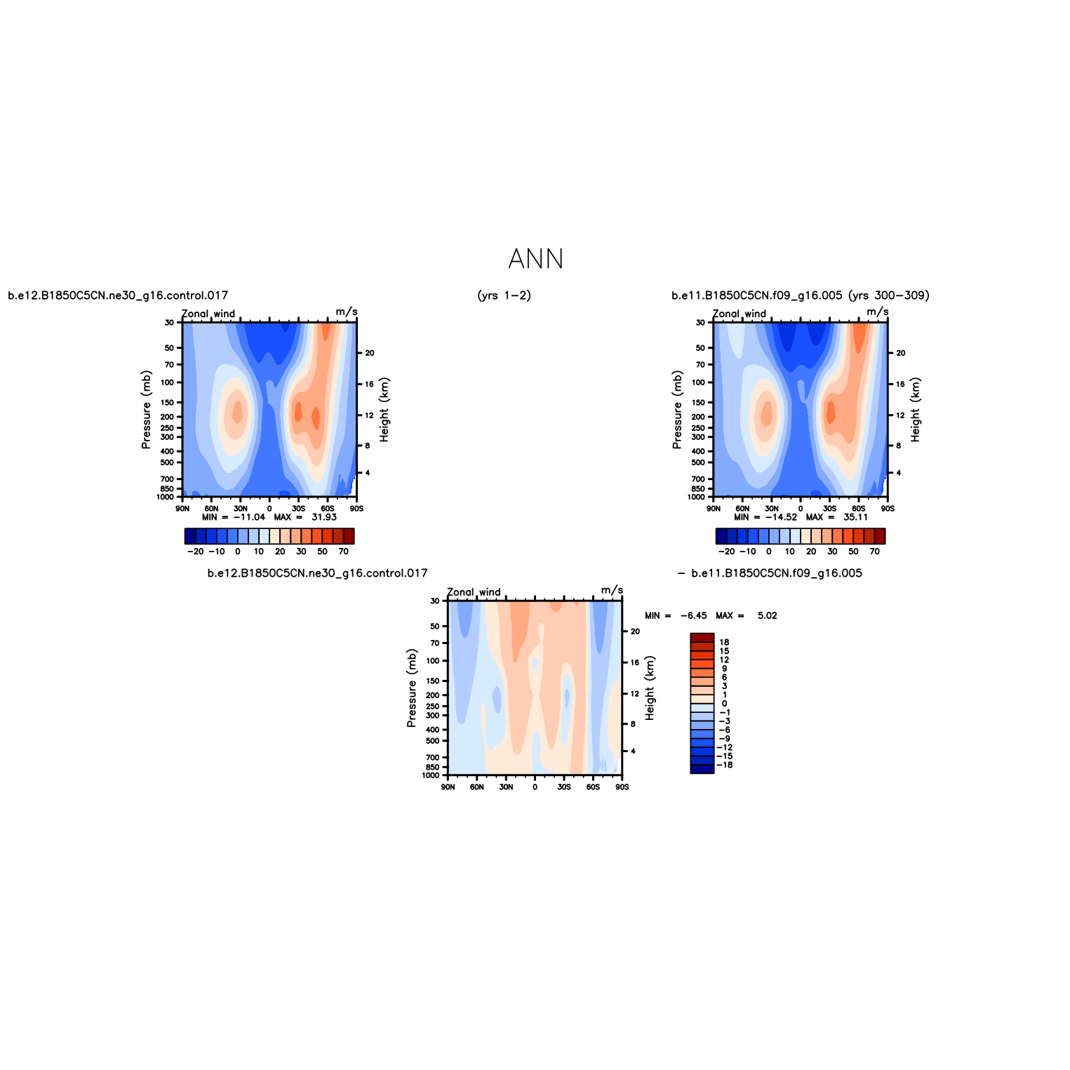 DIAG Set 4 - Vertical contour plots of DJF, MAM, JJA, SON and ANN zonal means
