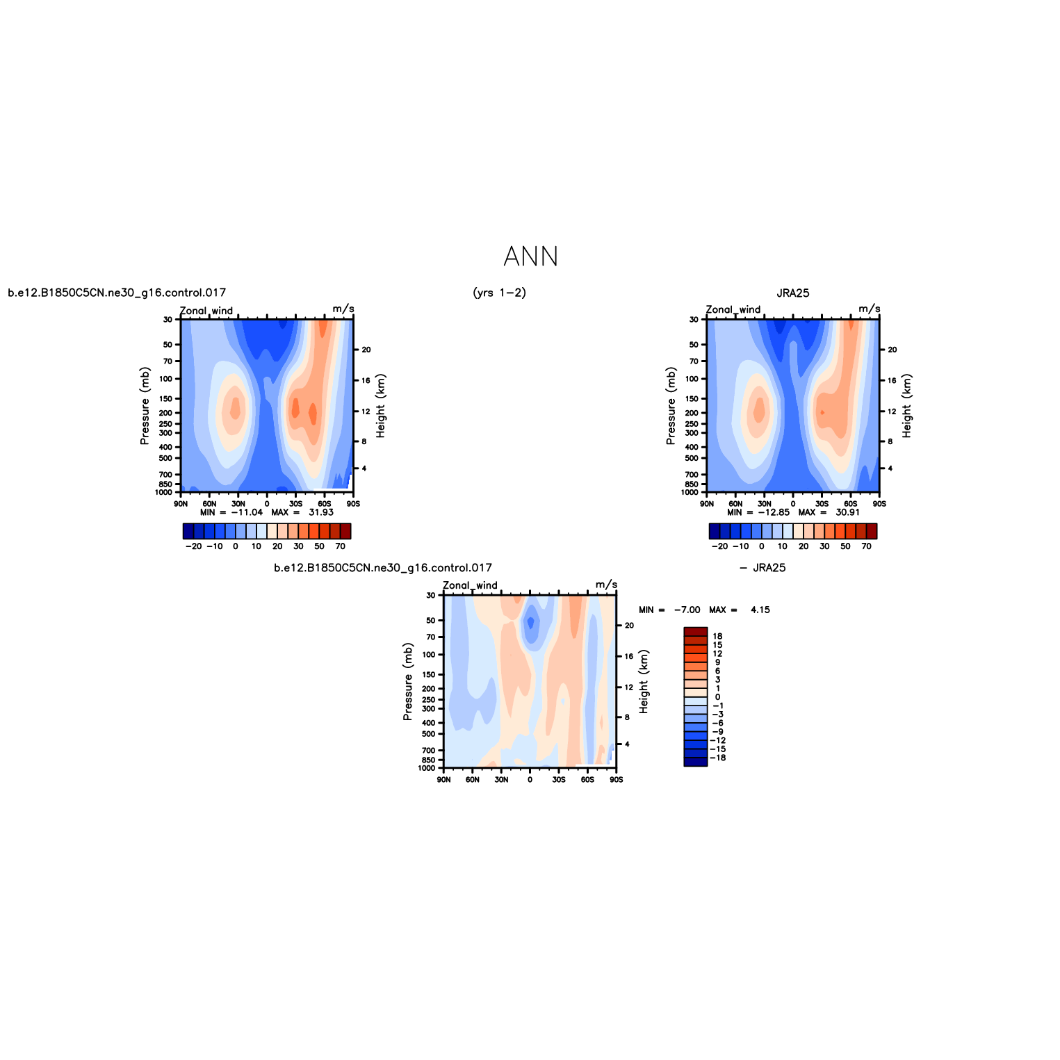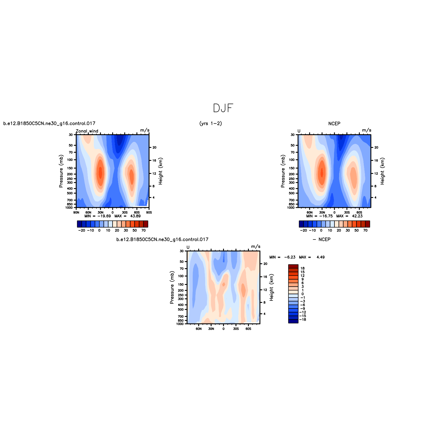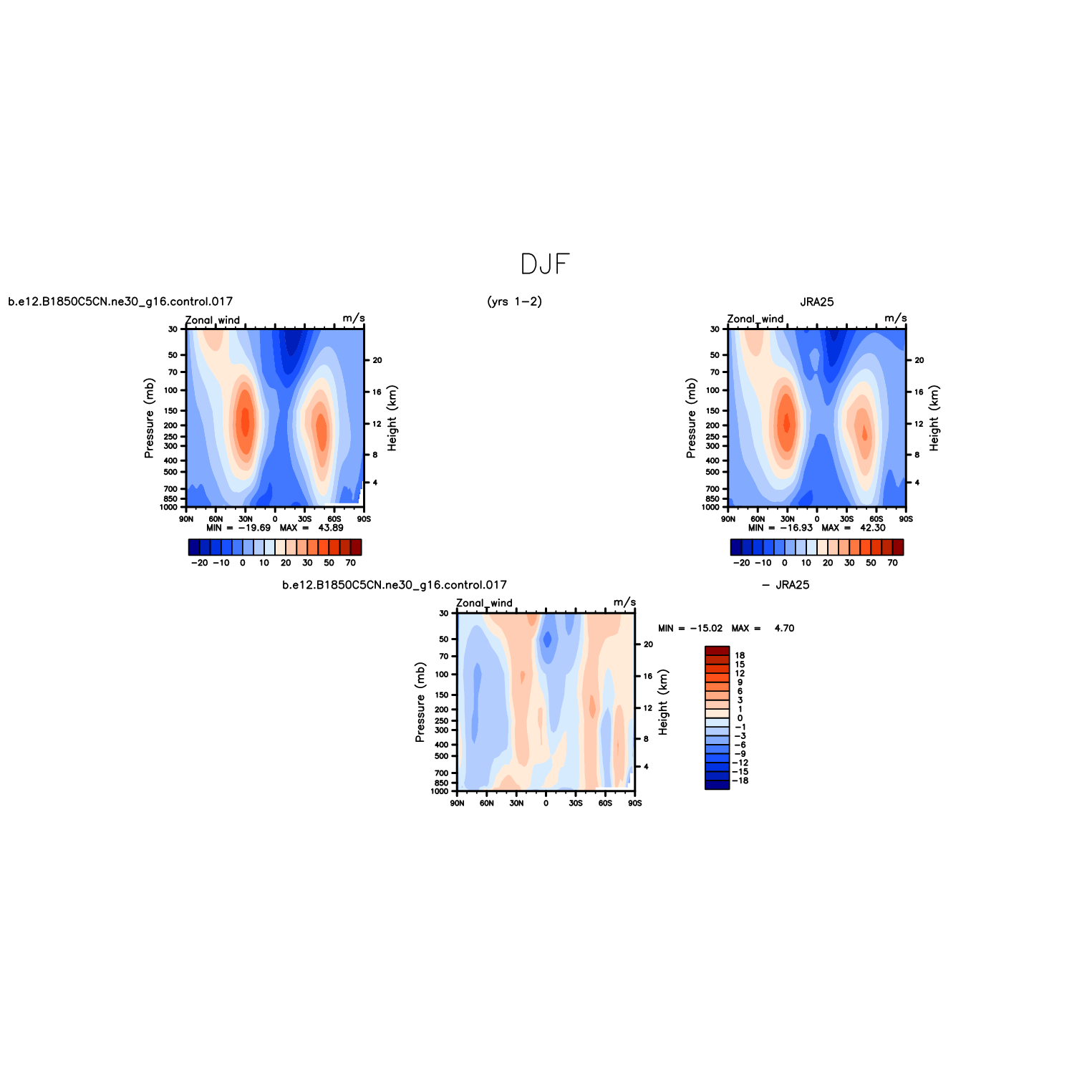 DIAG Set 4 - Vertical contour plots of DJF, JJA and ANN zonal means