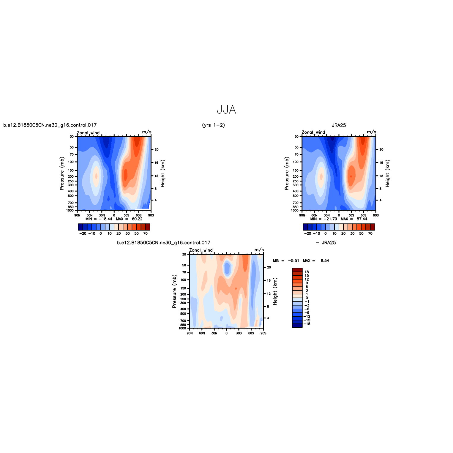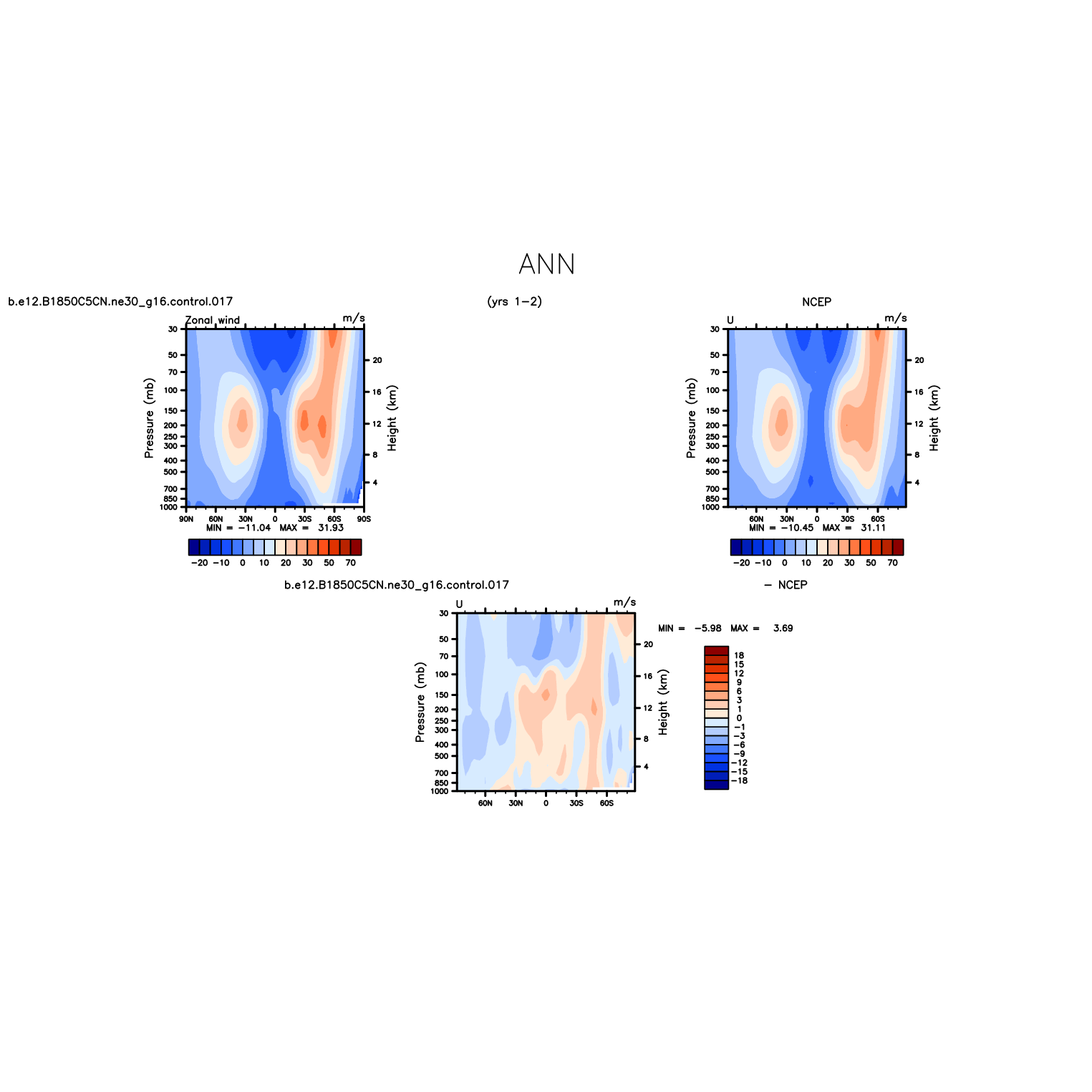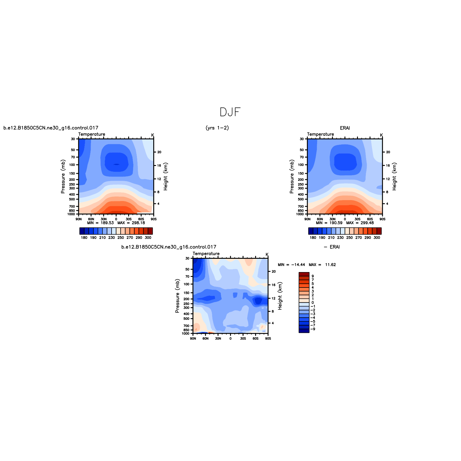 DIAG Set 4 - Vertical contour plots of DJF, JJA and ANN zonal means