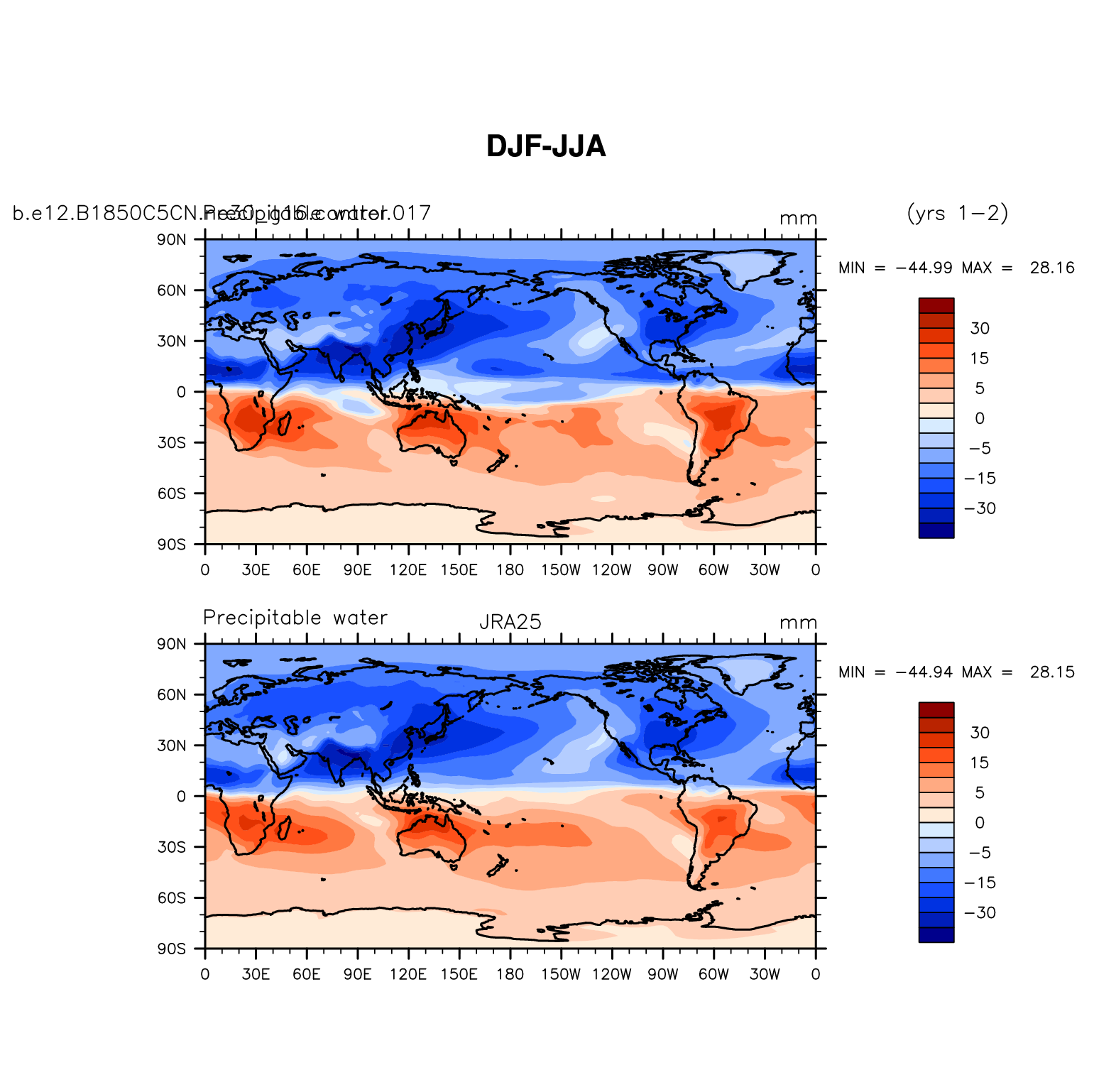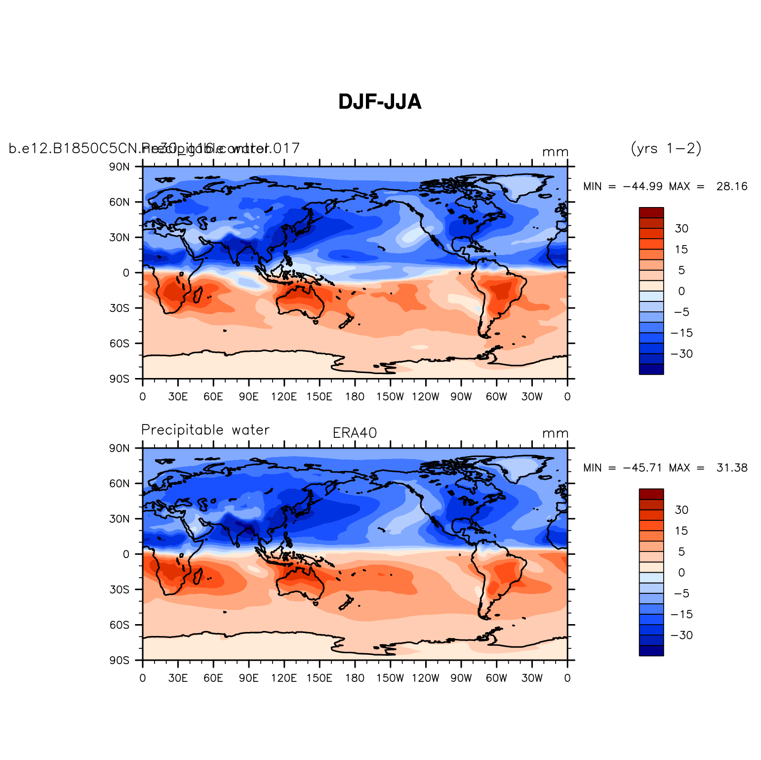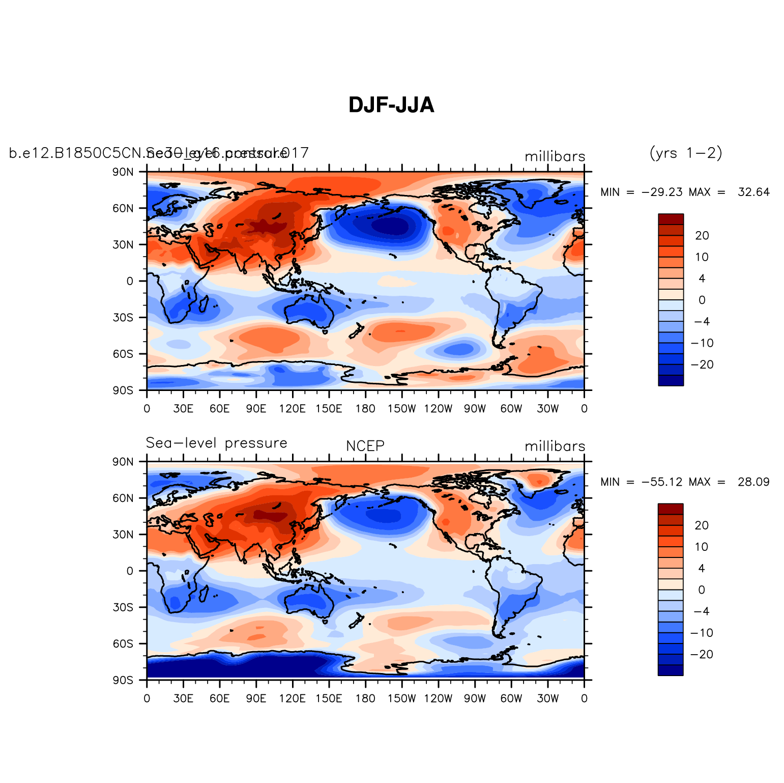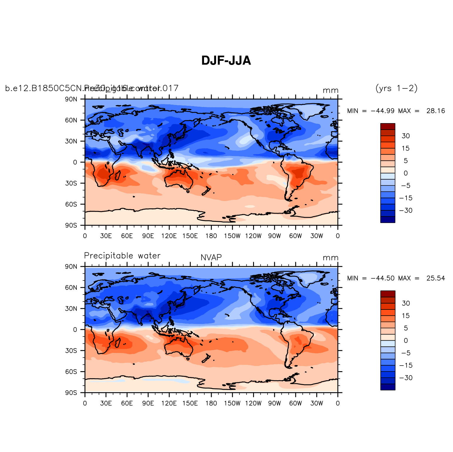 b.e12.B1850C5CN.ne30_g16.control.017 DIAG Set 9 - Horizontal contour plots of DJF-JJA differences
