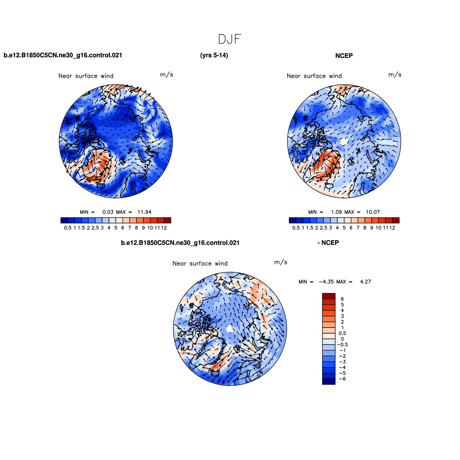 b.e12.B1850C5CN.ne30_g16.control.021 DIAG Set 7 - Polar contour/vector plots of DJF, JJA and ANN means