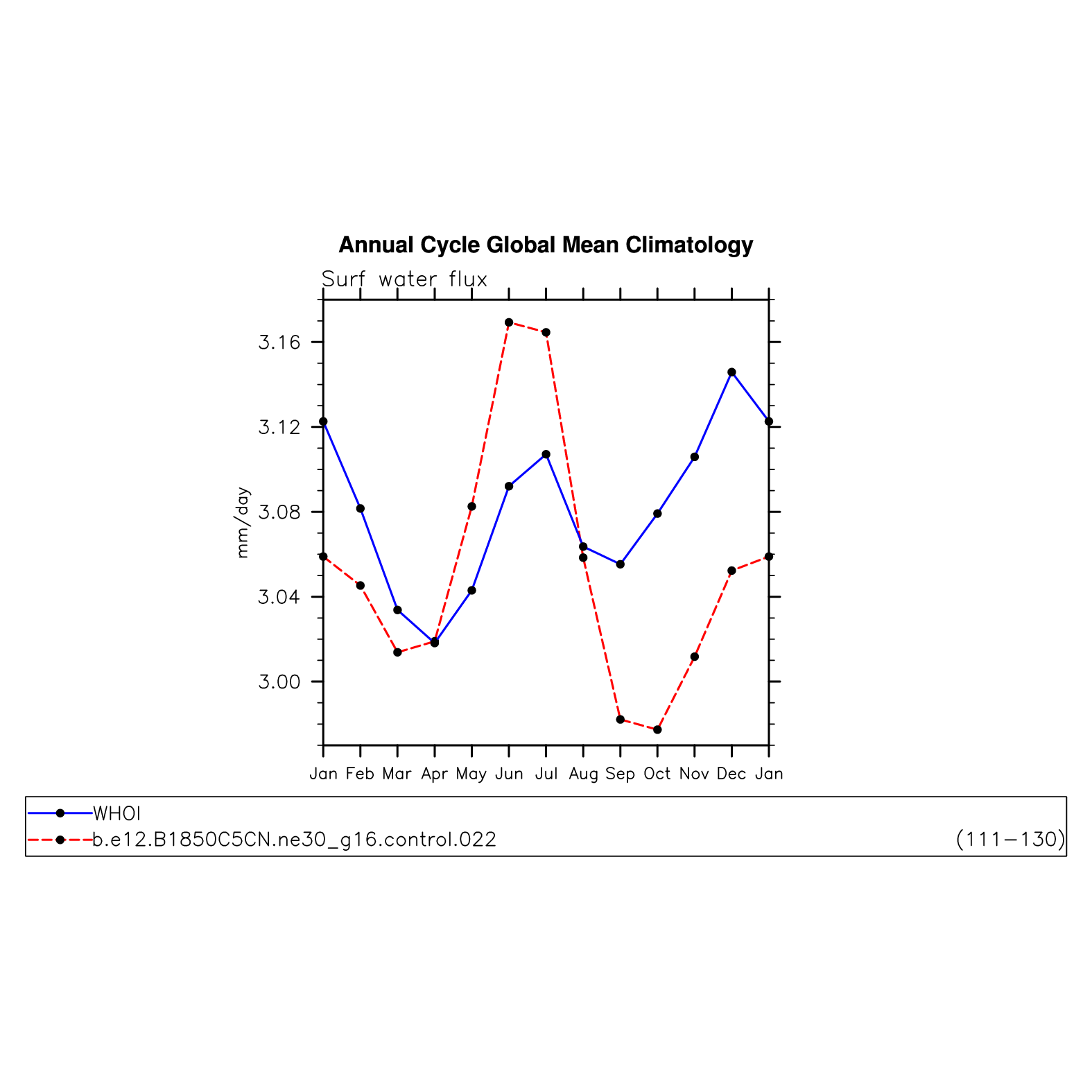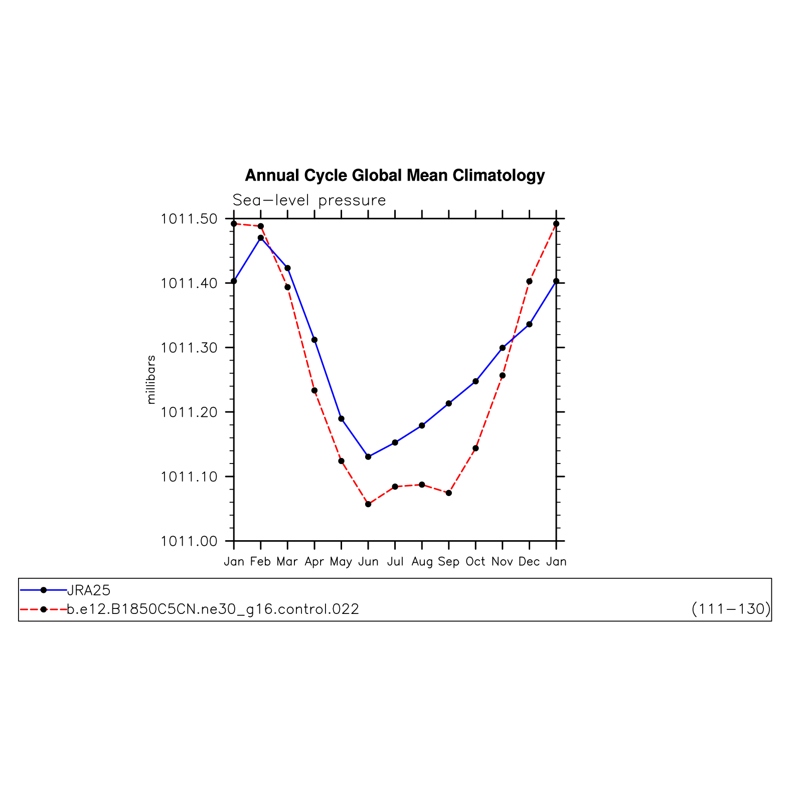 DIAG Set 10 - Annual cycle line plots of global means