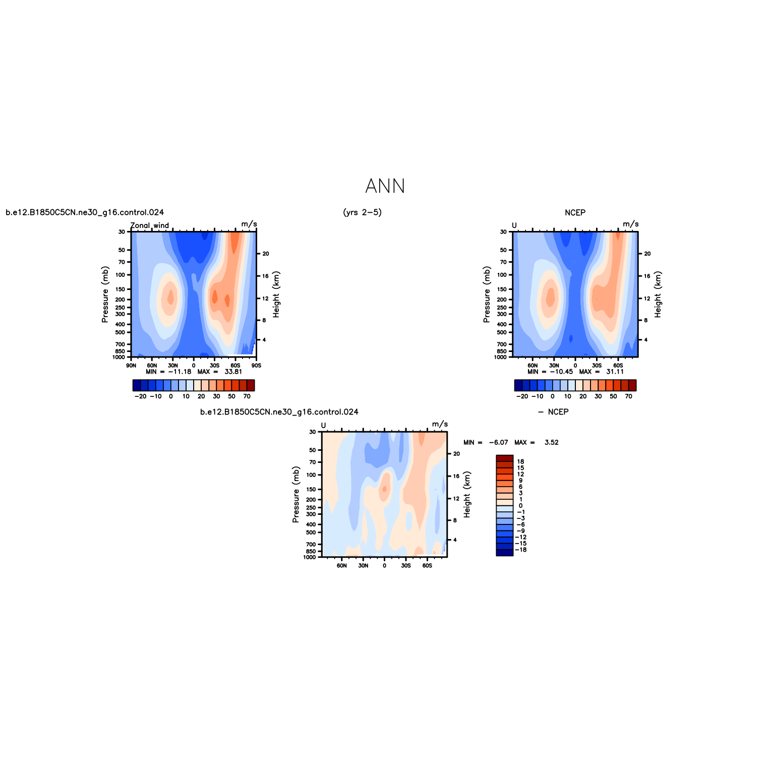 DIAG Set 4 - Vertical contour plots of DJF, JJA and ANN zonal means
