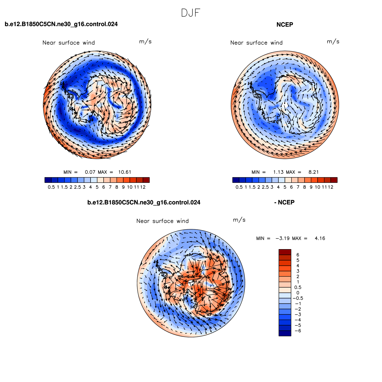 b.e12.B1850C5CN.ne30_g16.control.024 DIAG Set 7 - Polar contour/vector plots of DJF, JJA and ANN means
