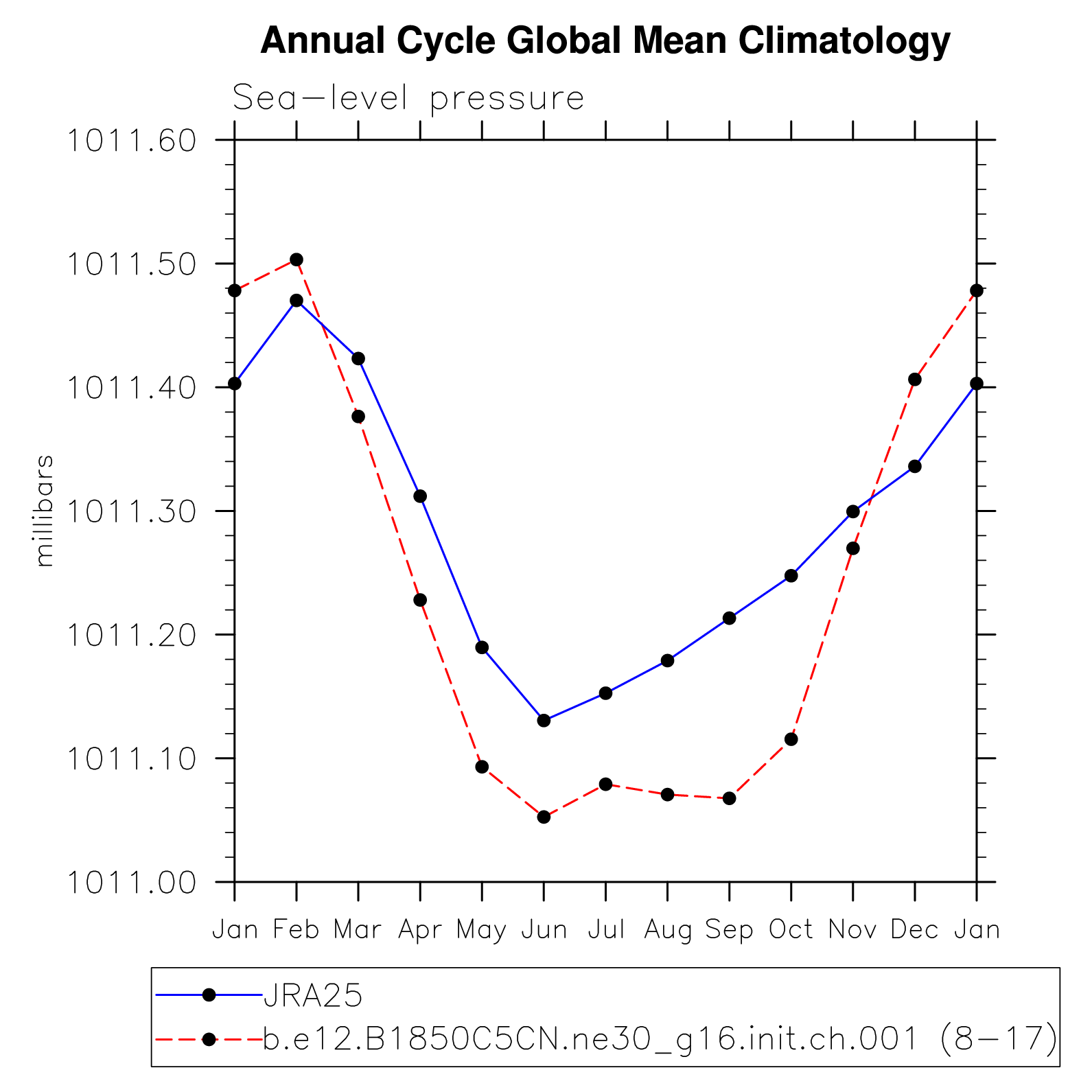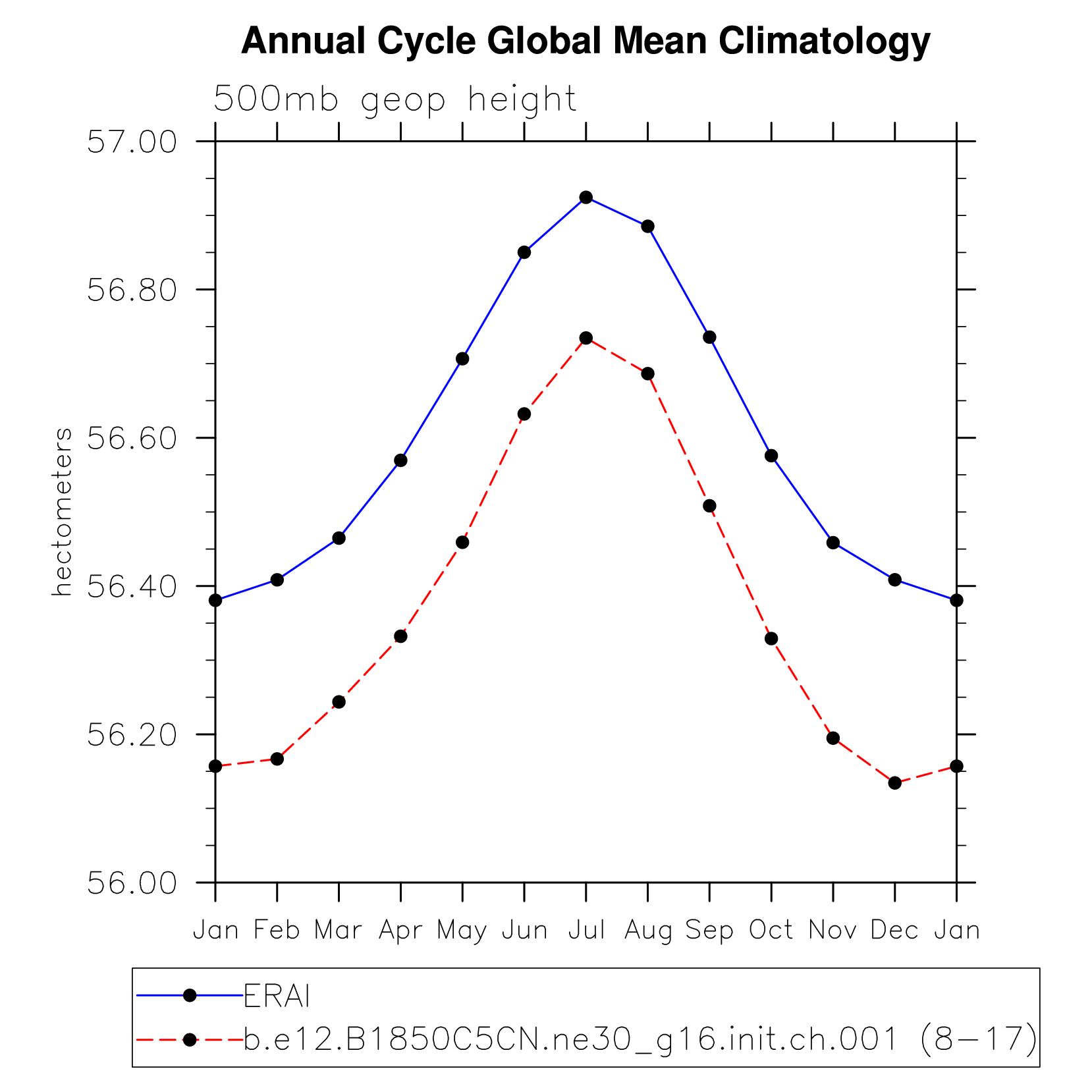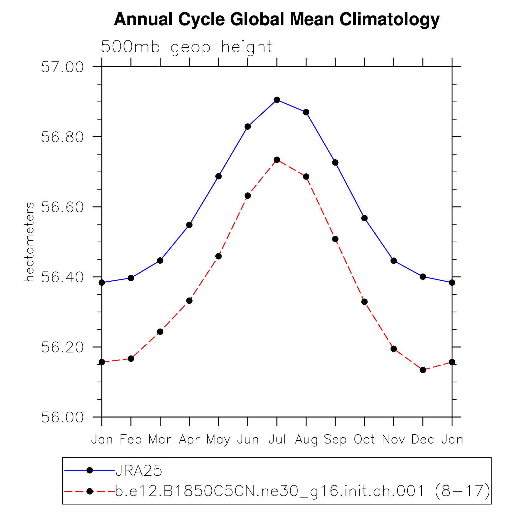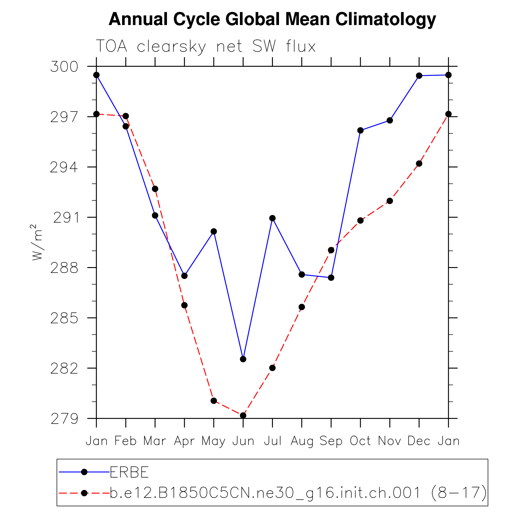 DIAG Set 10 - Annual cycle line plots of global means