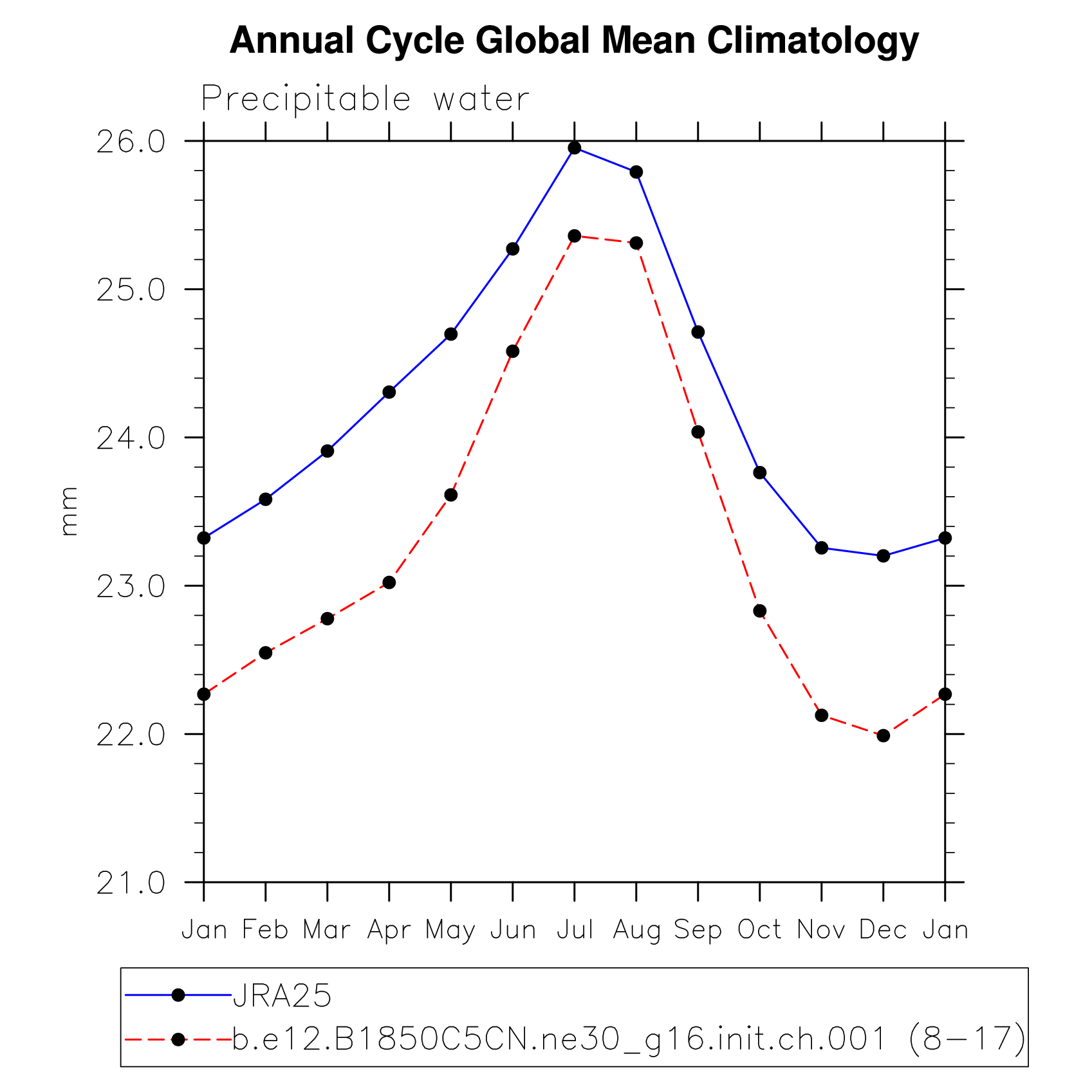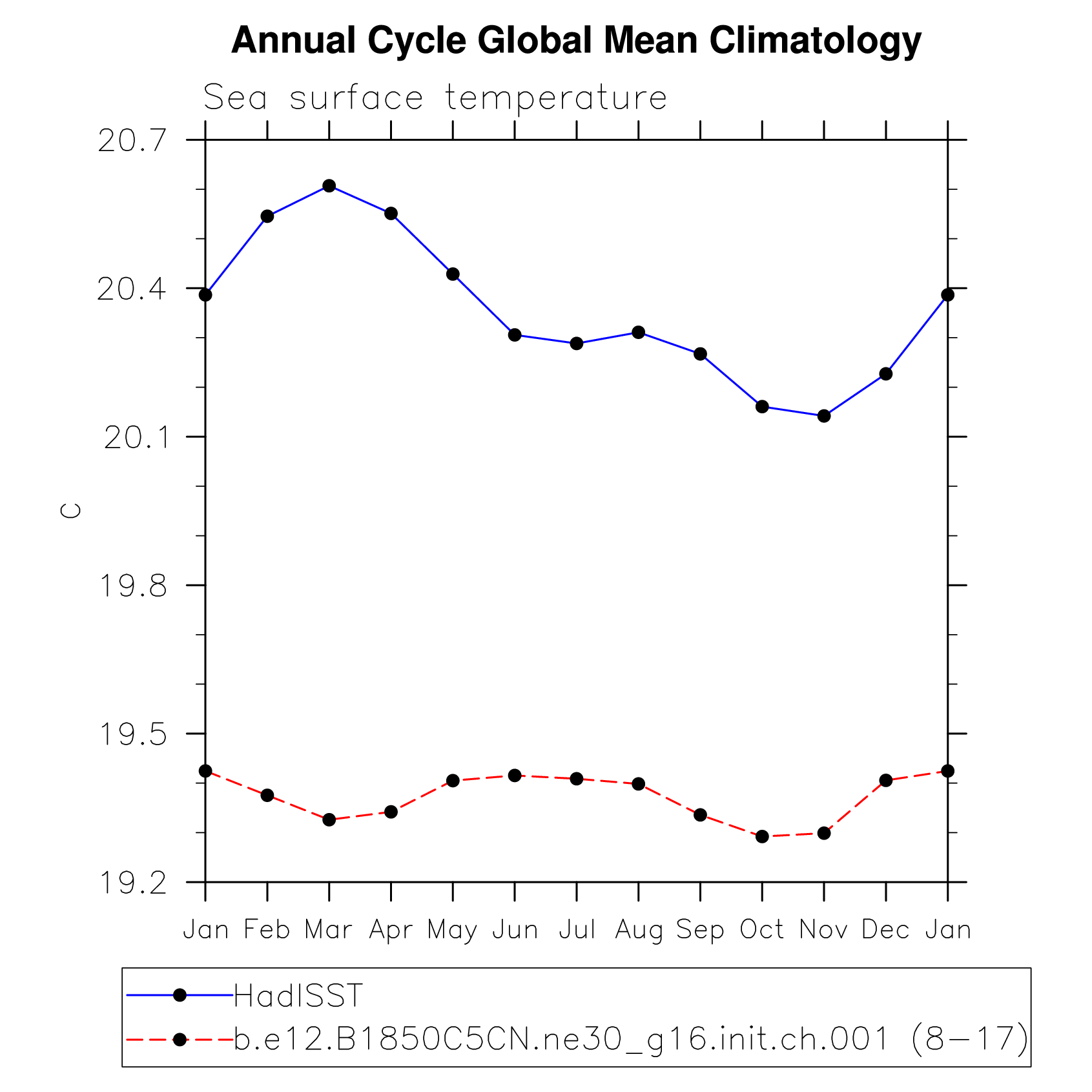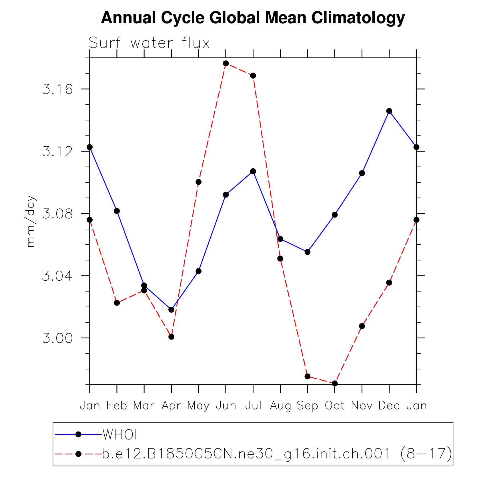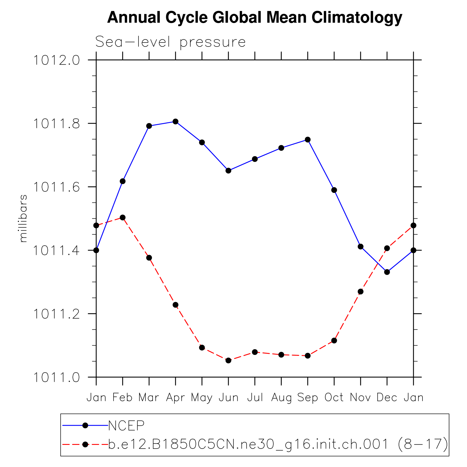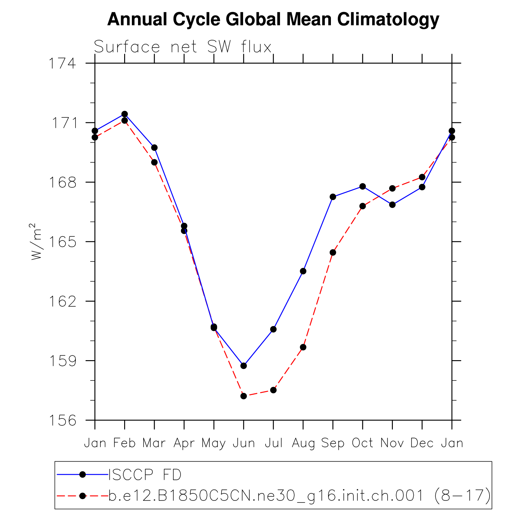 DIAG Set 10 - Annual cycle line plots of global means