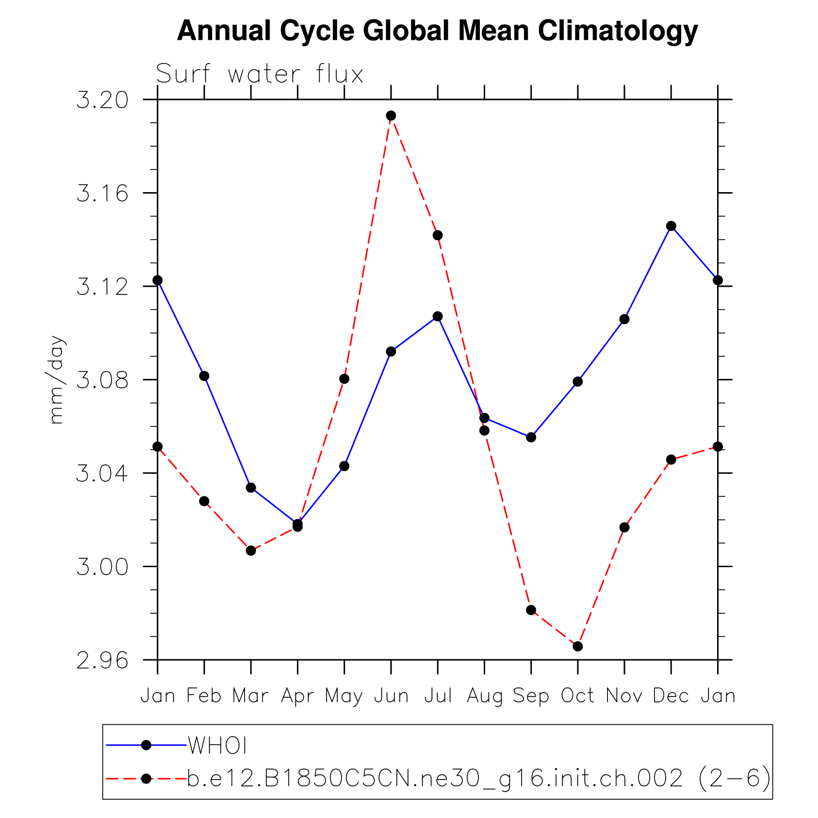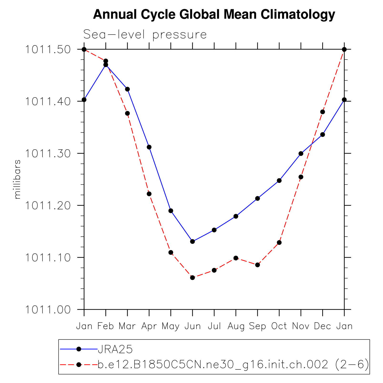 DIAG Set 10 - Annual cycle line plots of global means