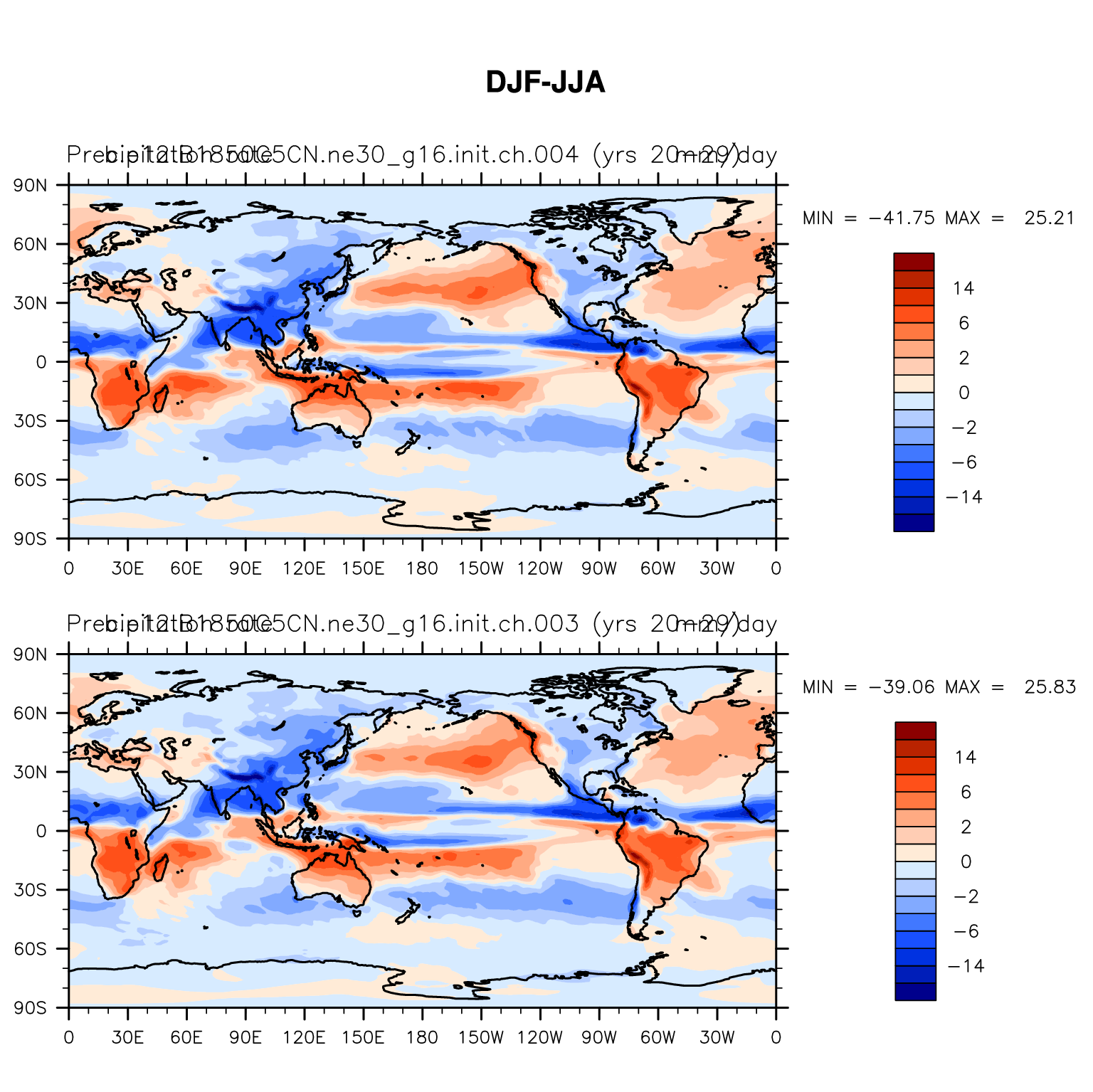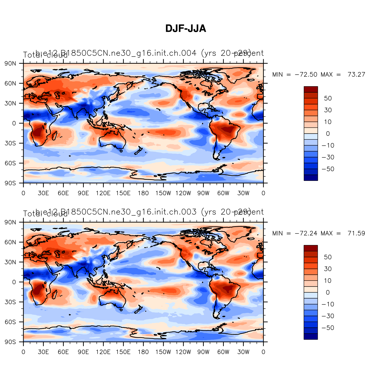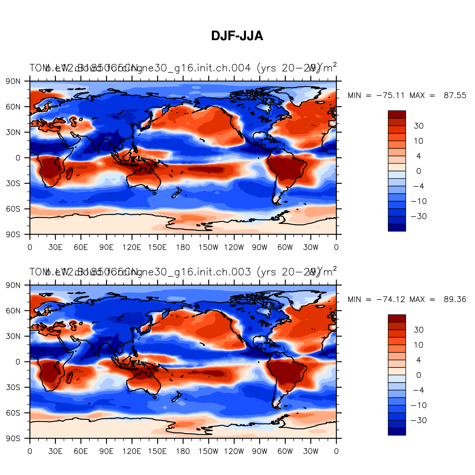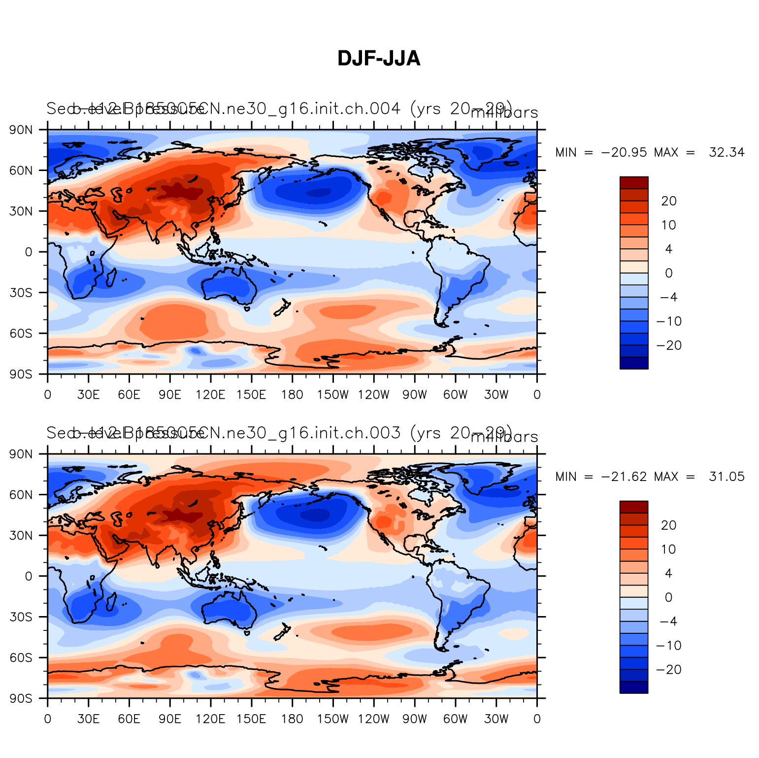 DIAG Set 9 - Horizontal contour plots of DJF-JJA differences
