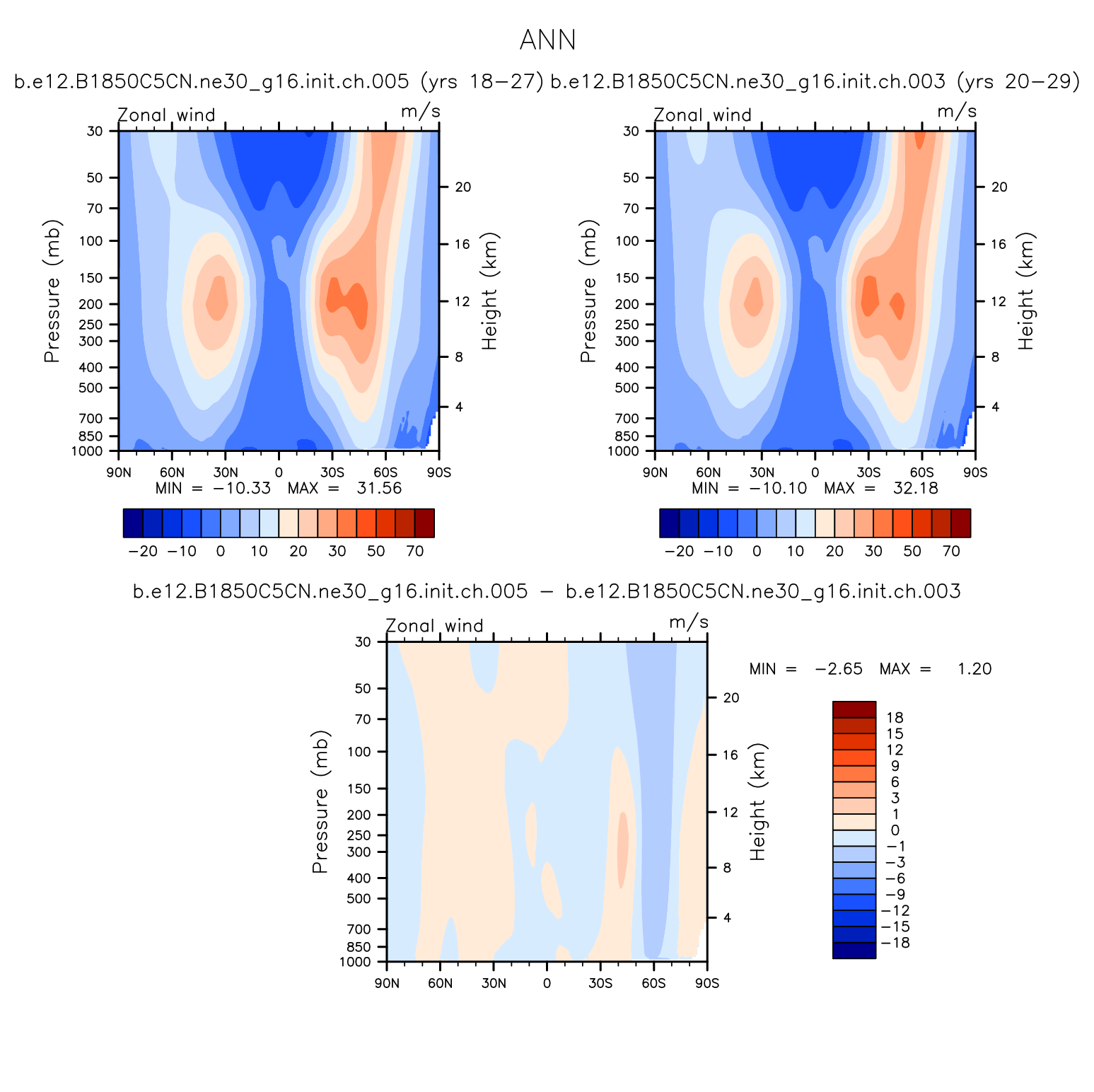 DIAG Set 4 - Vertical contour plots of DJF, MAM, JJA, SON and ANN zonal means