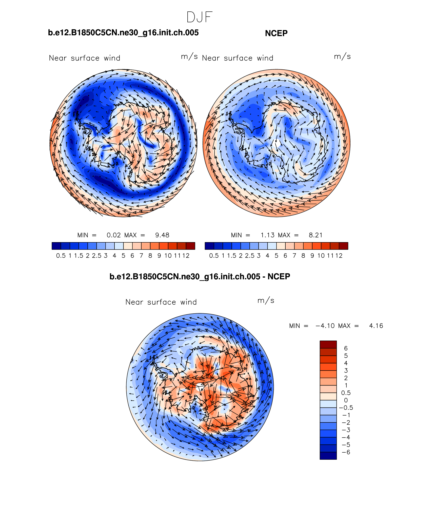b.e12.B1850C5CN.ne30_g16.init.ch.005 DIAG Set 7 - Polar contour/vector plots of DJF, JJA and ANN means