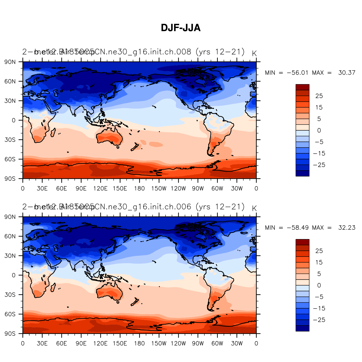 DIAG Set 9 - Horizontal contour plots of DJF-JJA differences