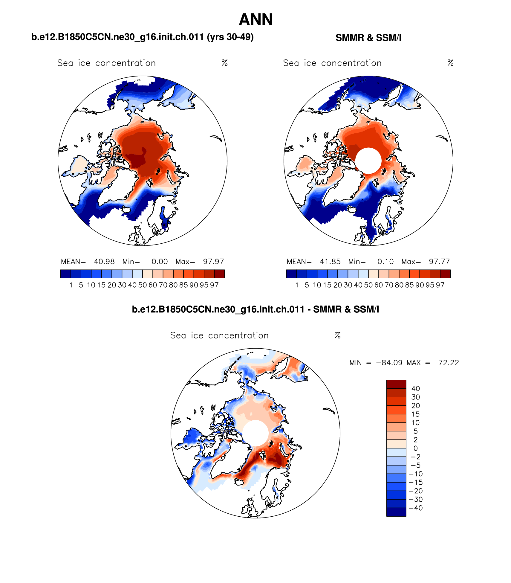 b.e12.B1850C5CN.ne30_g16.init.ch.011 DIAG Set 7 - Polar contour/vector plots of DJF, JJA and ANN means