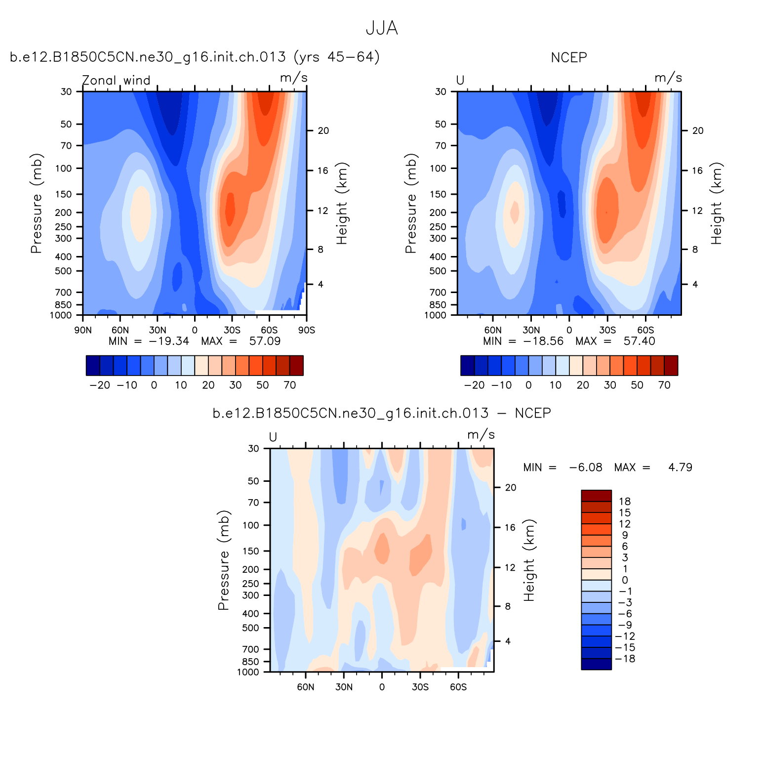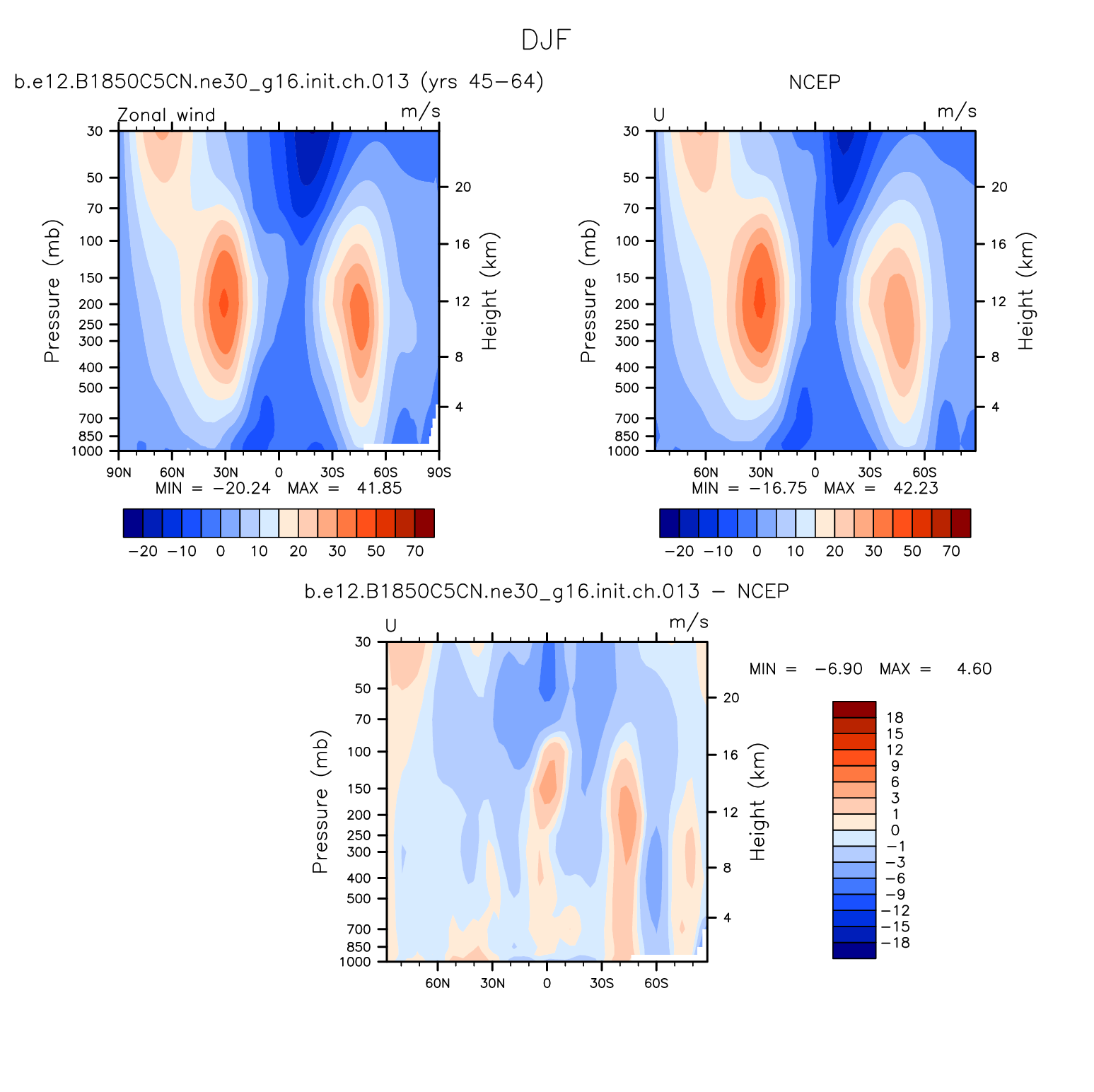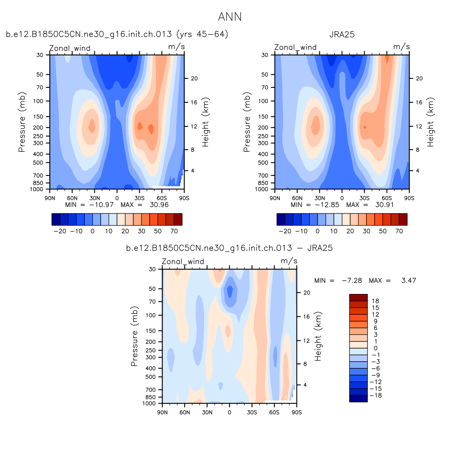 DIAG Set 4 - Vertical contour plots of DJF, JJA and ANN zonal means