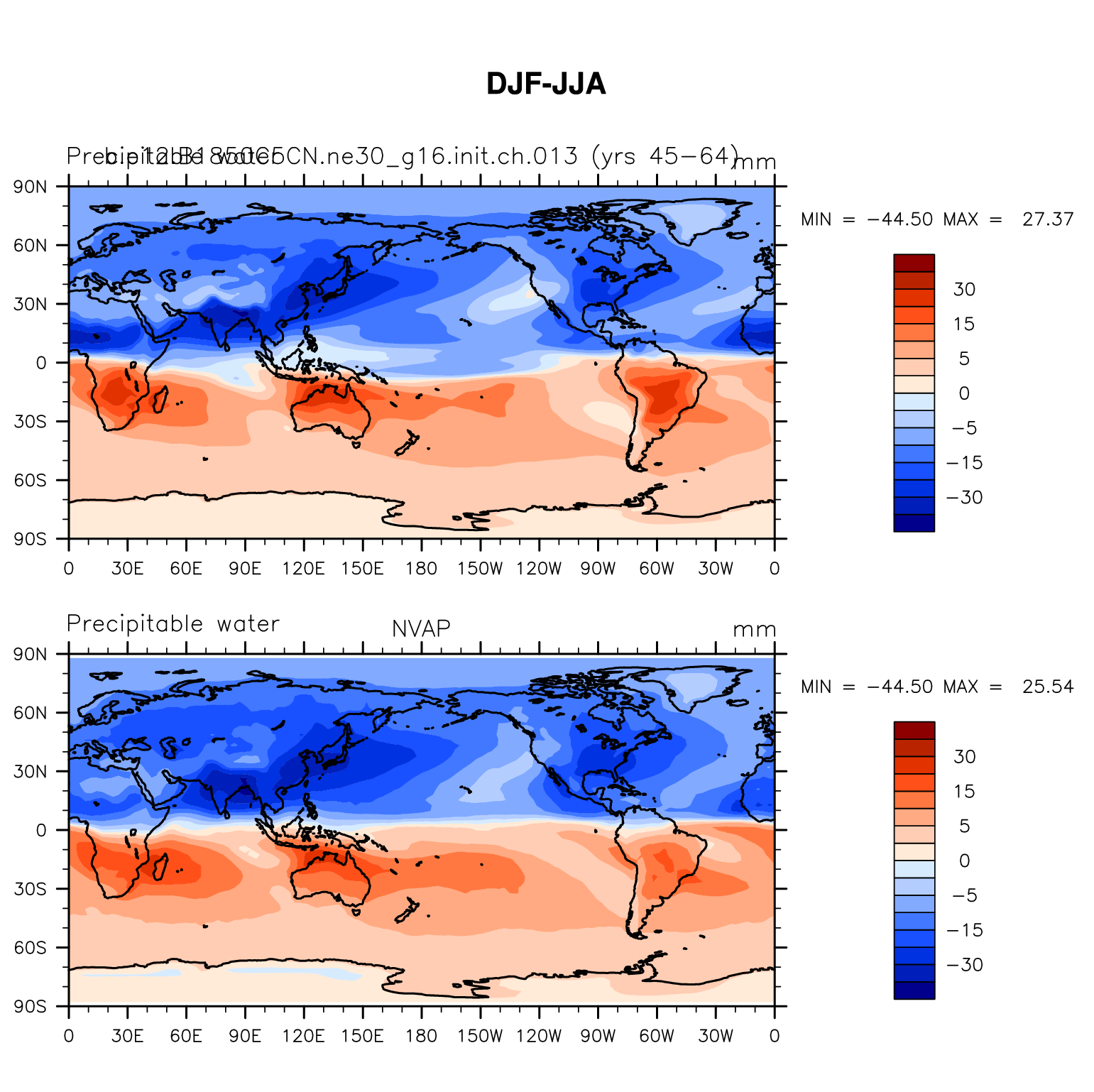b.e12.B1850C5CN.ne30_g16.init.ch.013 DIAG Set 9 - Horizontal contour plots of DJF-JJA differences