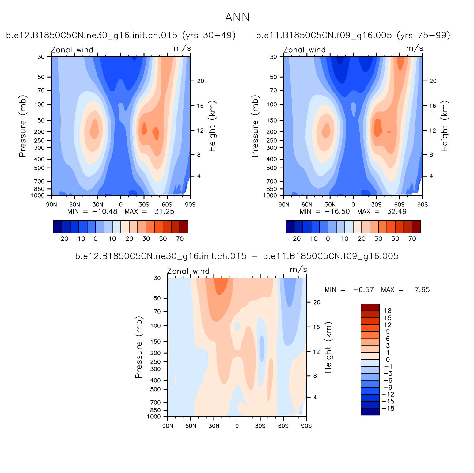 DIAG Set 4 - Vertical contour plots of DJF, MAM, JJA, SON and ANN zonal means