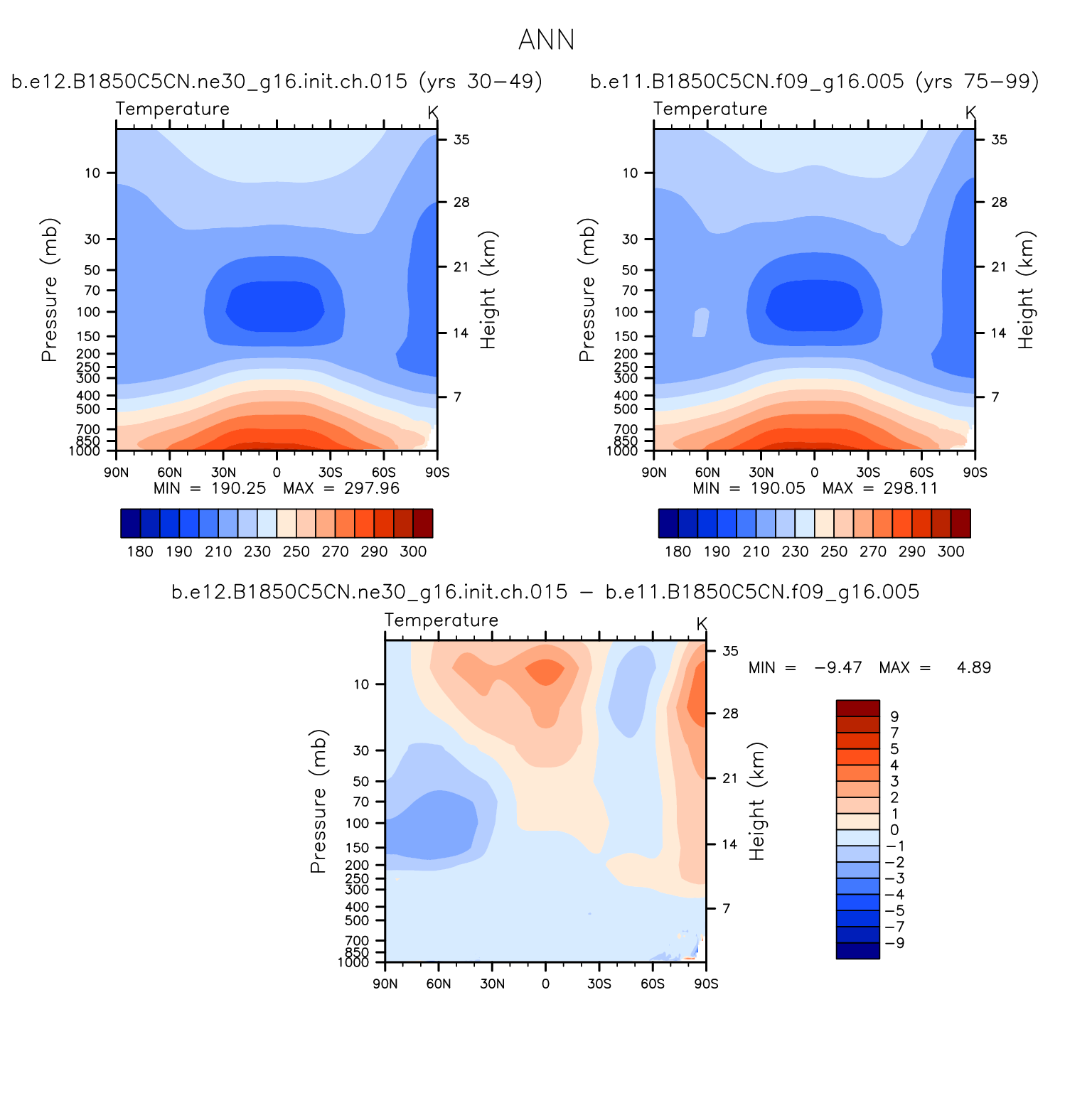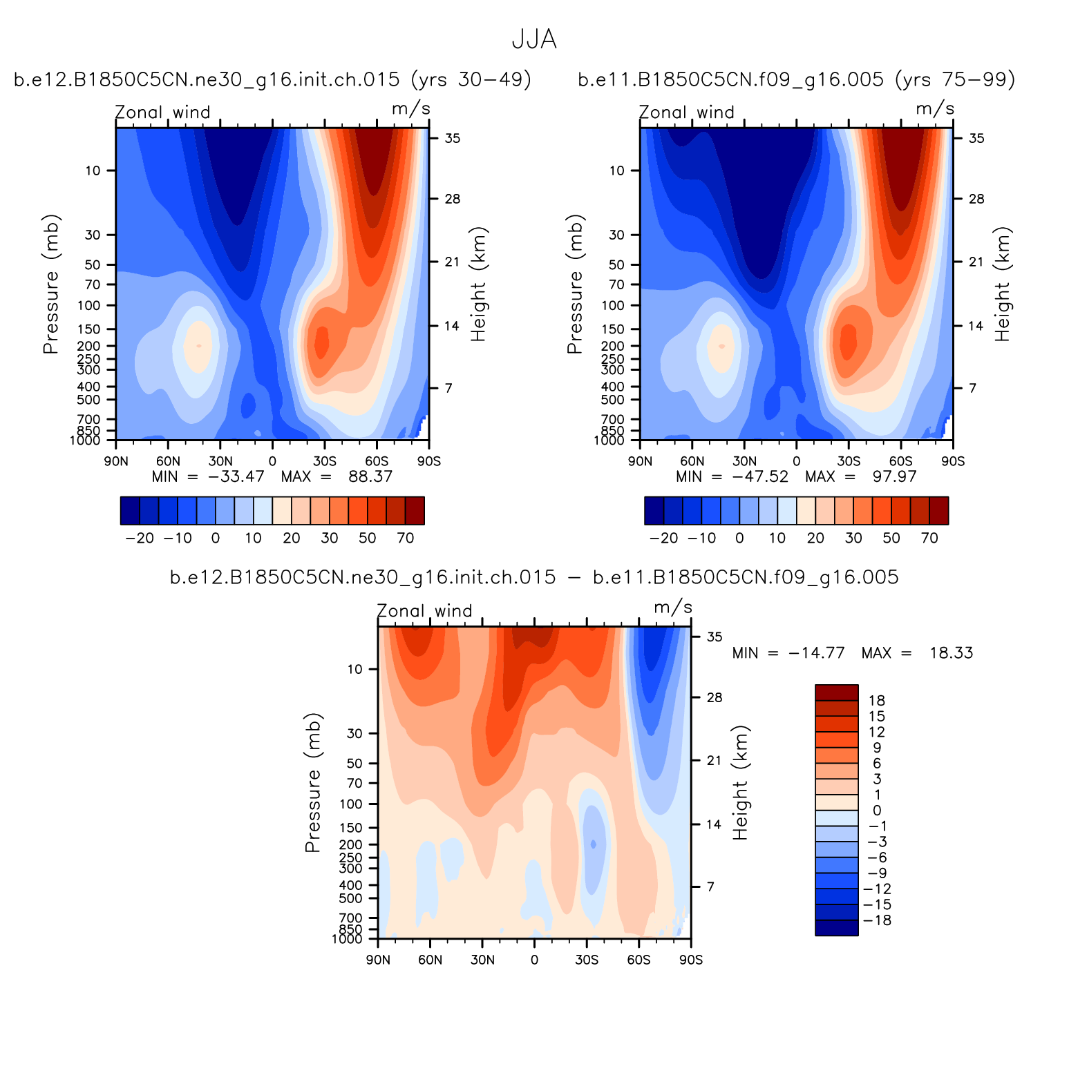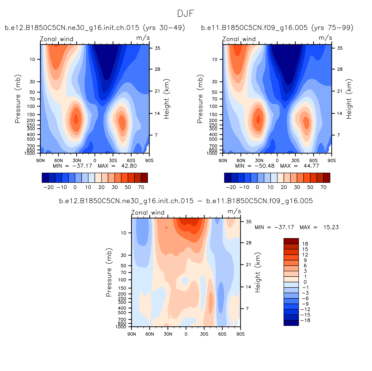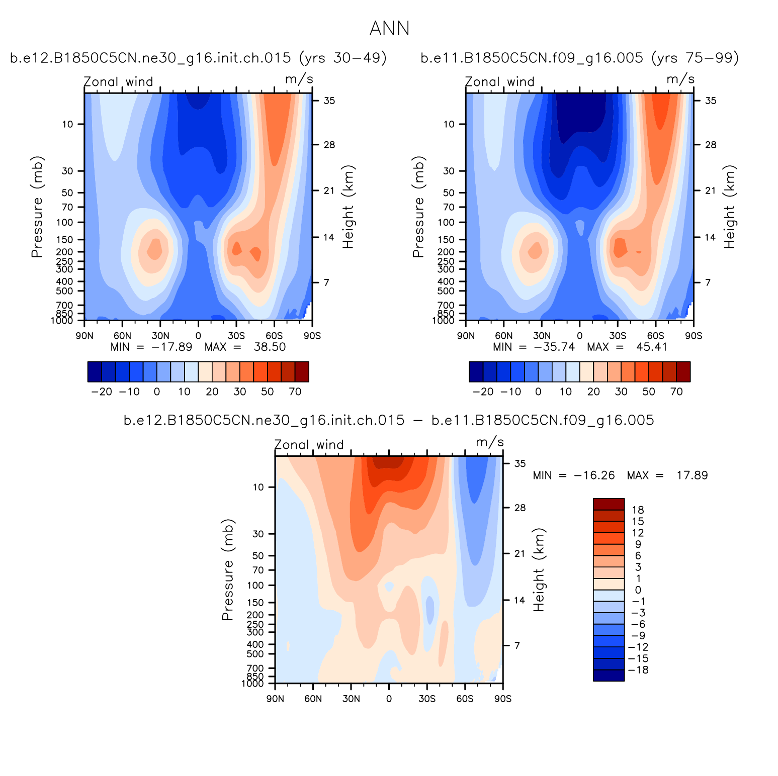 DIAG WACCM Set 1 - Vertical contour plots of DJF, MAM, JJA, SON and ANN zonal means