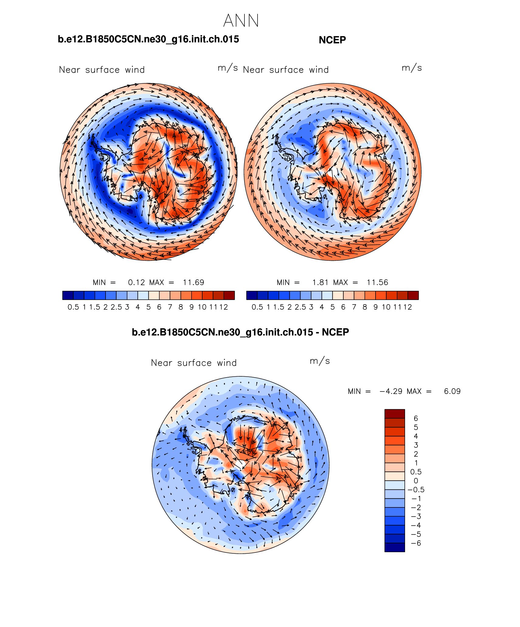 b.e12.B1850C5CN.ne30_g16.init.ch.015 DIAG Set 7 - Polar contour/vector plots of DJF, JJA and ANN means