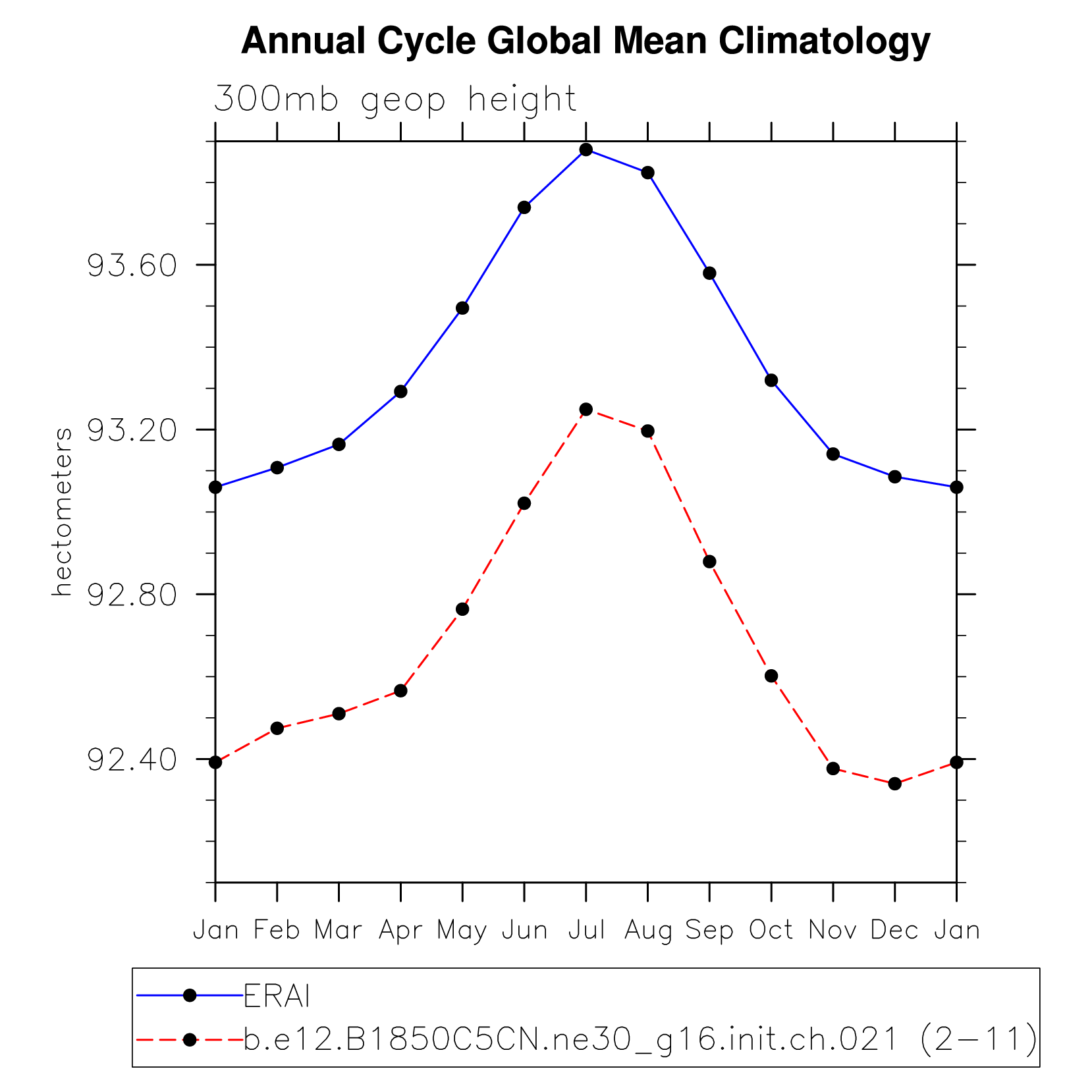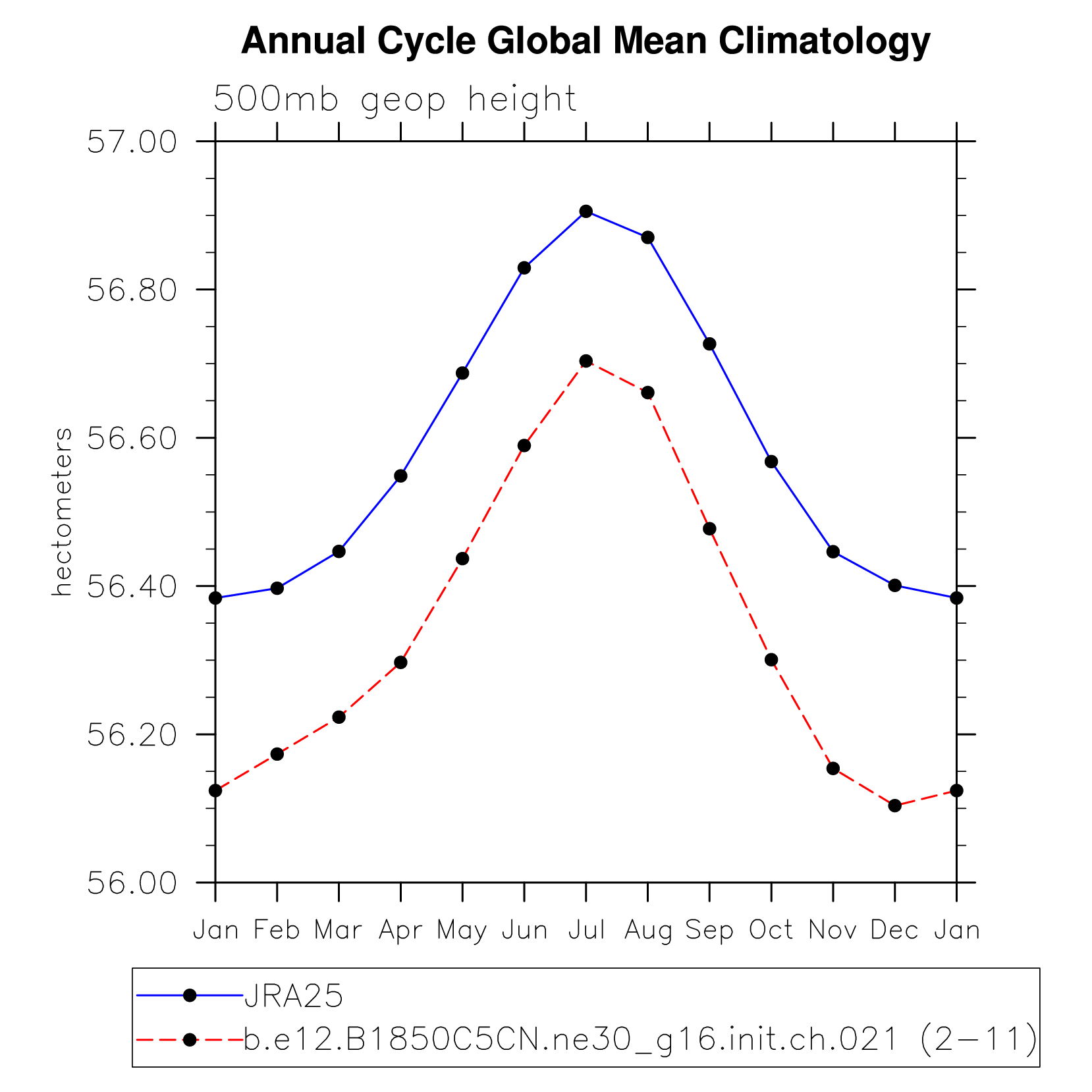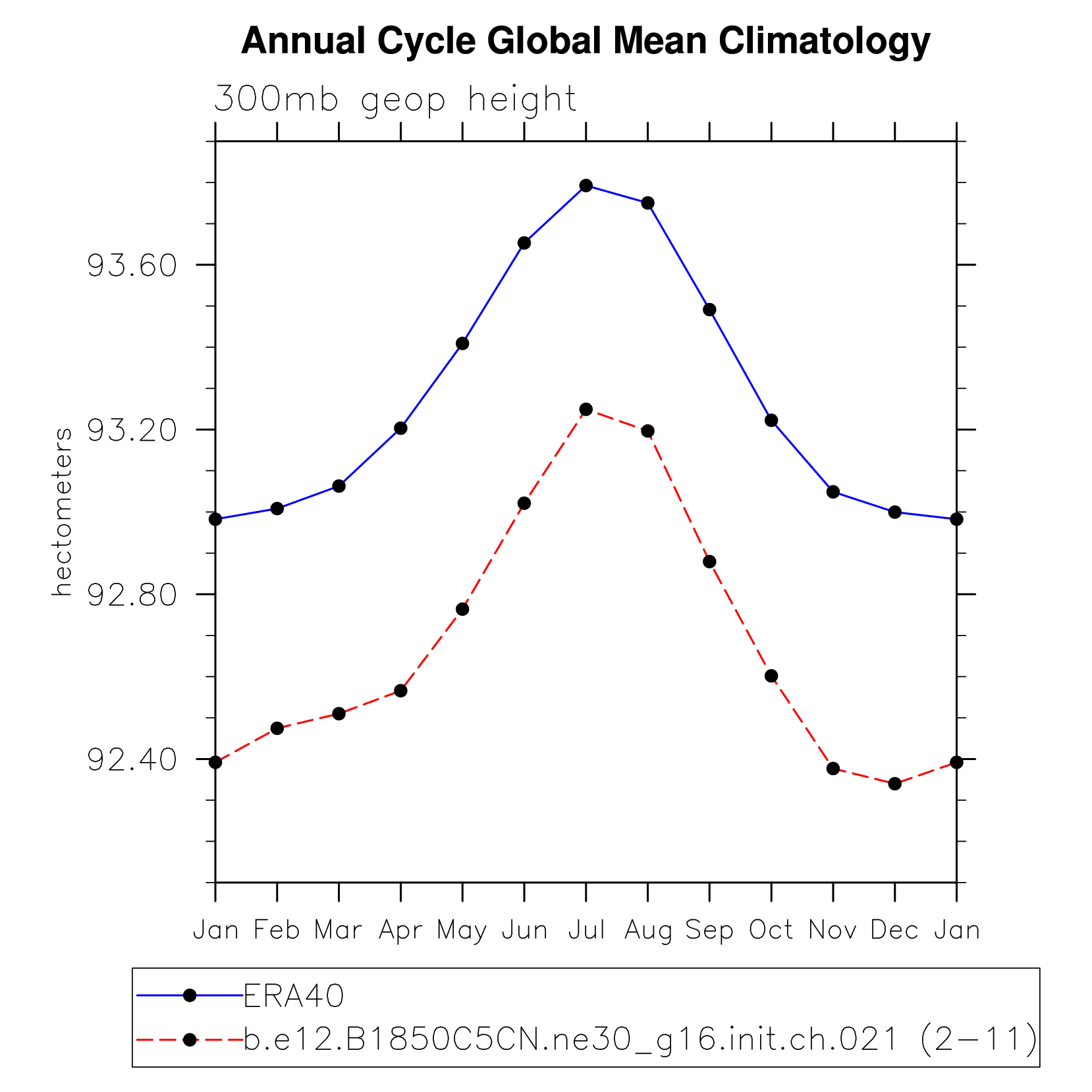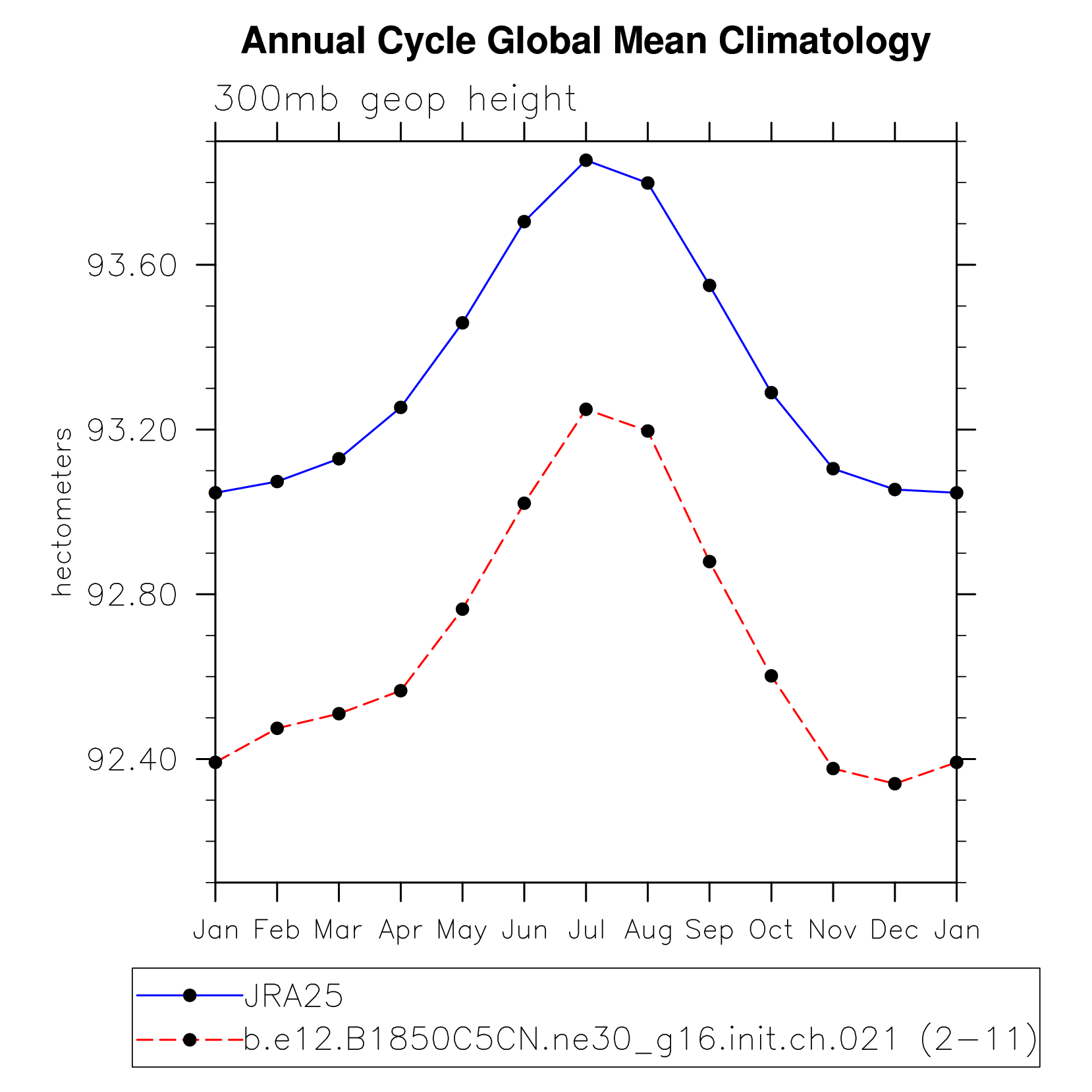 DIAG Set 10 - Annual cycle line plots of global means