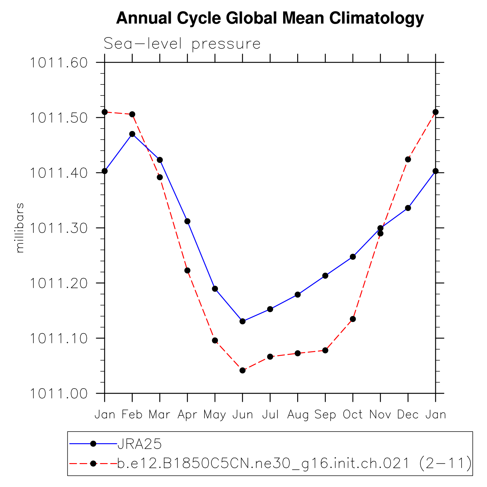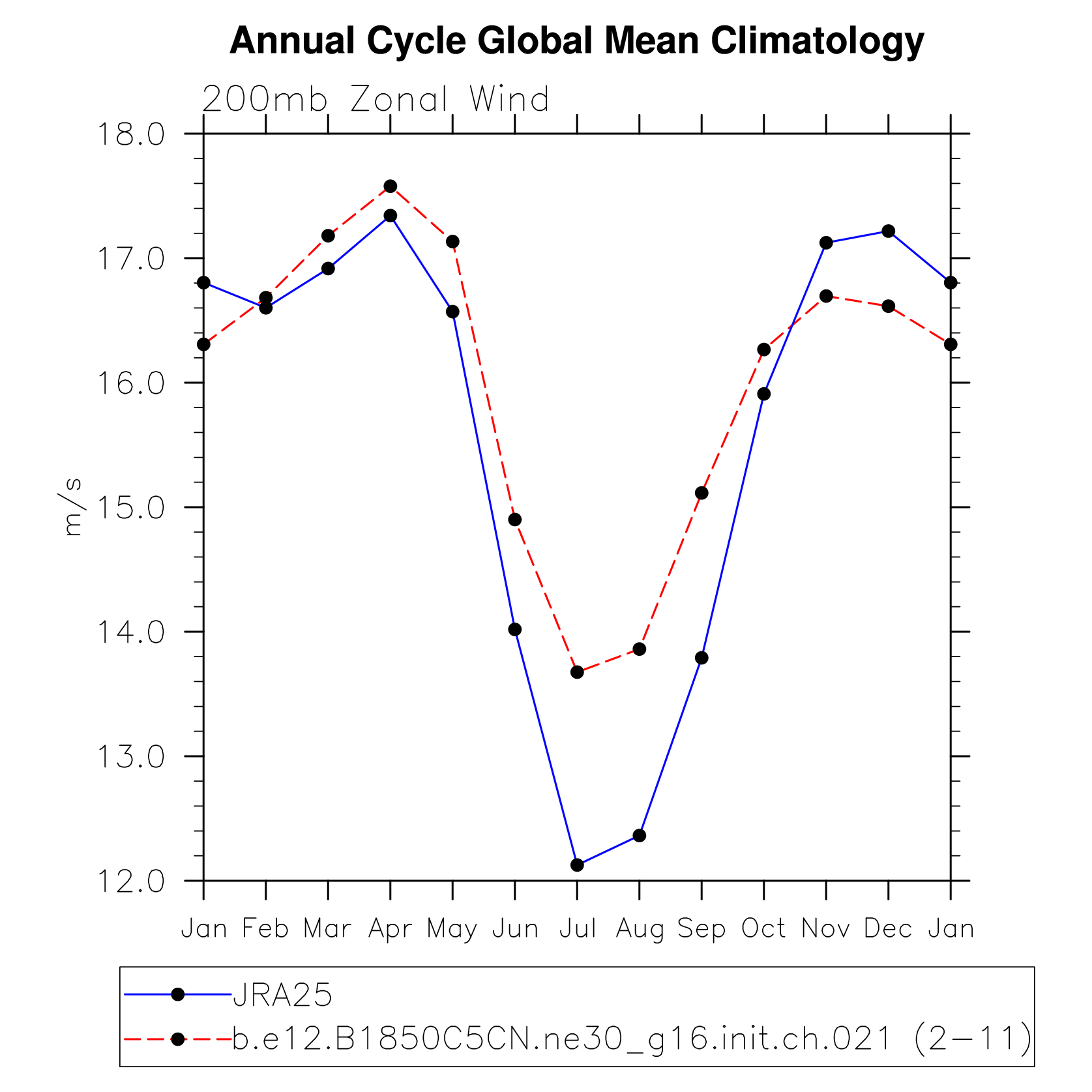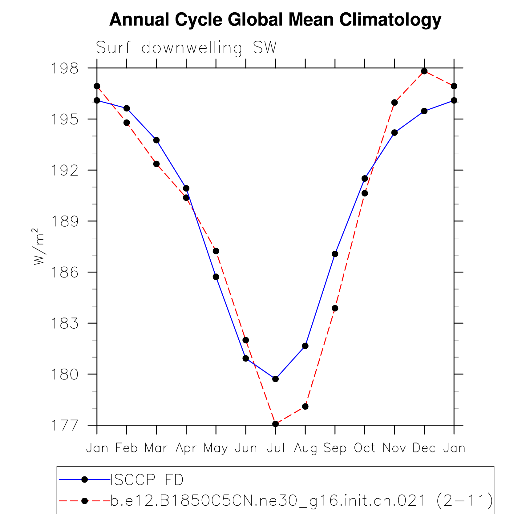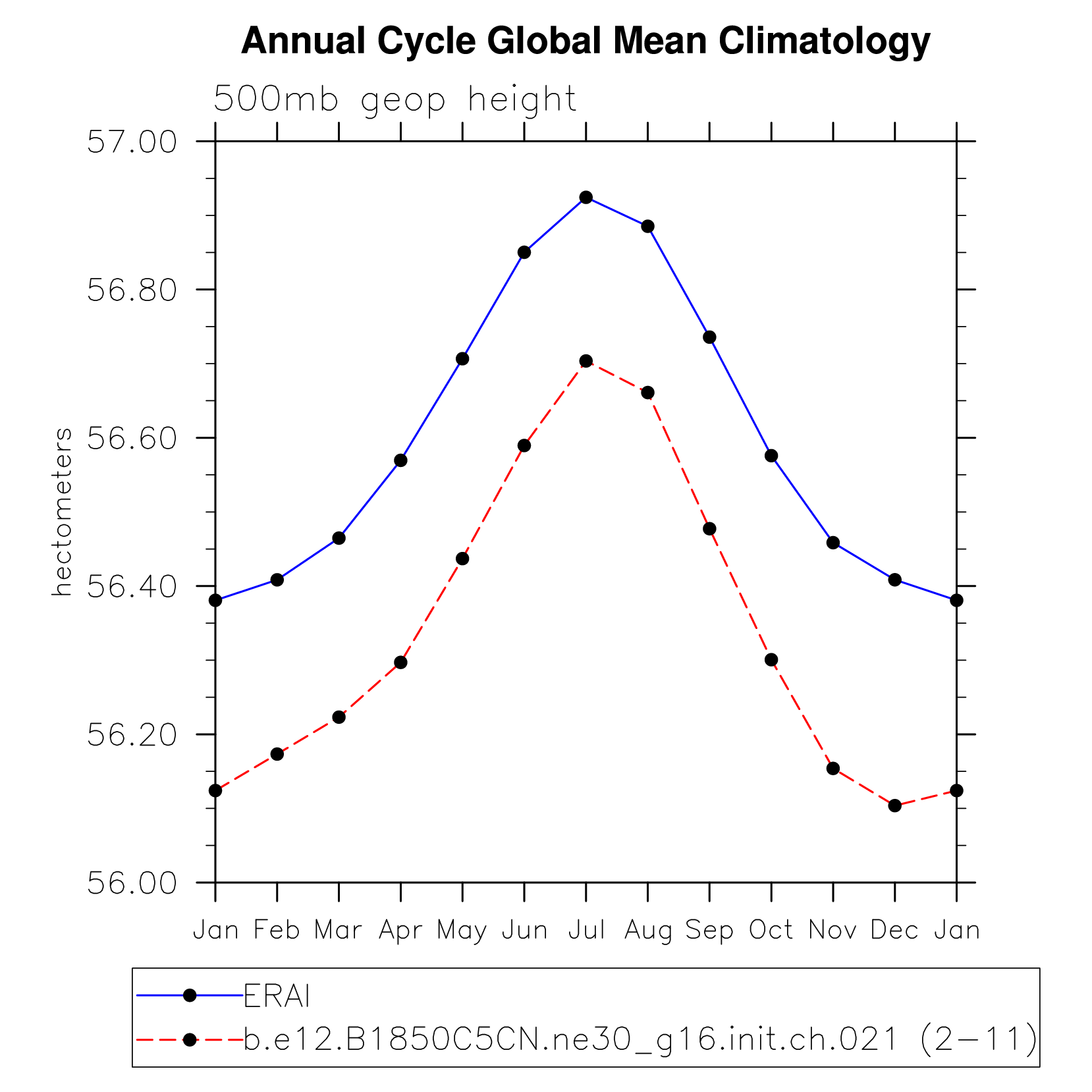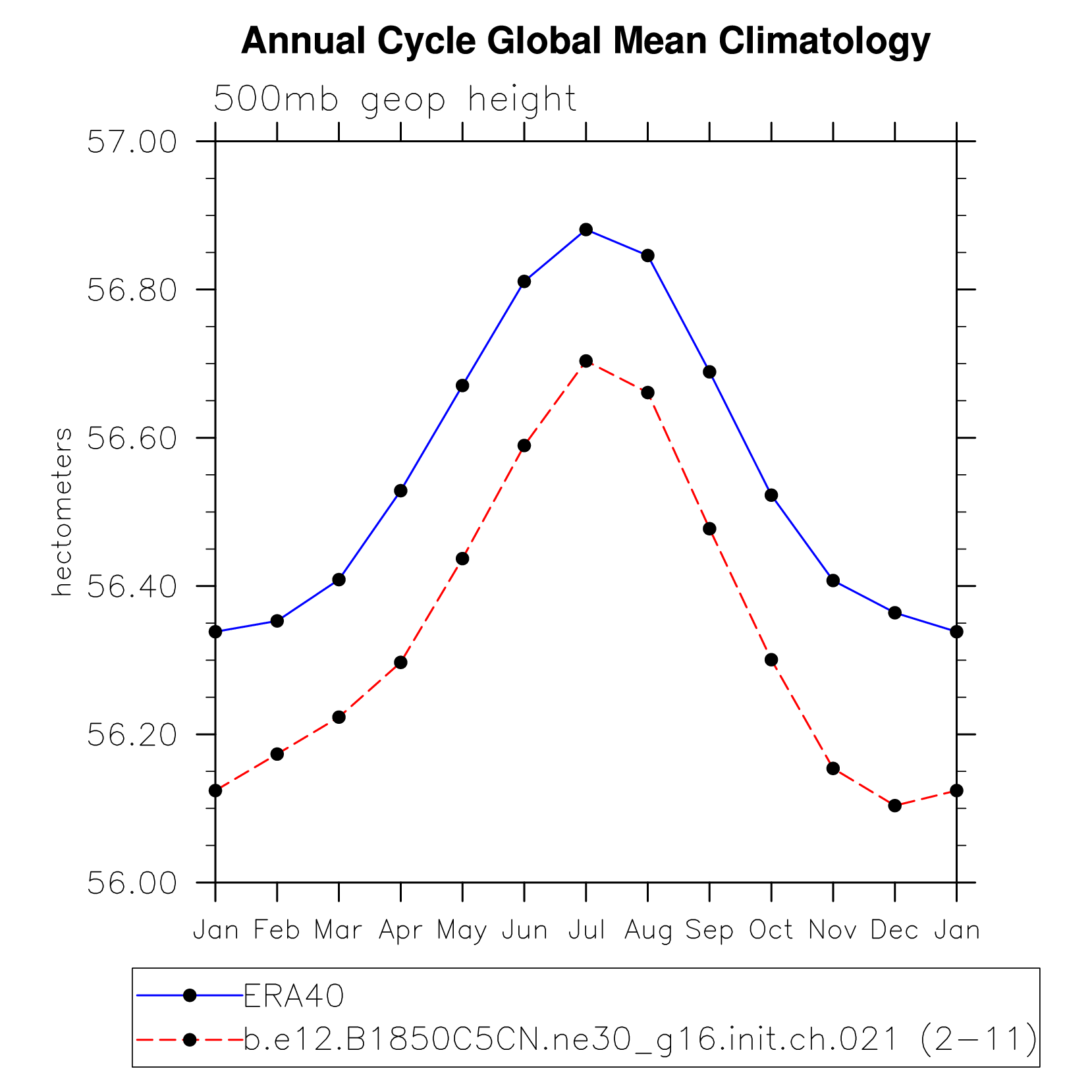 DIAG Set 10 - Annual cycle line plots of global means